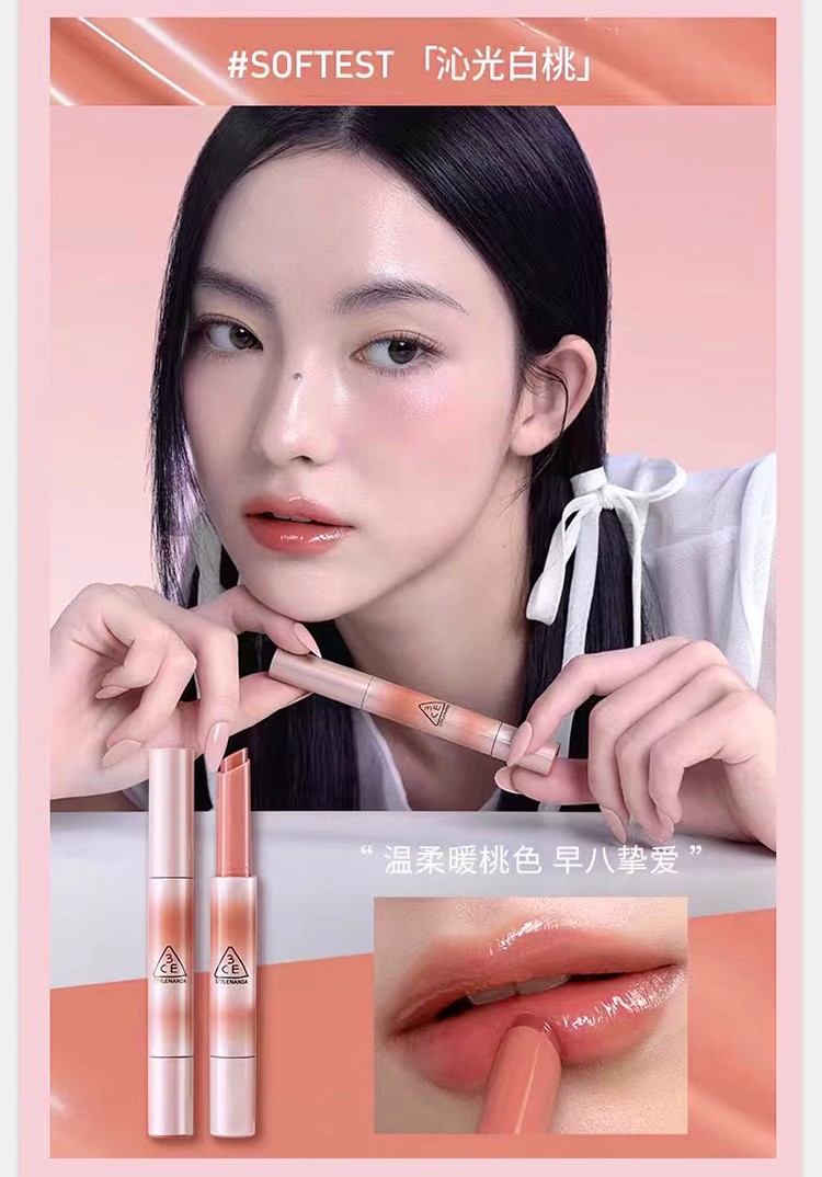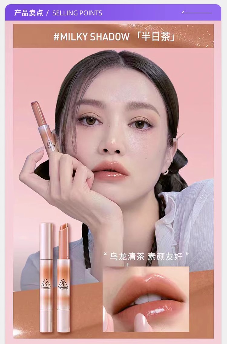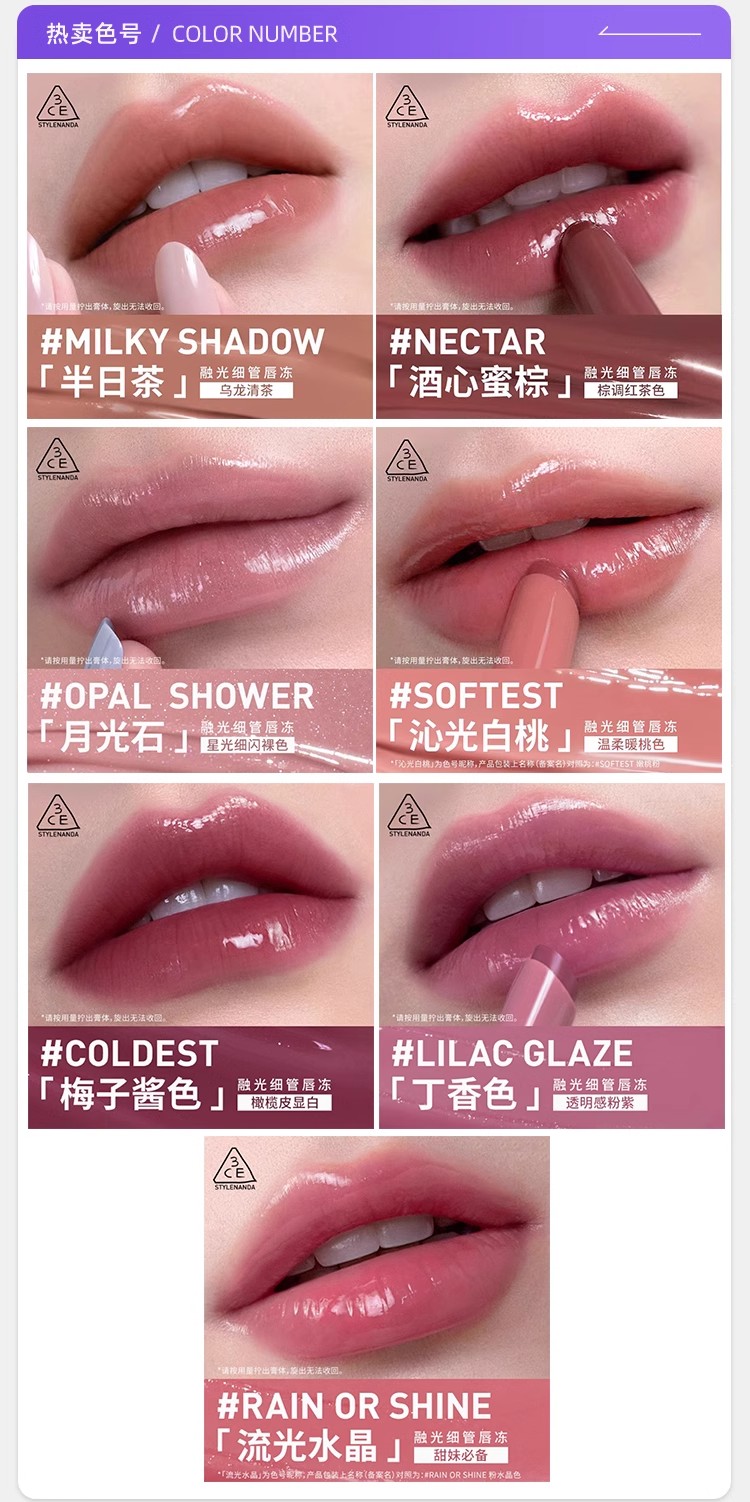 3CE三熹玉水光唇膏梅子酱色COLDEST/月光石OPAL SHOWER/半日茶MILKY SHADOW 1.7g【保税直发】