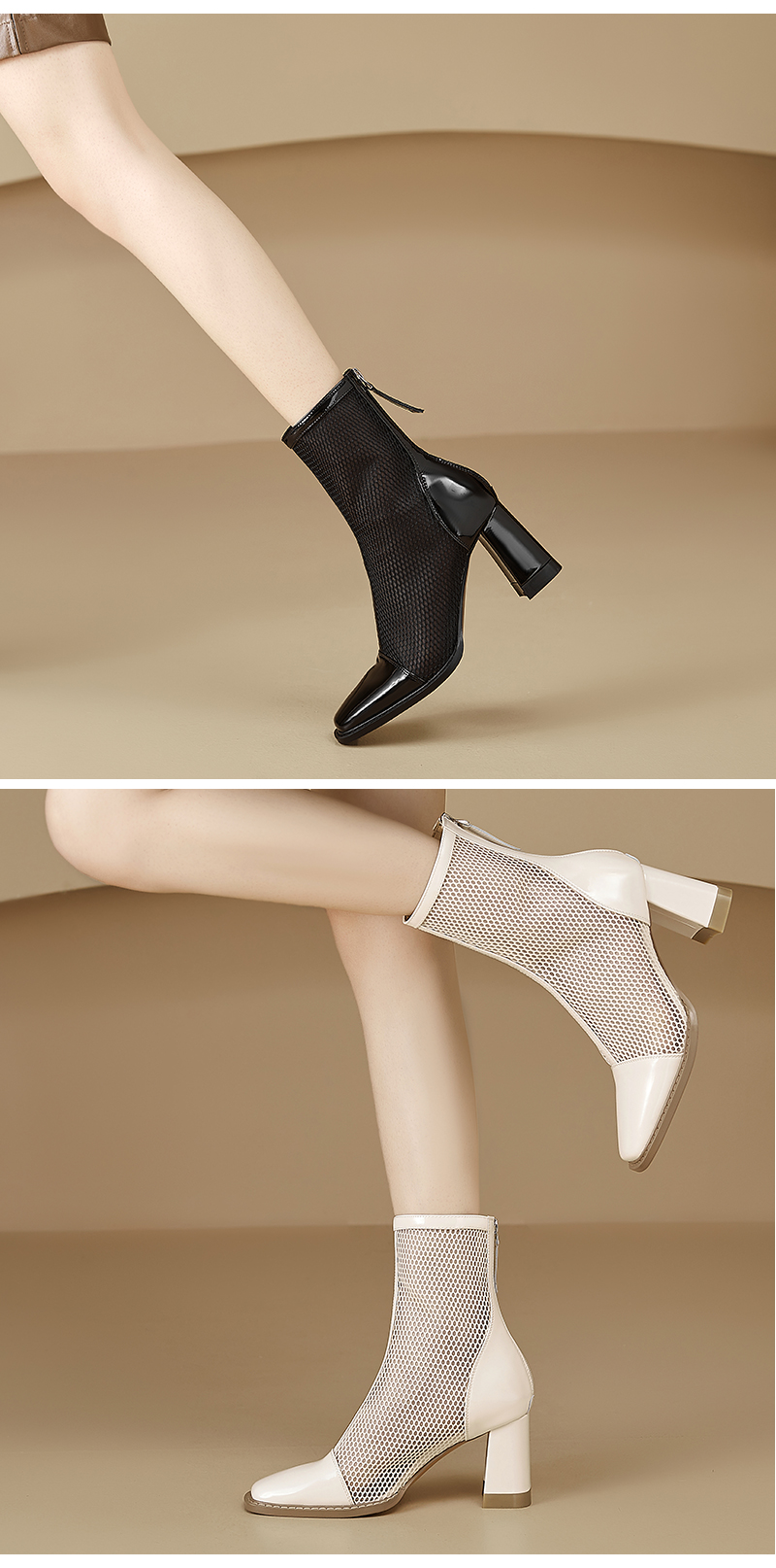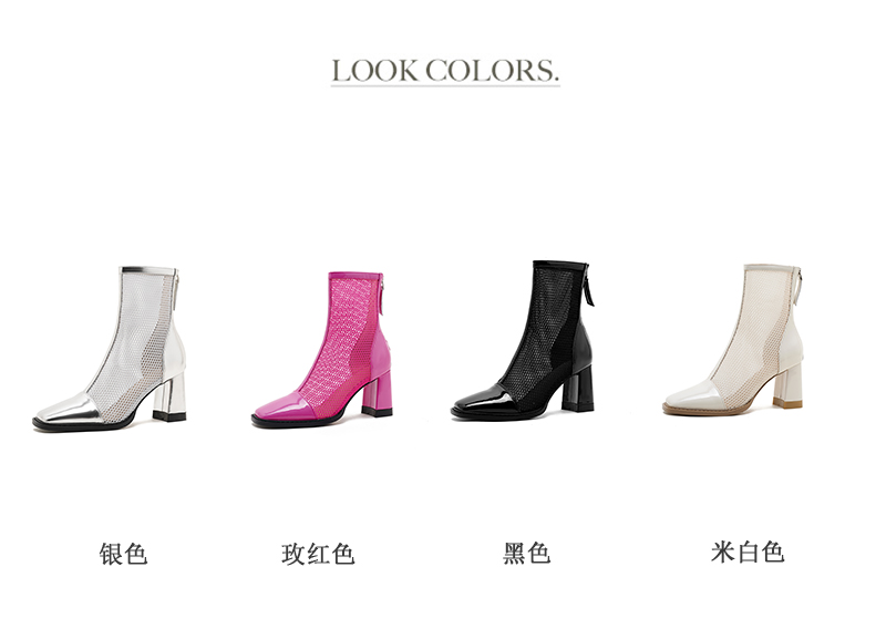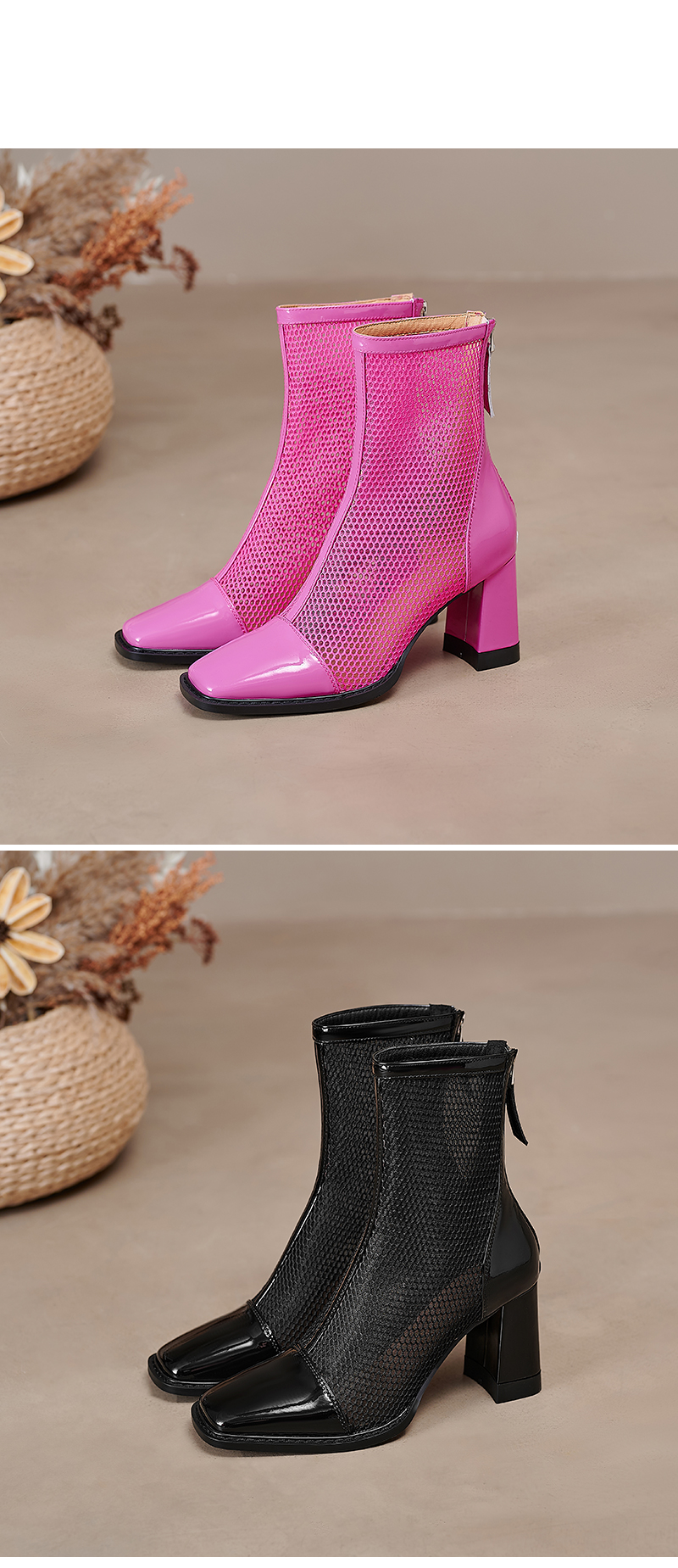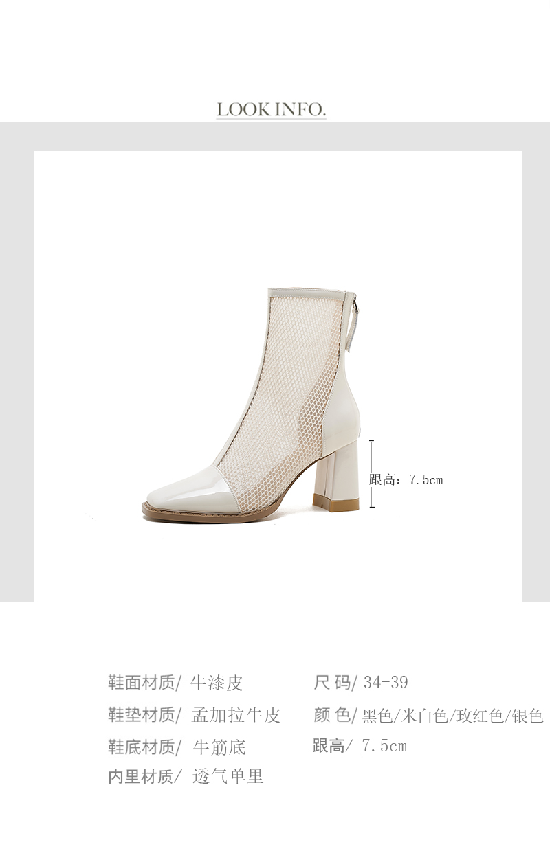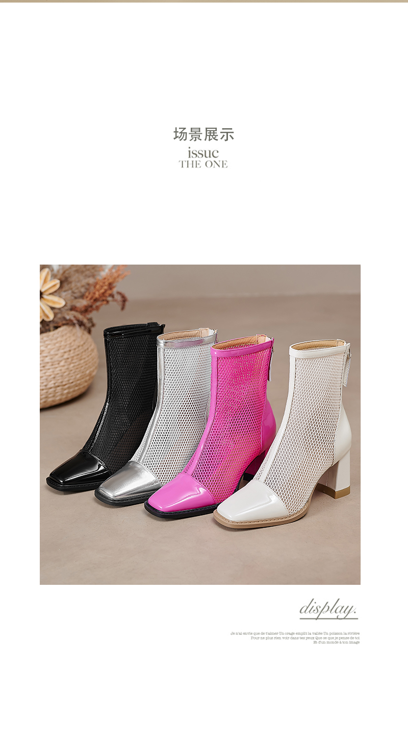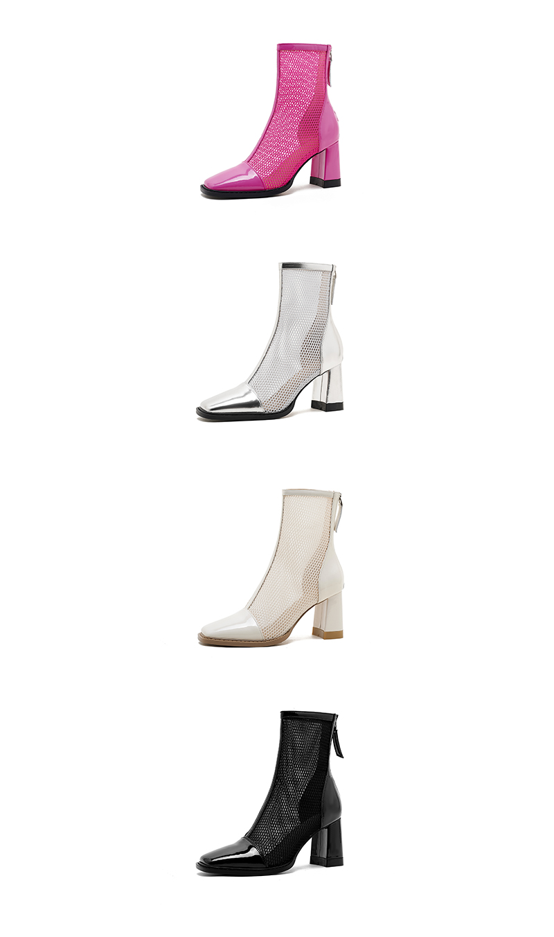 时尚个性,牛漆皮拼接网纱后拉链短靴NWS-A7263