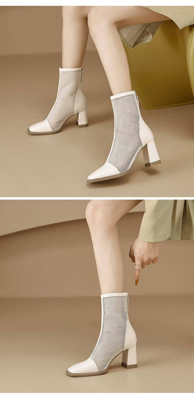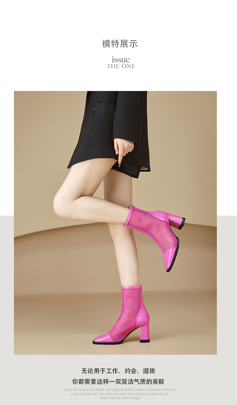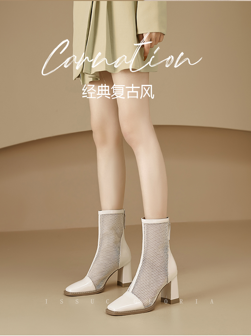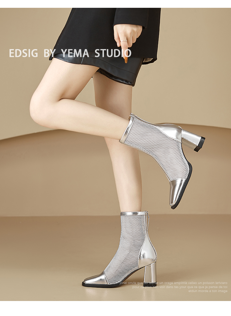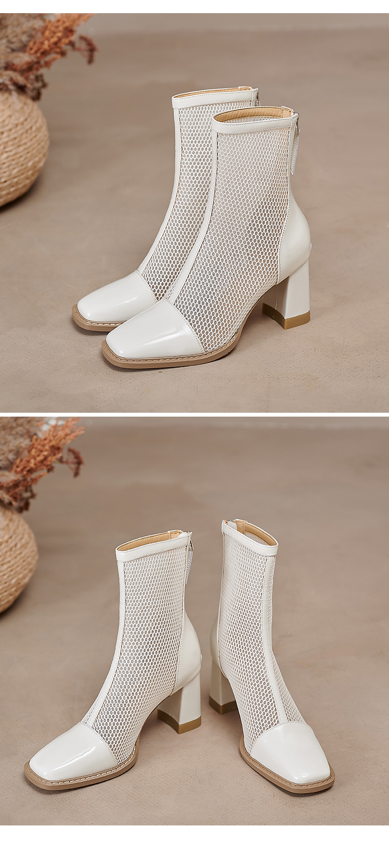 时尚个性,牛漆皮拼接网纱后拉链短靴NWS-A7263