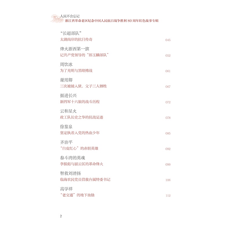 书名:人民不会忘记——浙江省革命老区纪念中国人民抗日战争胜利80周年红色故事专辑