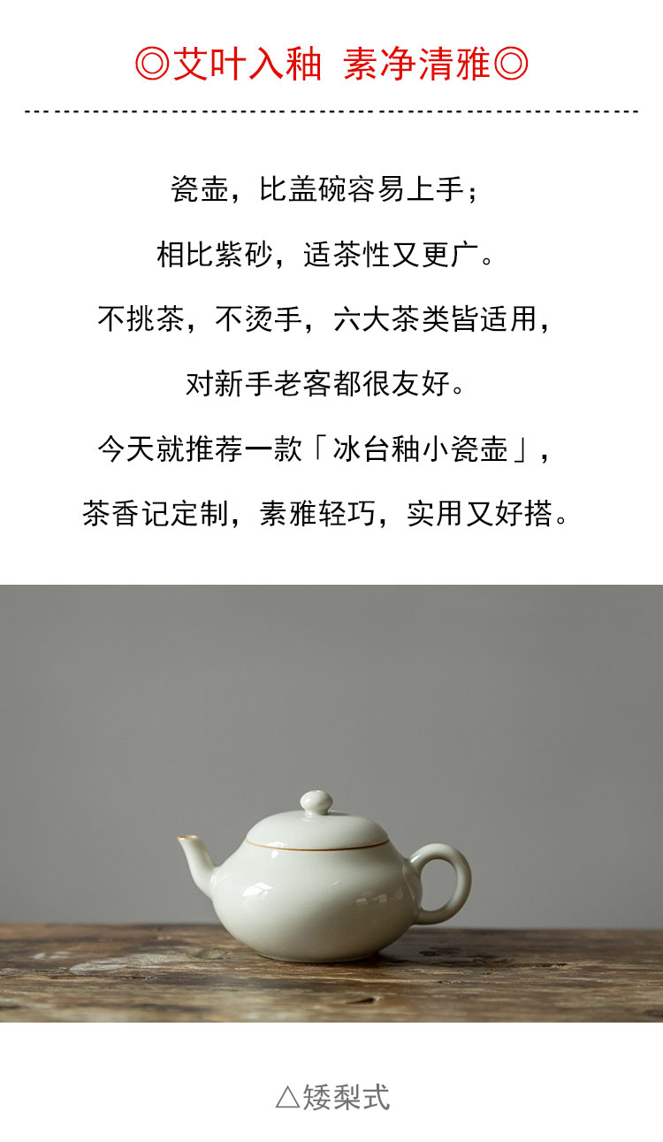 茶香记 冰台釉小瓷壶80ml文旦壶小品壶剔透温雅陶瓷瓷壶茶壶茶具