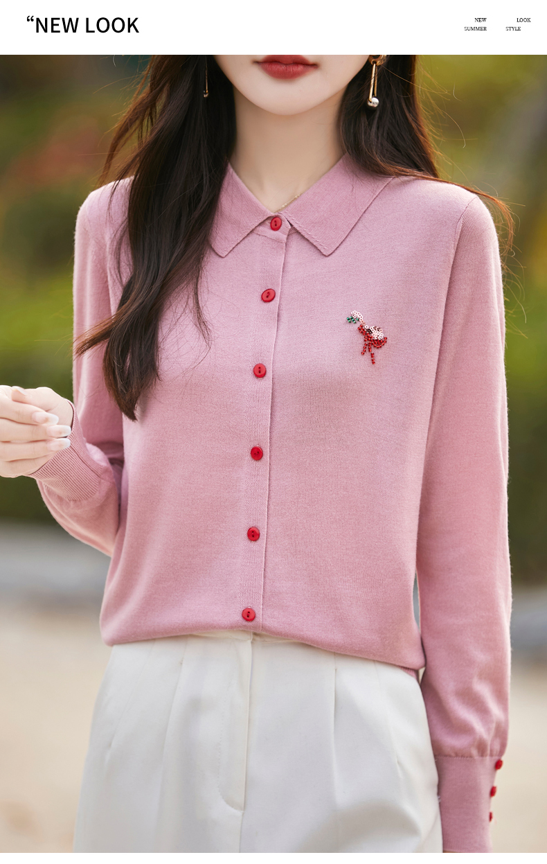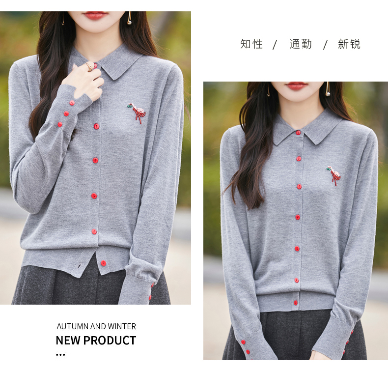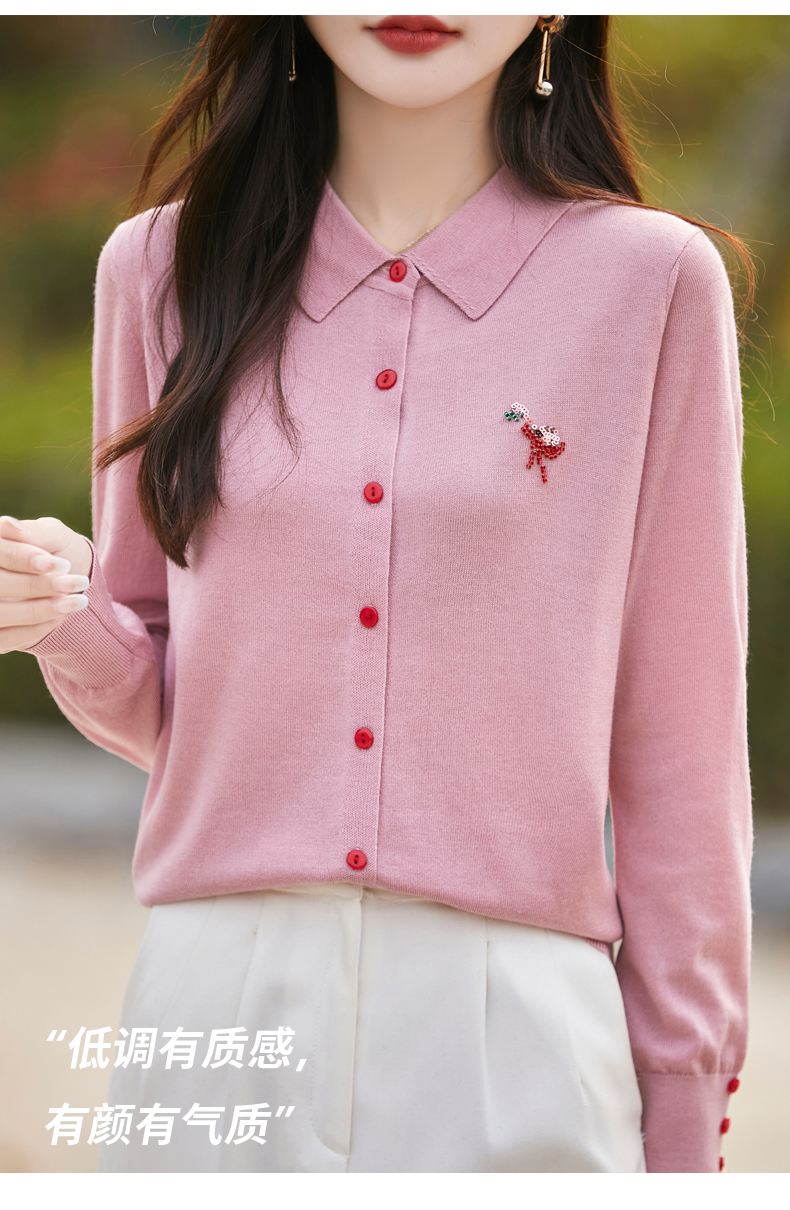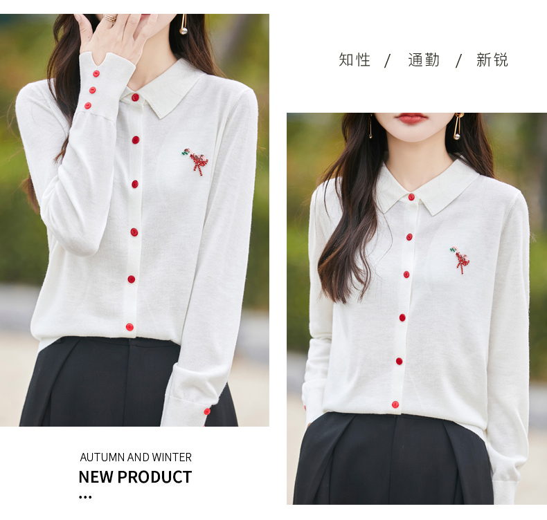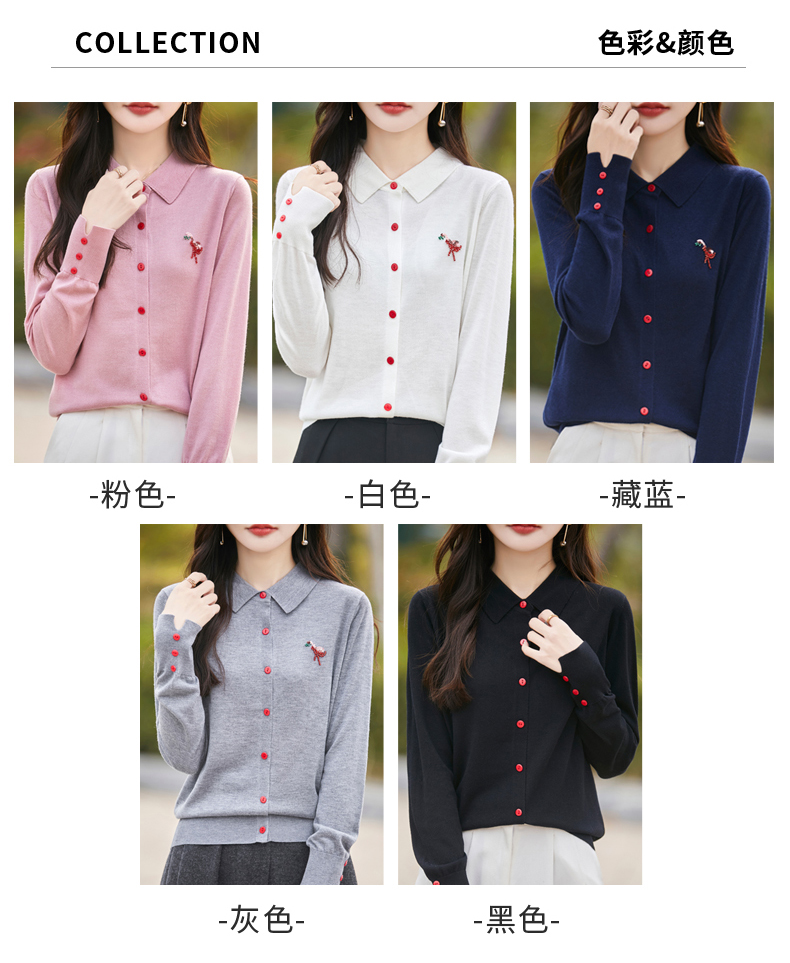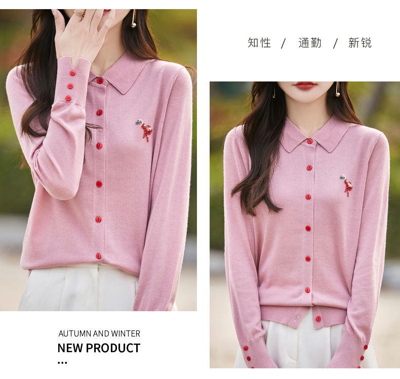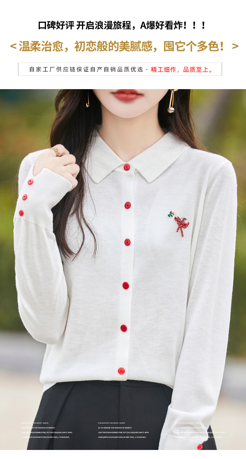纤束马春季精纺羊毛火烈鸟烫钻针织衫 N-502