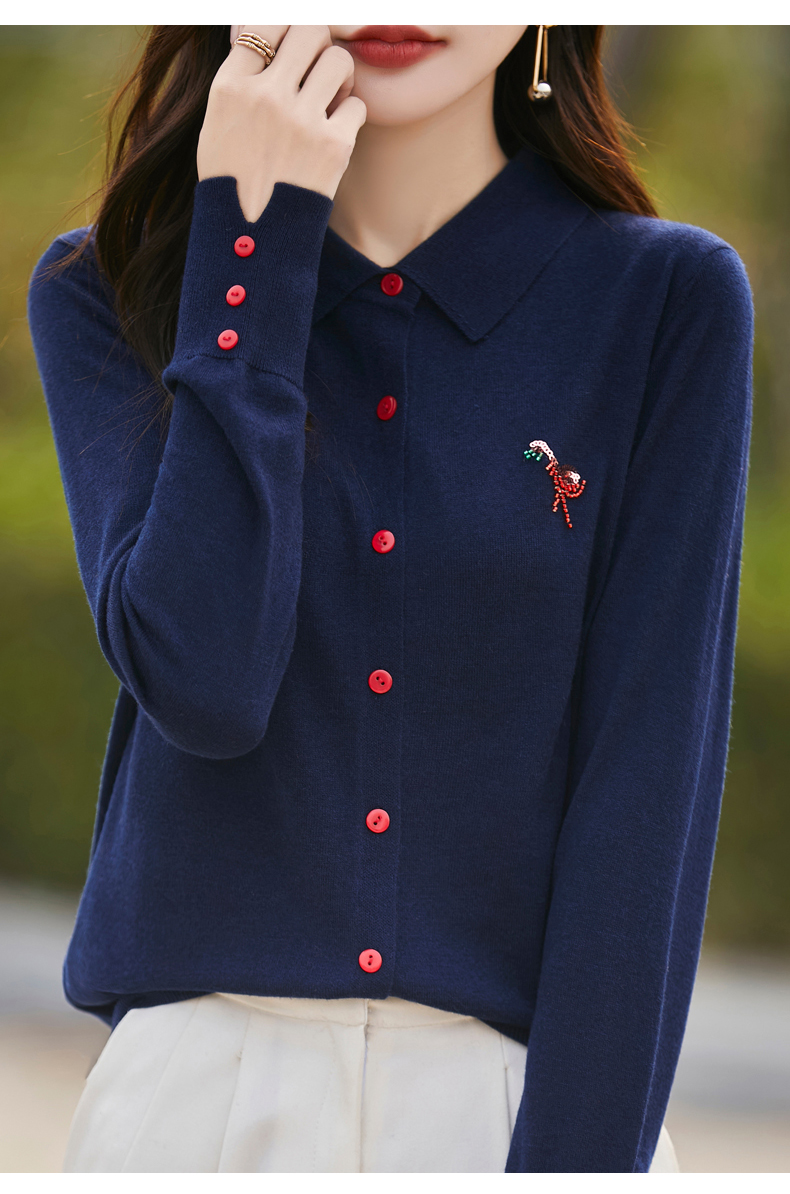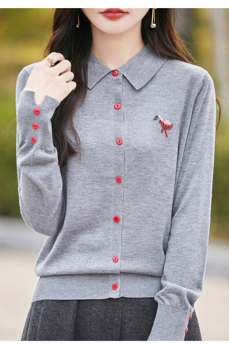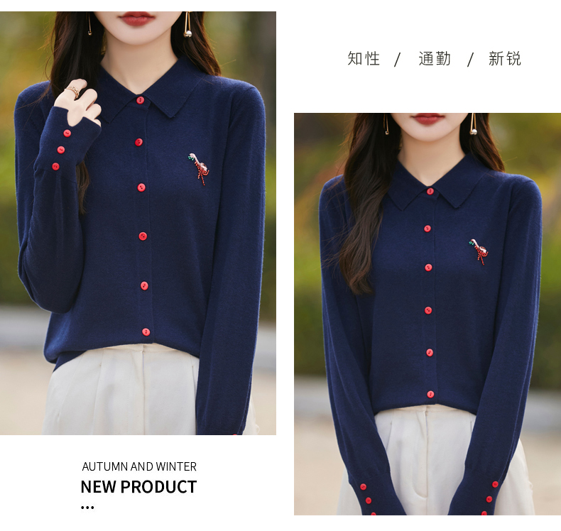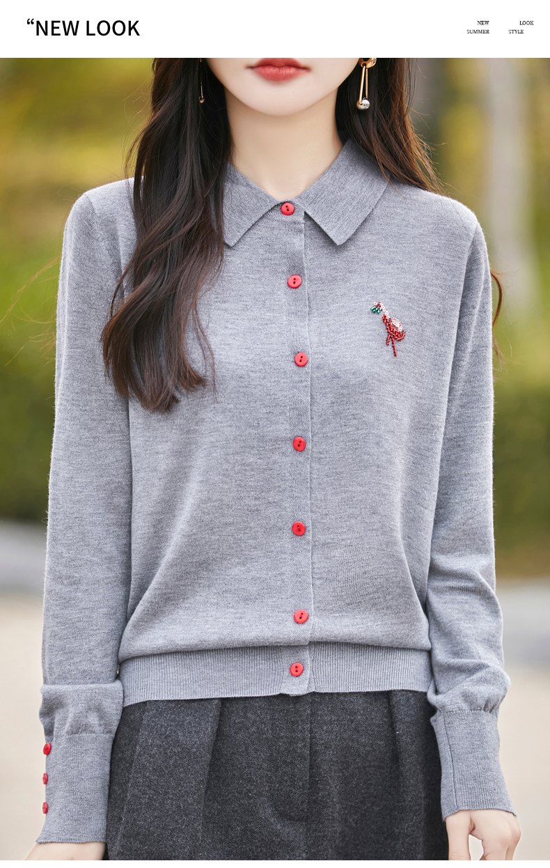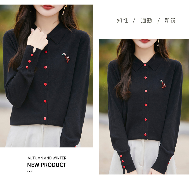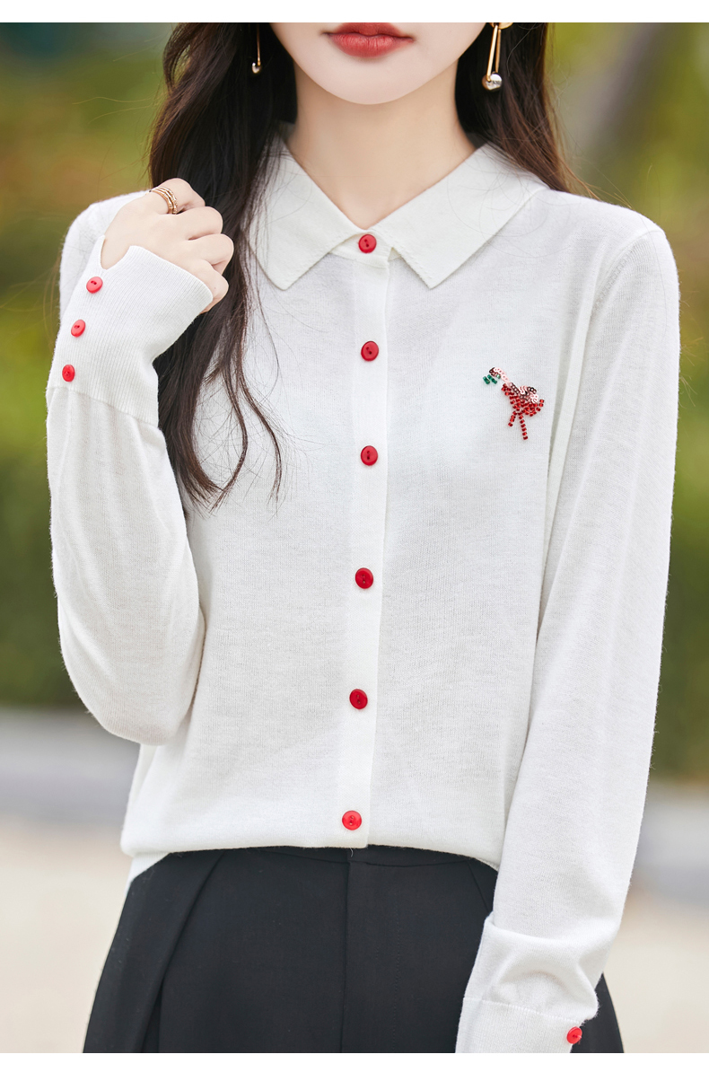 纤束马春季精纺羊毛火烈鸟烫钻针织衫 N-502