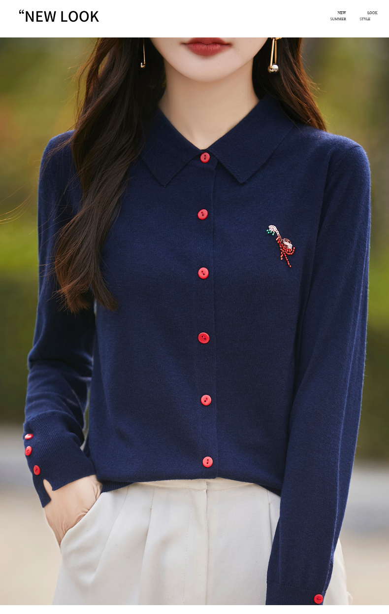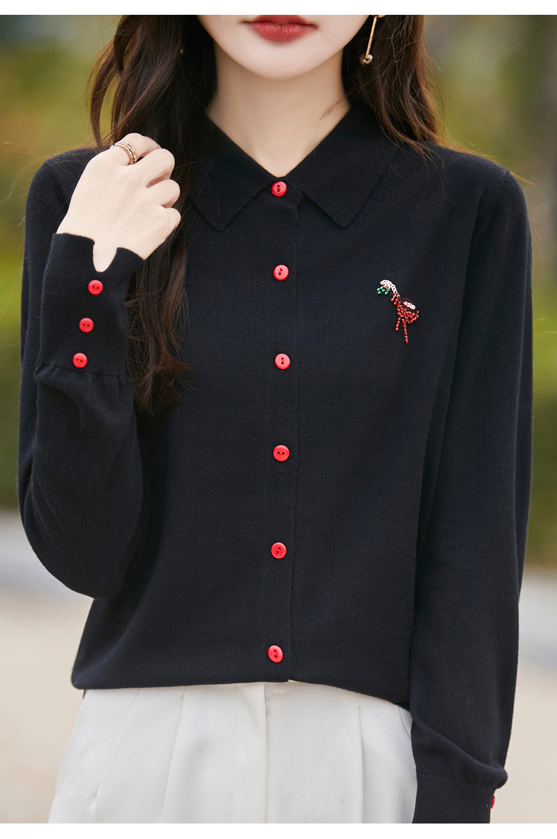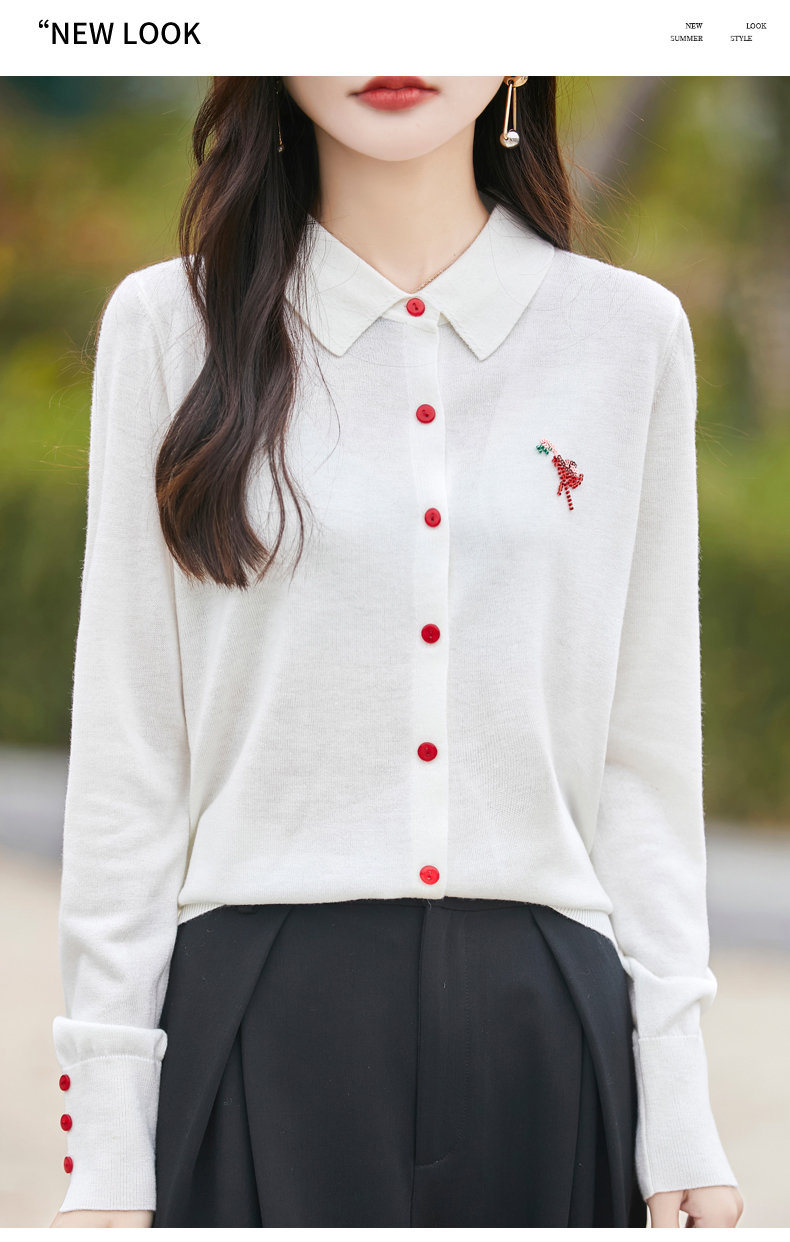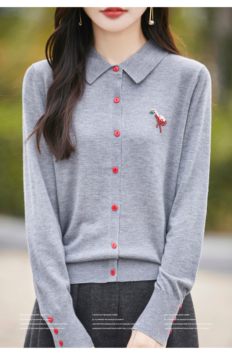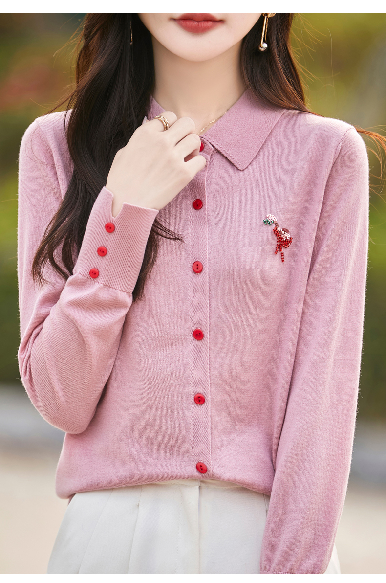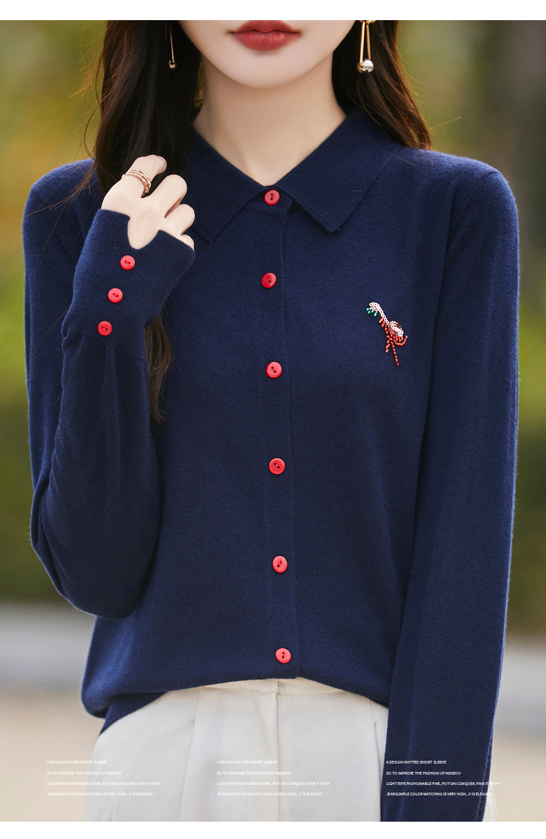纤束马春季精纺羊毛火烈鸟烫钻针织衫 N-502
