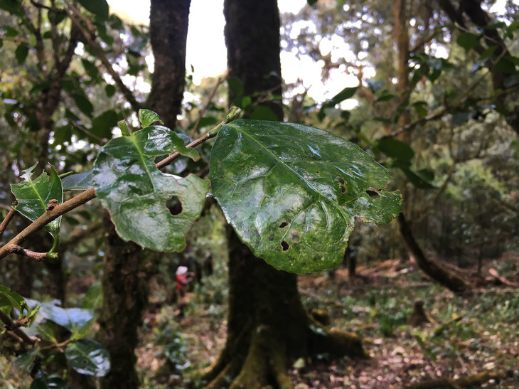永德大雪山的森林野放茶树,平时人烟罕至,茶季附近的茶农会进山找茶树、摘茶,茶树生长环境非常原始状态。