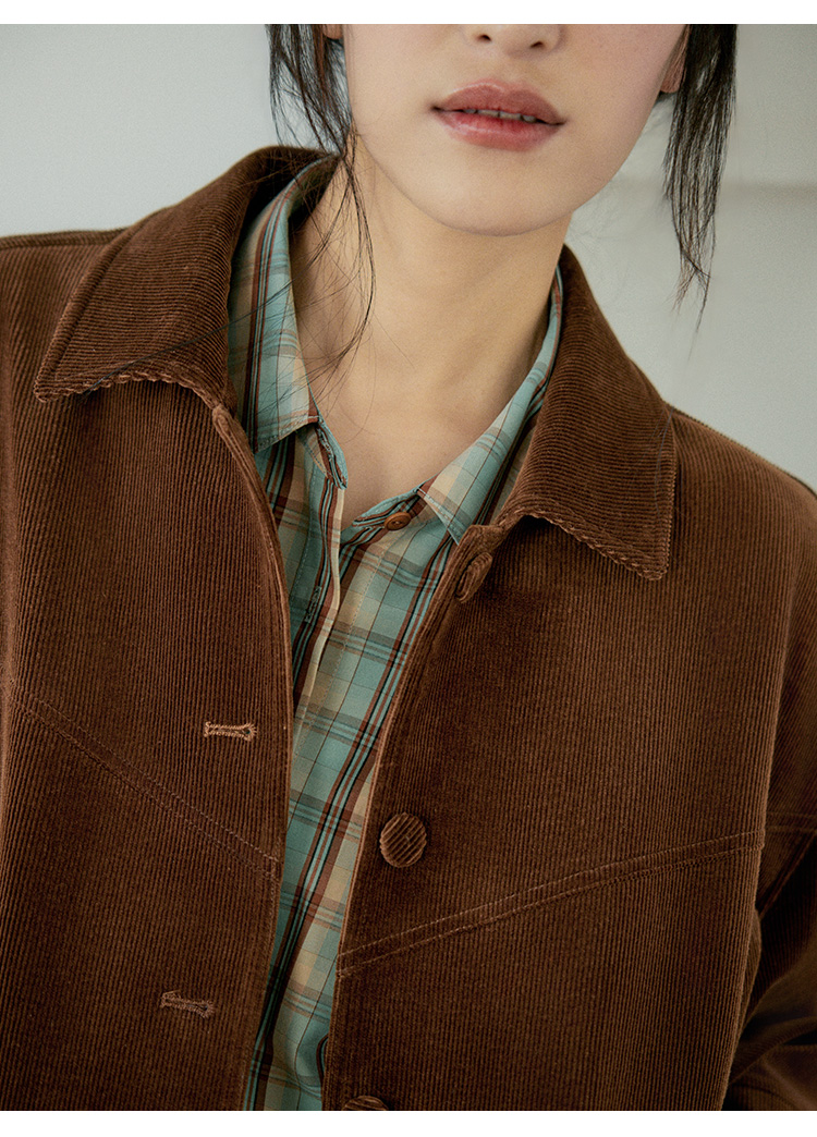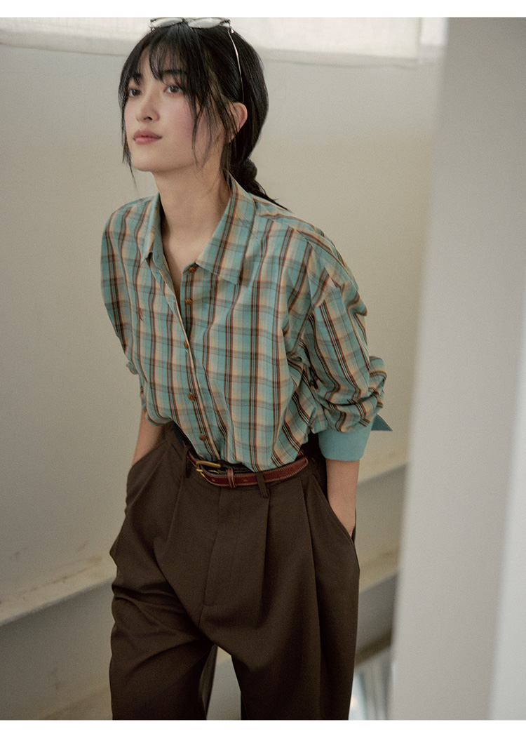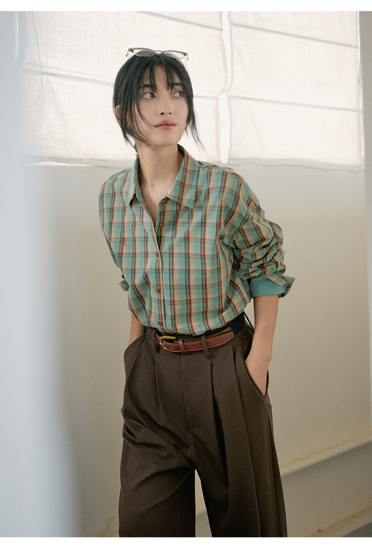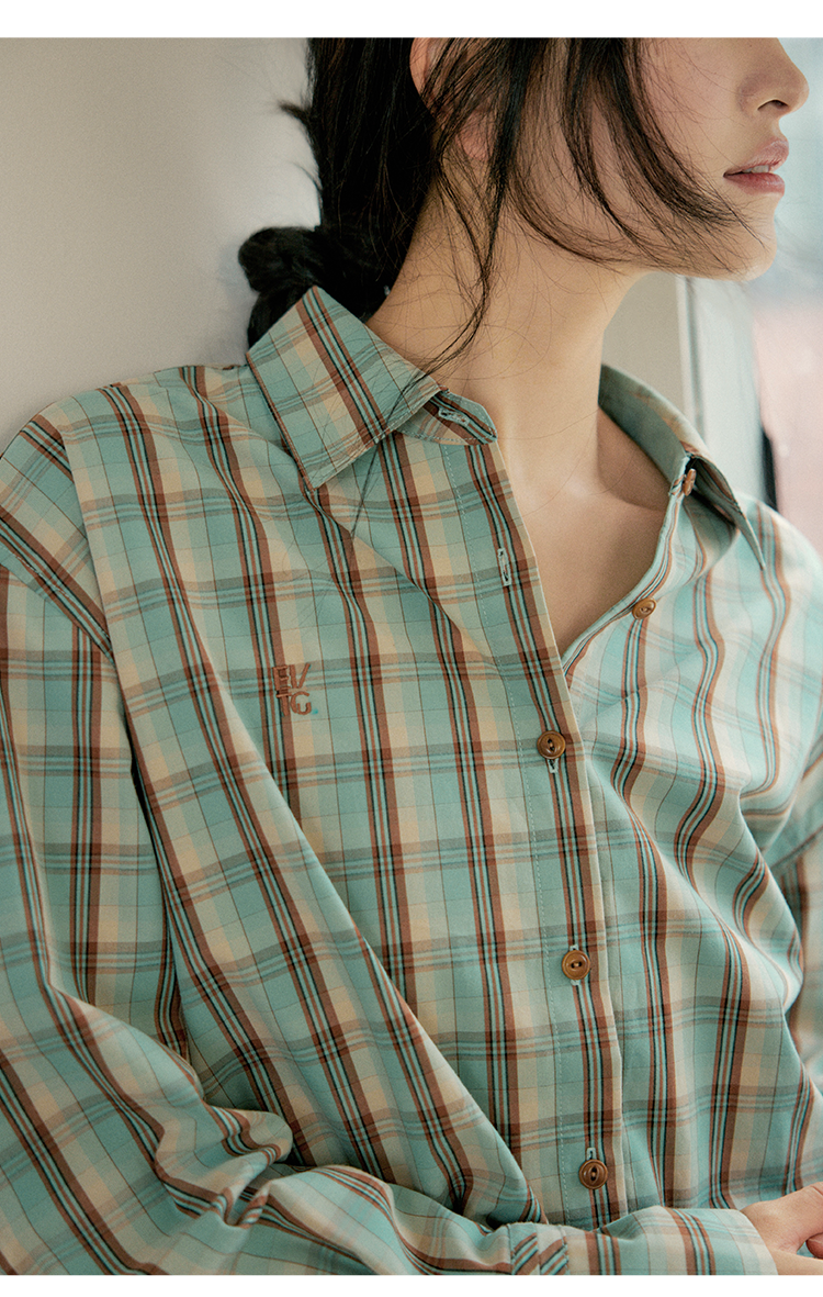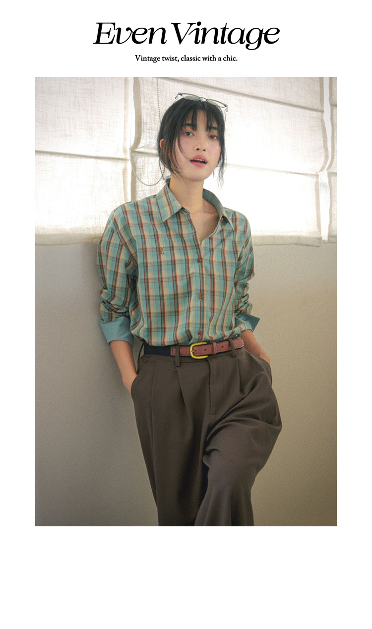 Even Vintage|复古奶咖绿 全棉碳素磨毛经典格纹刺绣logo百搭衬衫