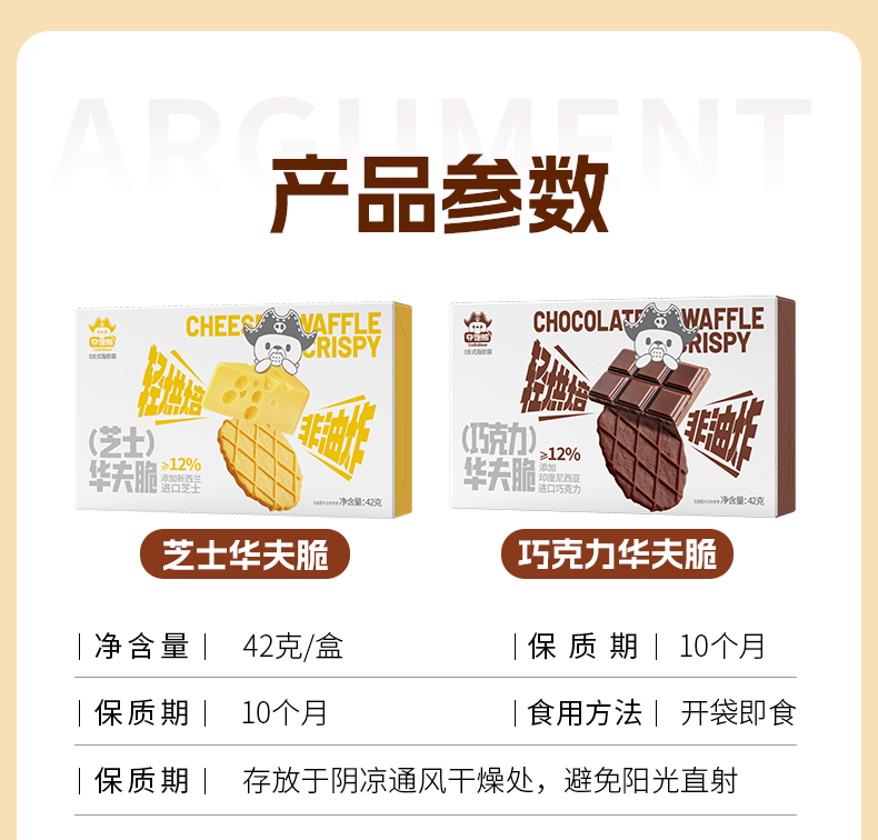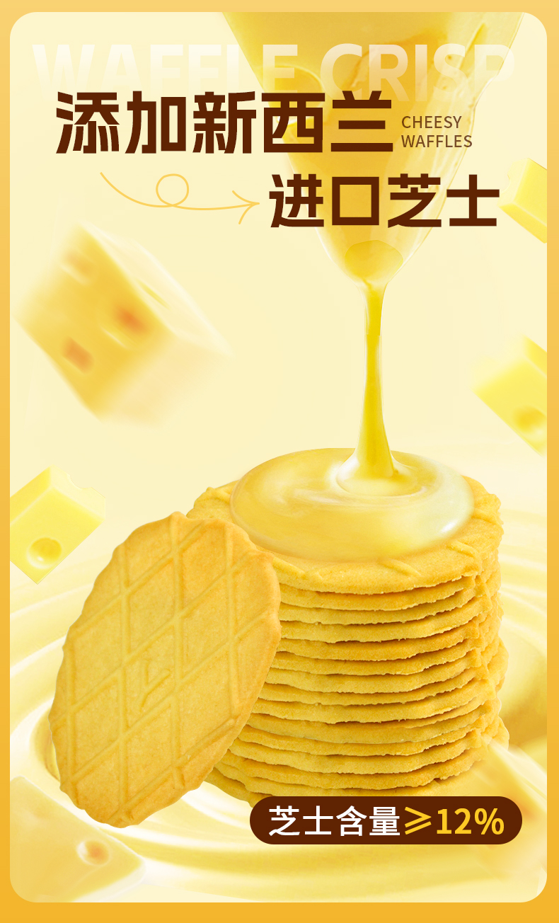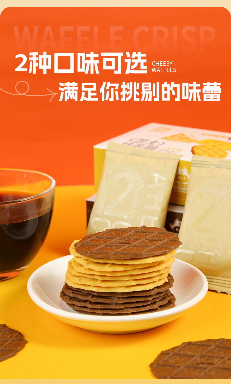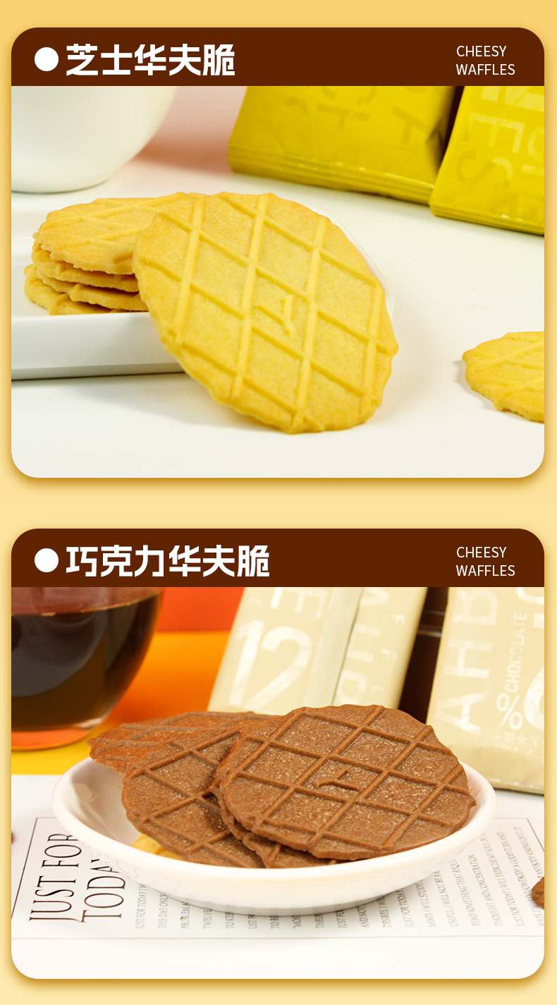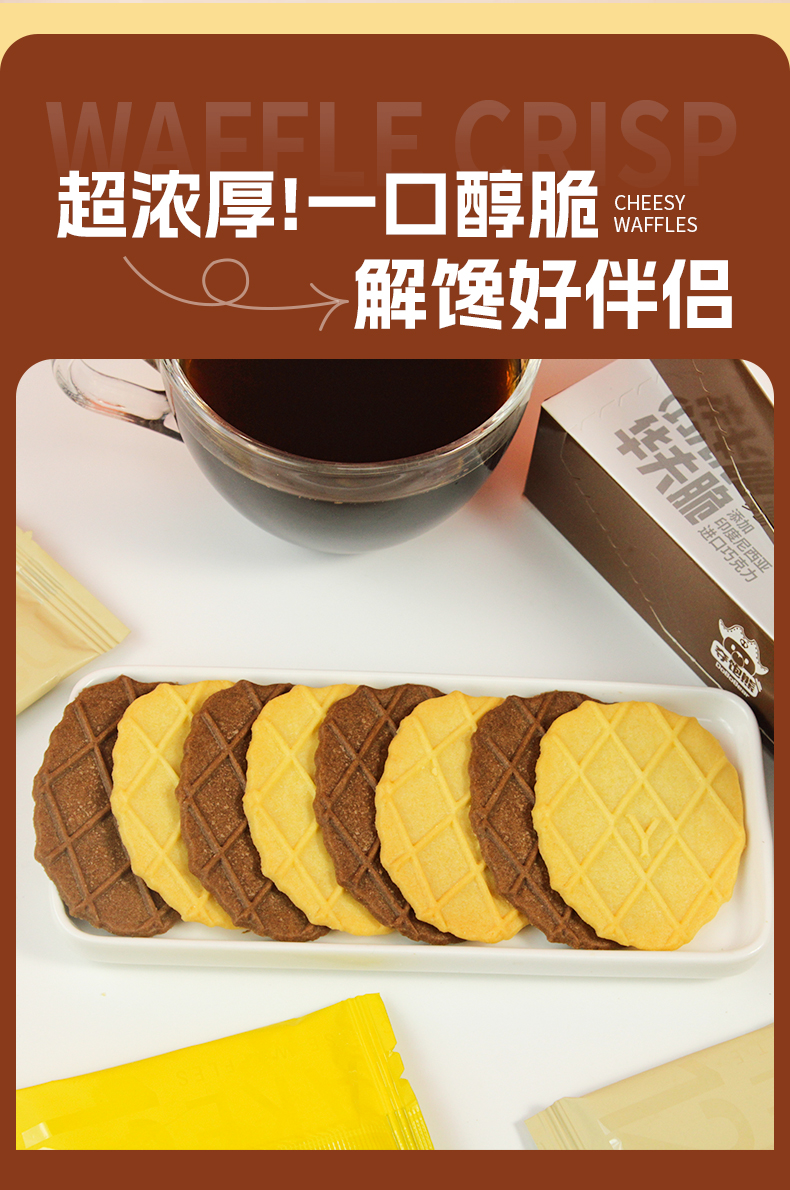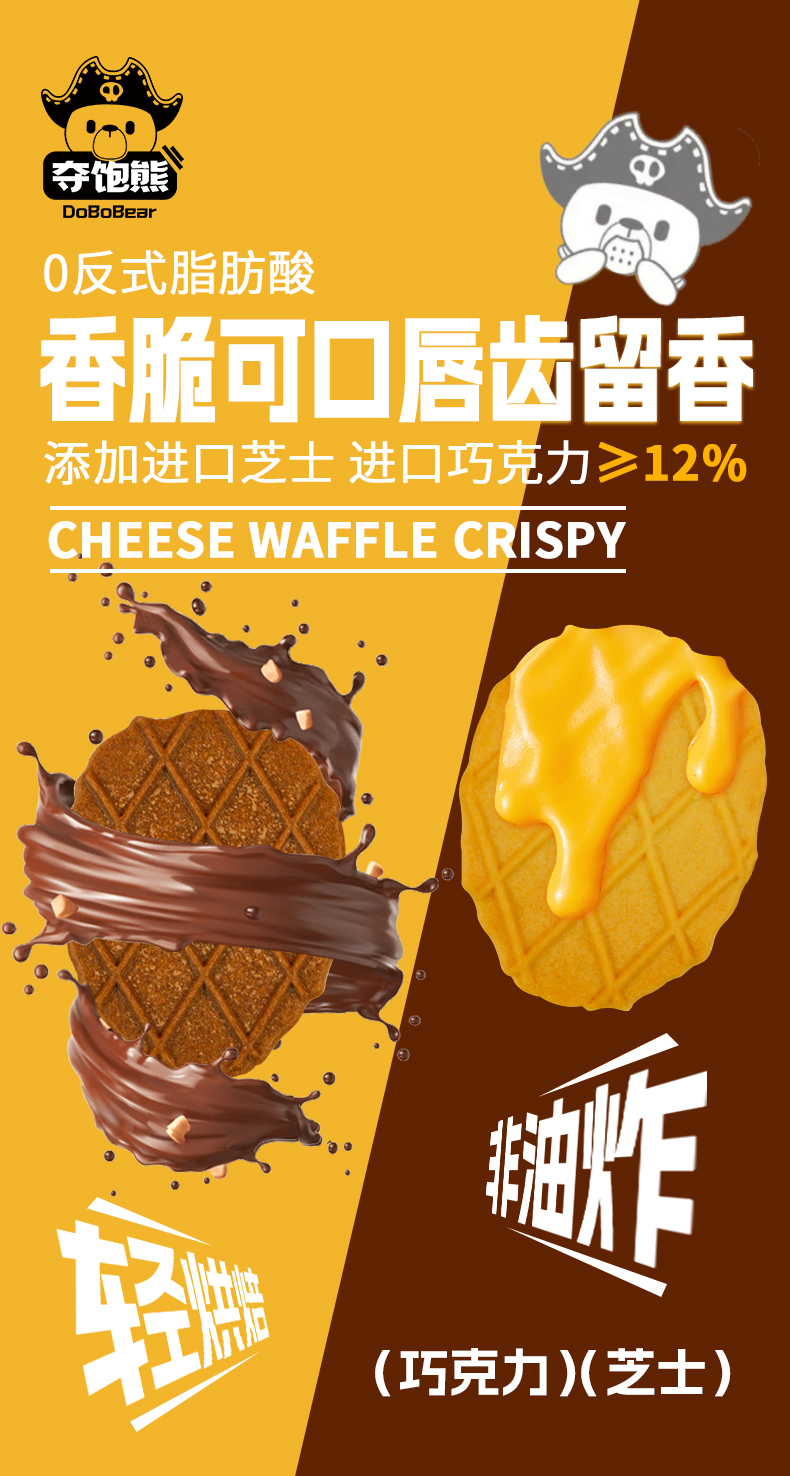 0反式脂肪酸 | 夺饱熊华夫脆/黄油进口芝士华夫薄脆饼干 进口原料≥12% 办公零食营养早餐解馋小吃酥脆 芝士味/巧克力味 42g/盒*4/8