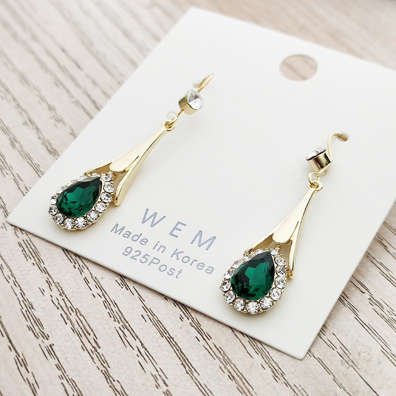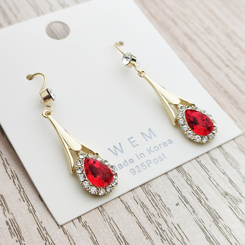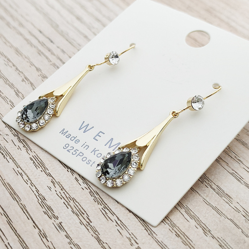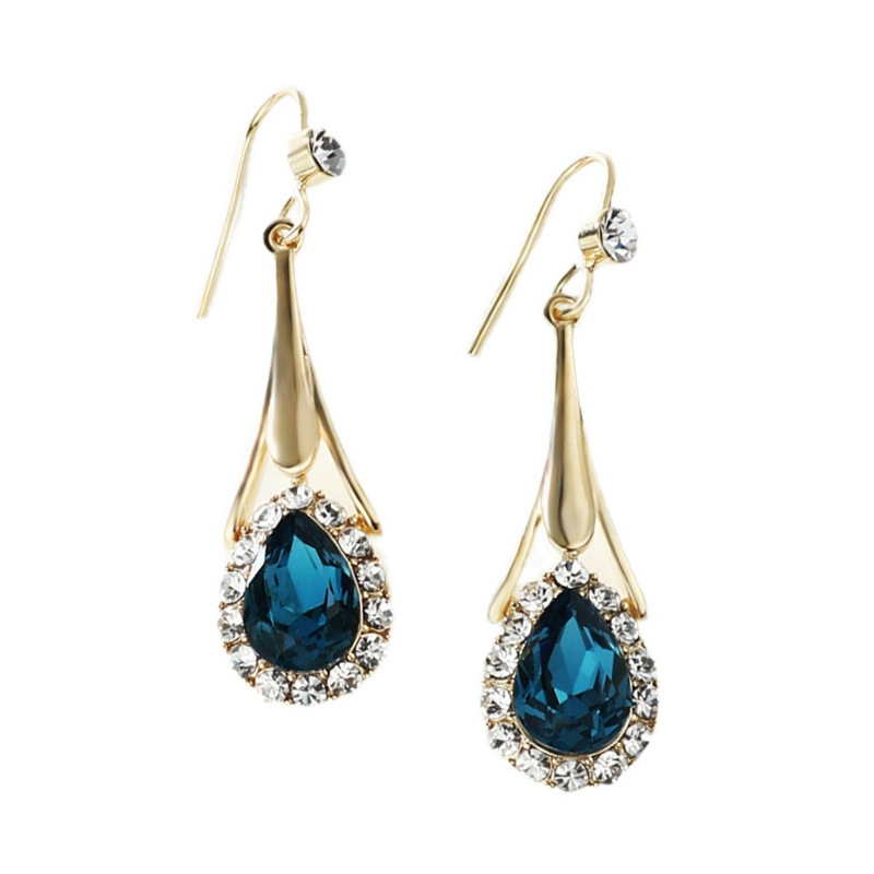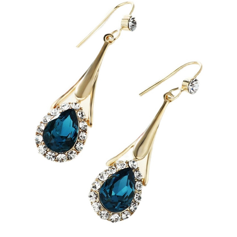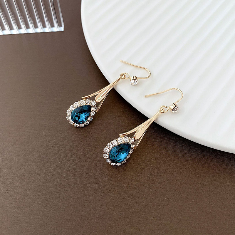 JU-D16韩国气质优雅蓝色水晶耳环女长款流苏耳钩水滴型耳坠简约秋冬耳饰