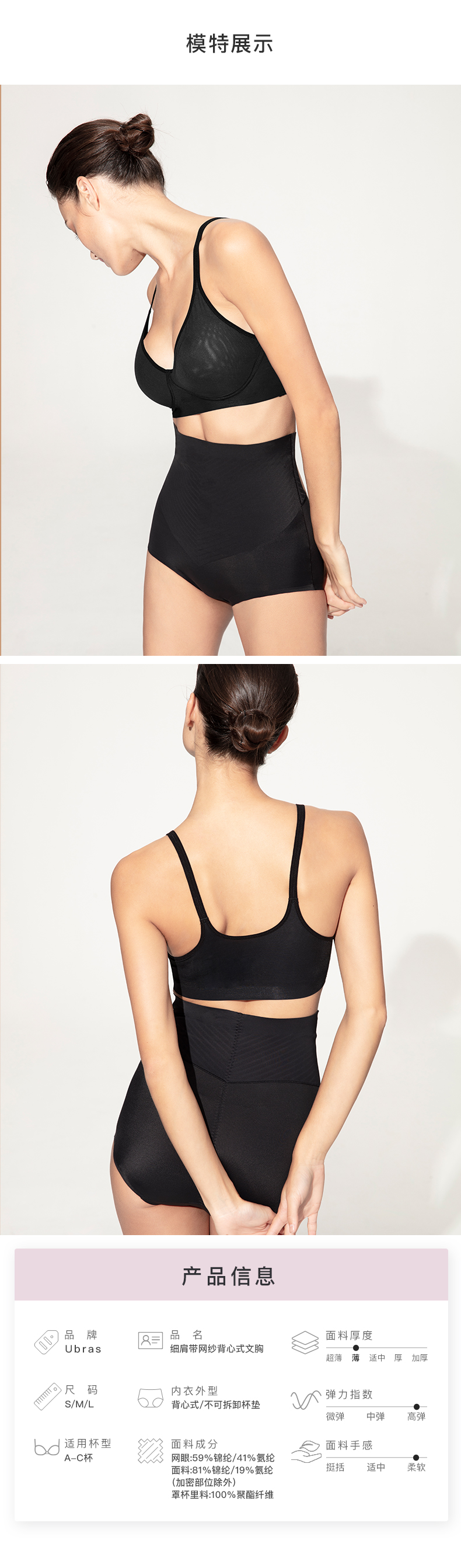 Ubras细肩带网纱背心式文胸内衣女无钢圈无痕舒适透气女士胸罩