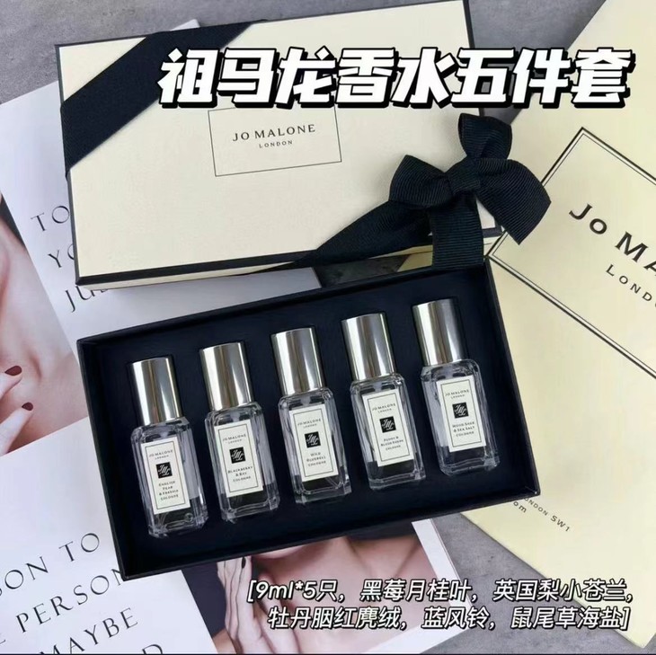 👑JO MALONE祖玛珑香水5件套9ml*5 💥一盒集齐最热门的香味,没有试过他家的香水可以从小样出发! 🍐英国梨:祖玛珑明星热门产品,清甜的果香和花香交织,非常适合日常~ 🫐黑莓:花香果香调,纯粹而俏皮的迷人果香,伴有雪松木的木香! 🍉蓝风铃:绿叶花香调,比较清新西瓜味,闻起来就是超级清爽~ 🌼牡丹:温柔又不失性感的暖香,清甜花香调~ 🌊海盐:馥郁奇香,比较中性的香调,自然不突兀,干净清冽 【套装包括】:英国梨小苍兰+黑莓+蓝风铃+牡丹胭红+鼠尾草海盐