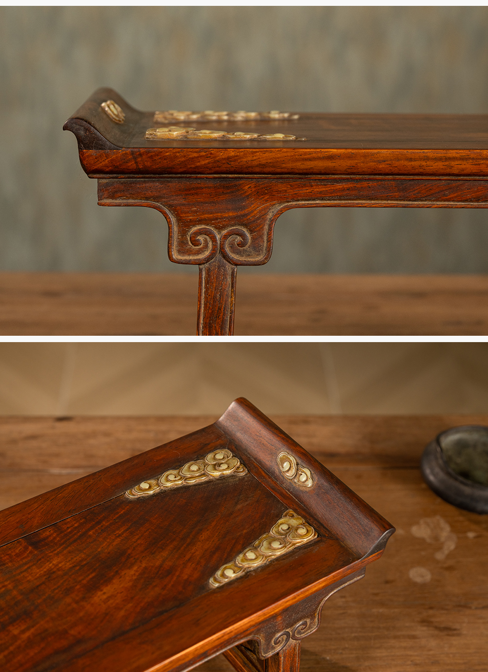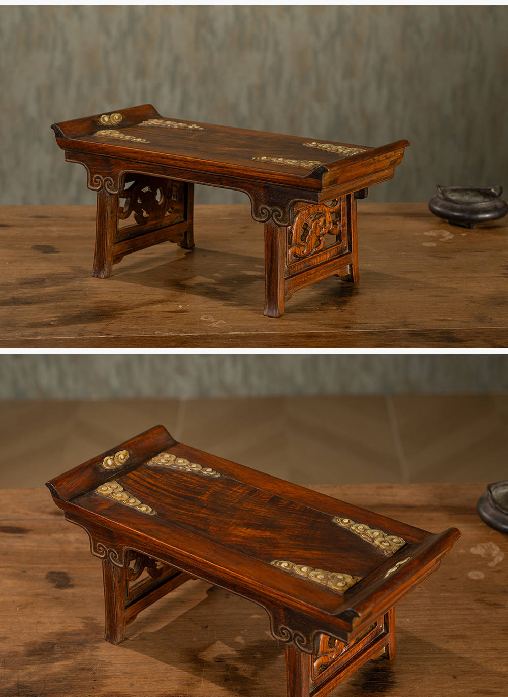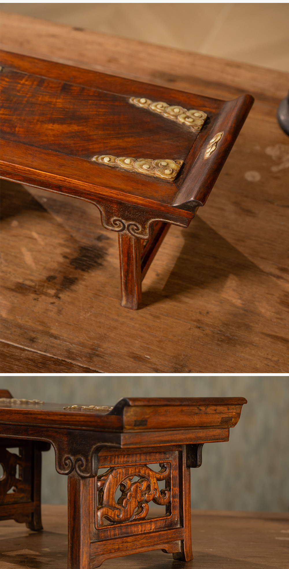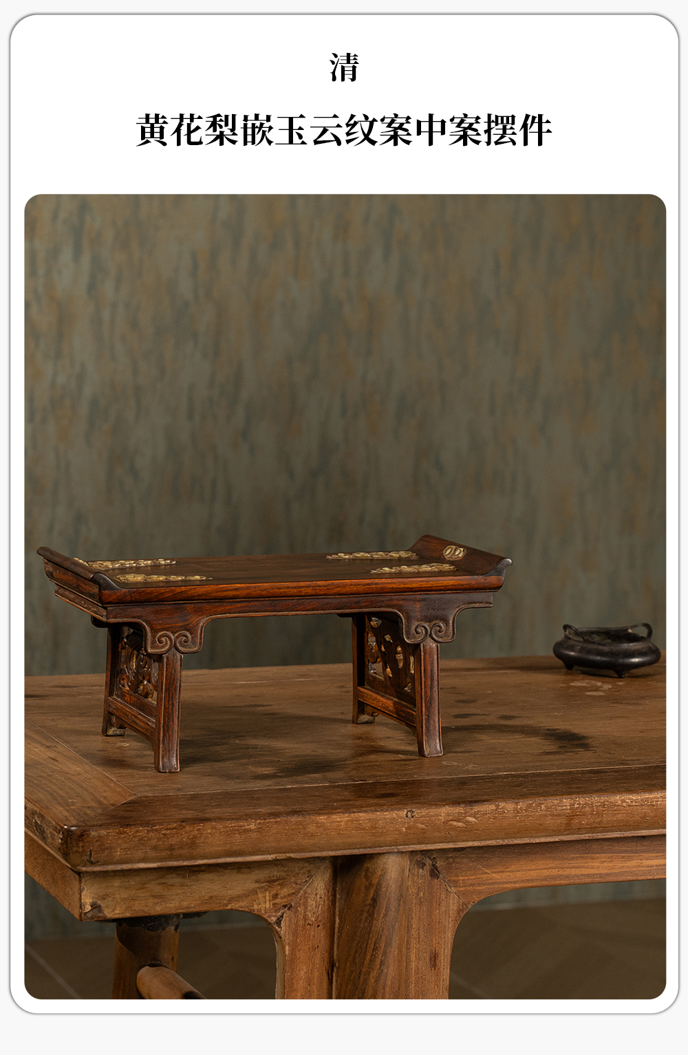 清 黄花梨嵌玉云纹案中案摆件