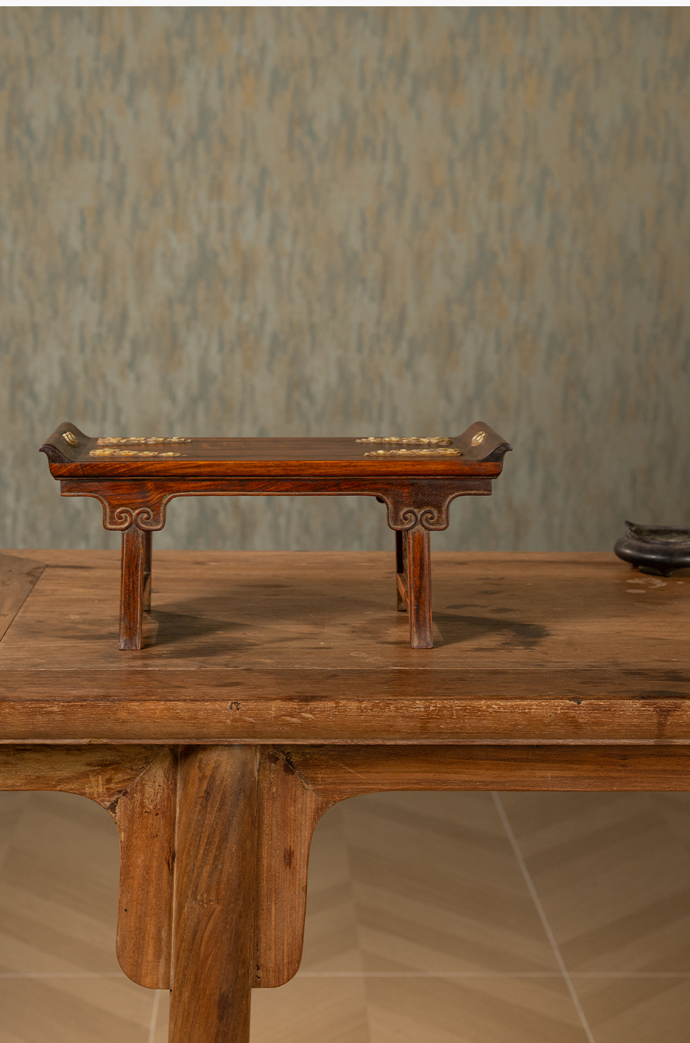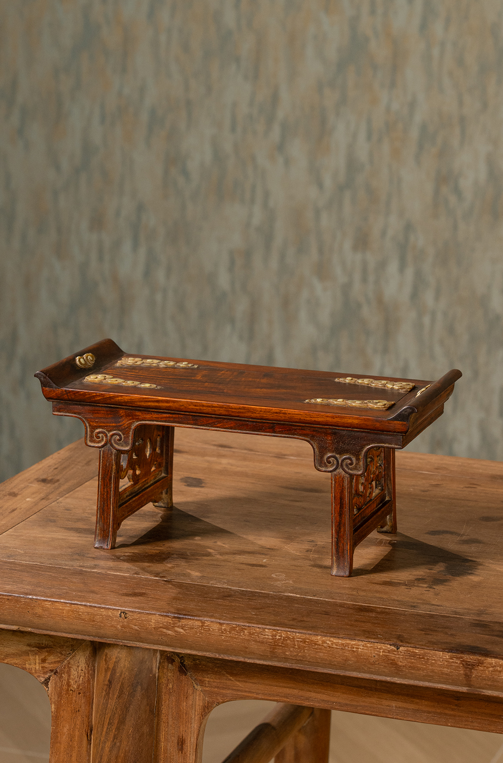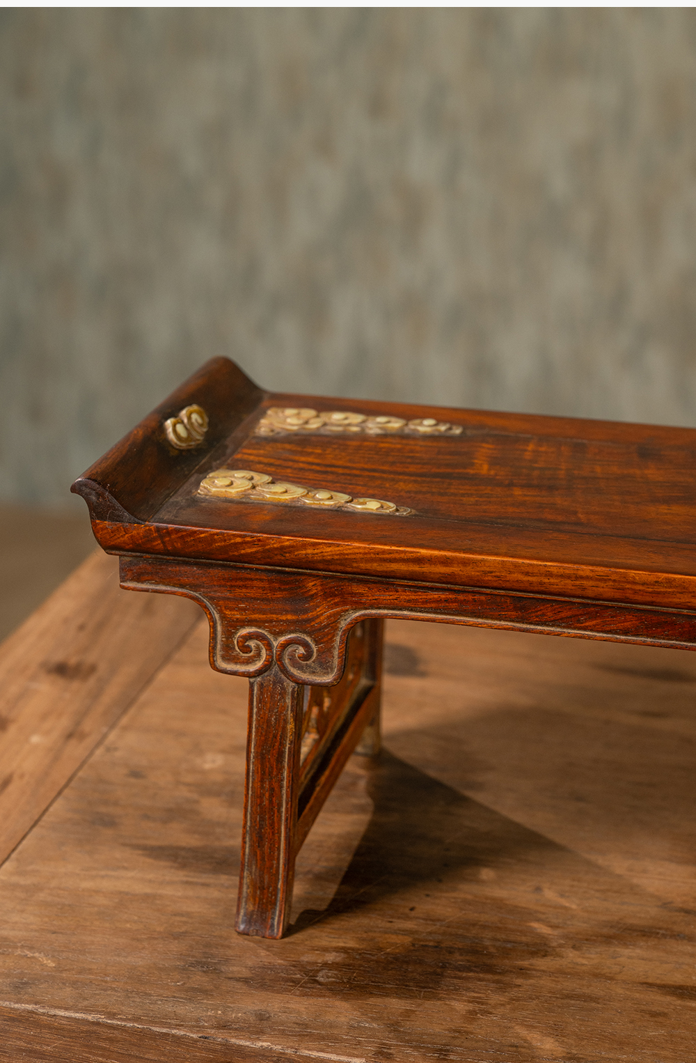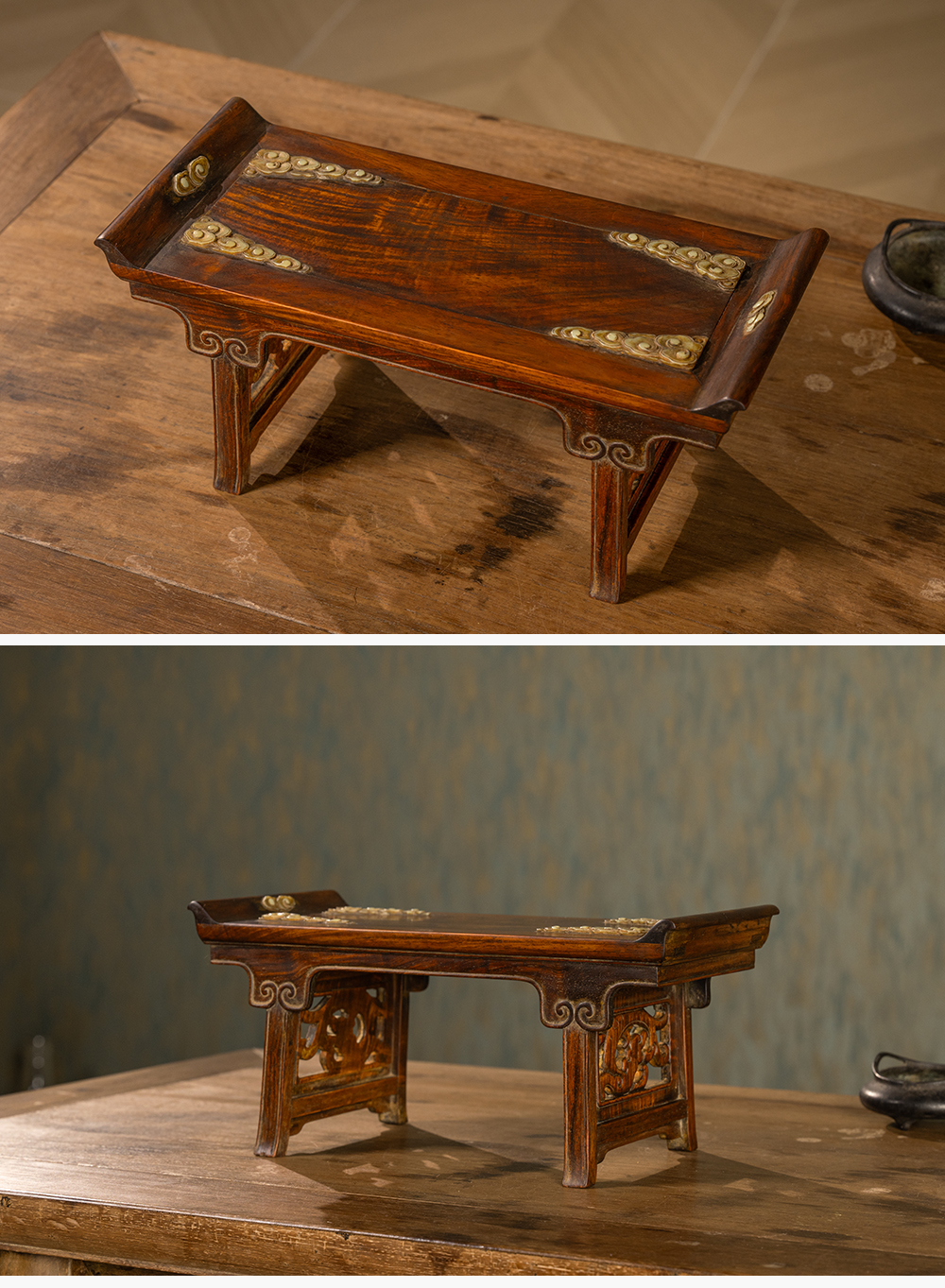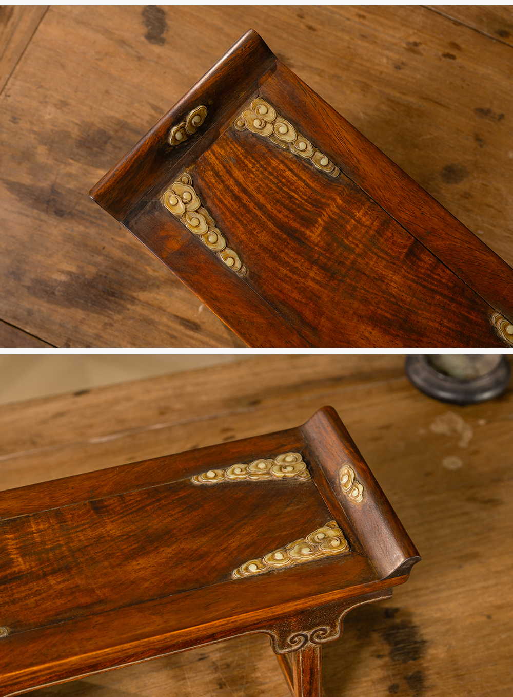 清 黄花梨嵌玉云纹案中案摆件