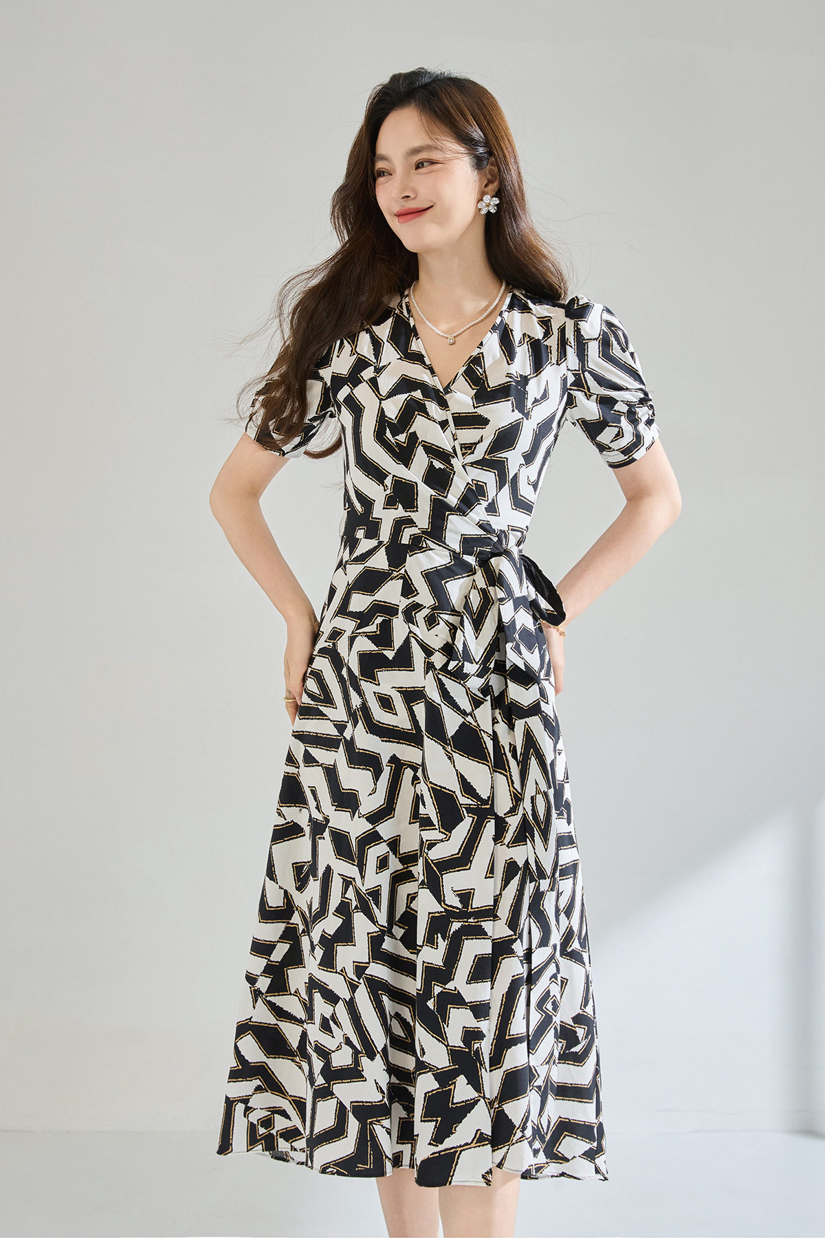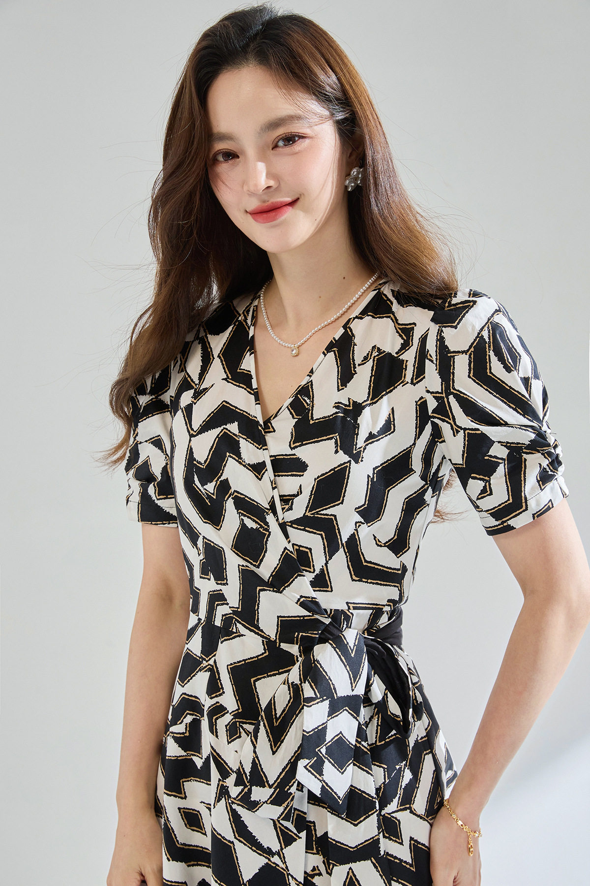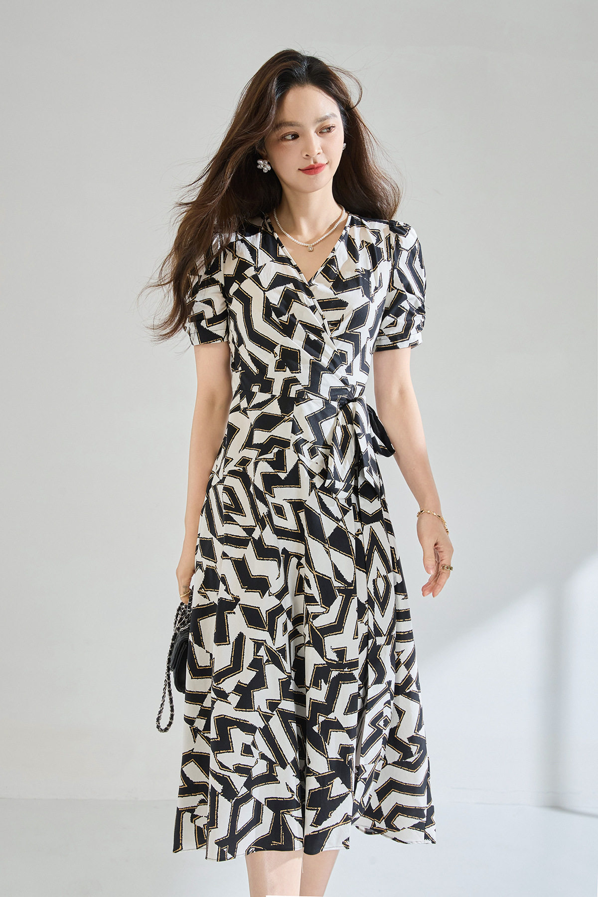 「高货sh」全新升级【铂金会员321/天猫429/差价108】(12652)洛诗琳法式优雅V领连衣裙2026夏季泡泡袖纯棉收腰裹身裙
