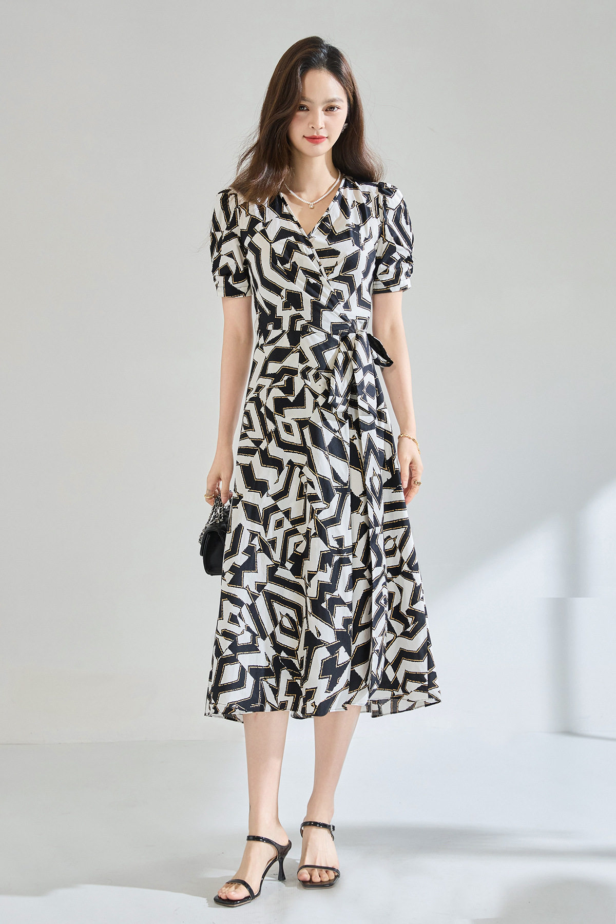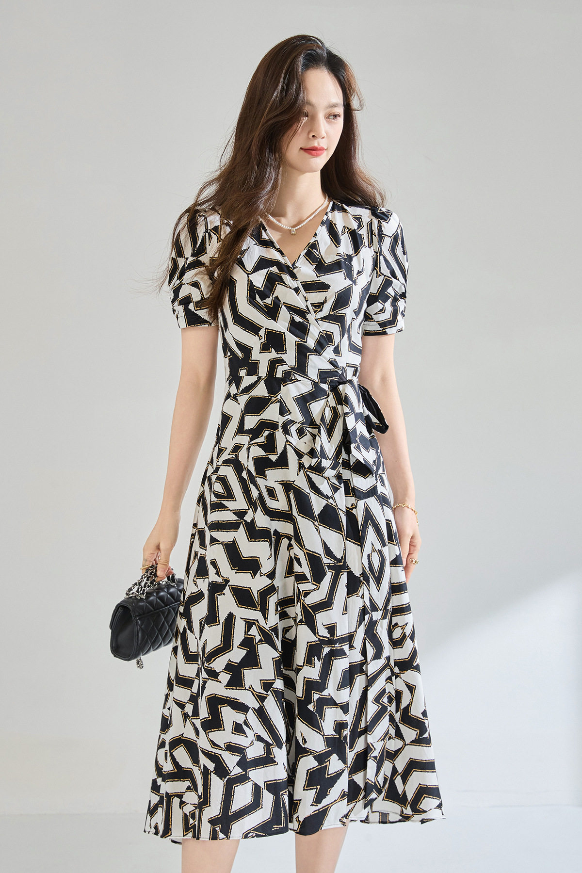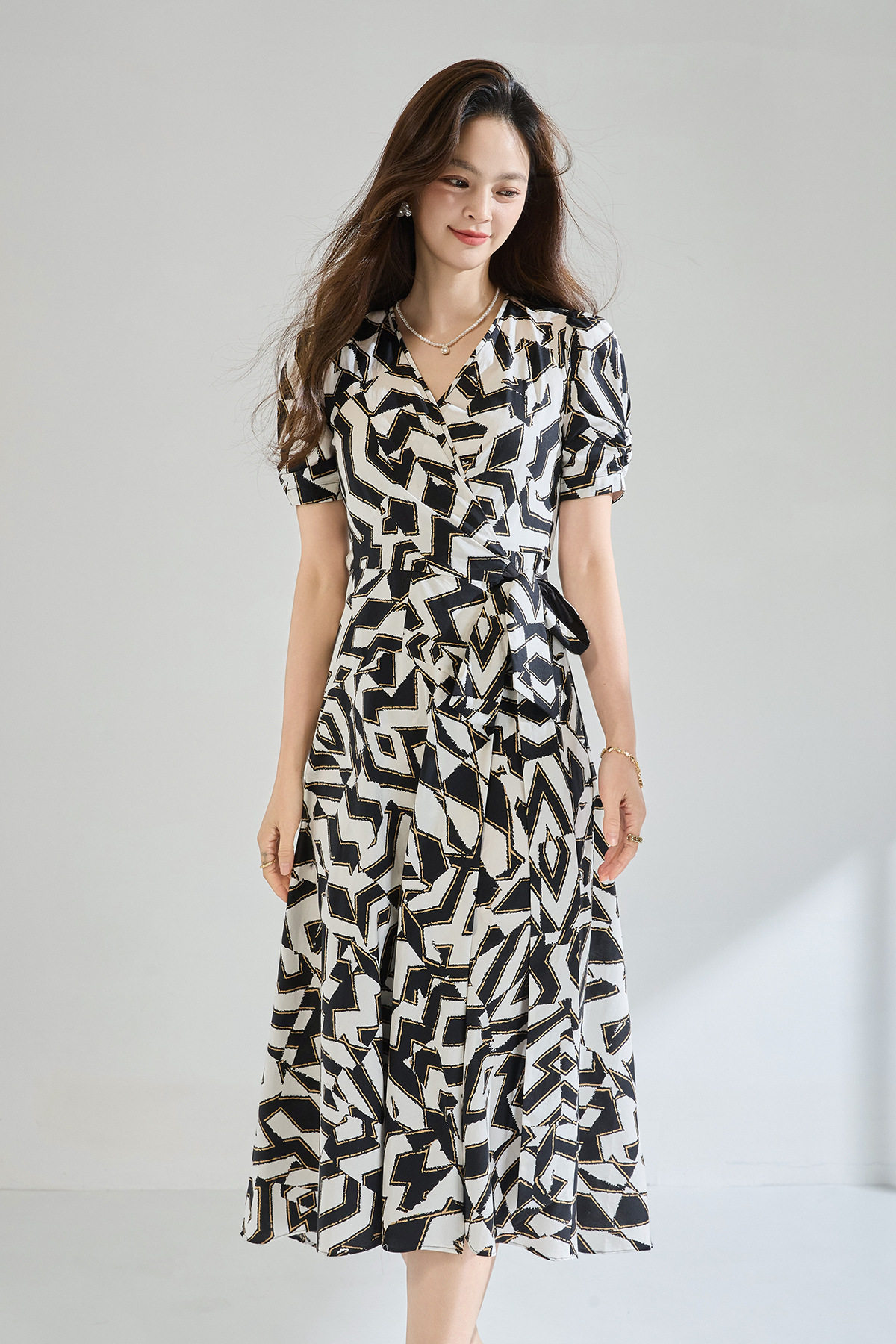 「高货sh」全新升级【铂金会员321/天猫429/差价108】(12652)洛诗琳法式优雅V领连衣裙2026夏季泡泡袖纯棉收腰裹身裙