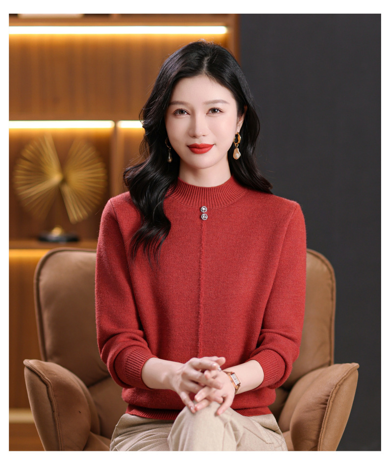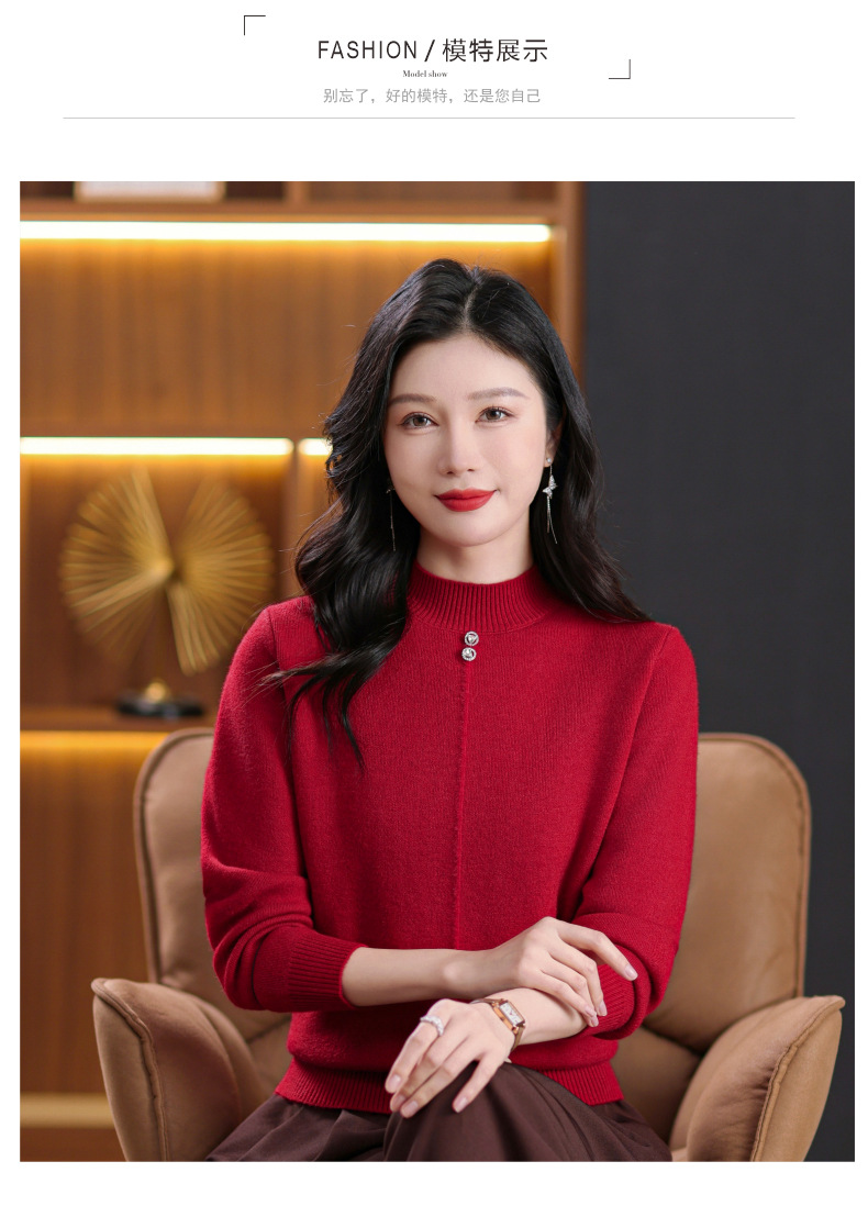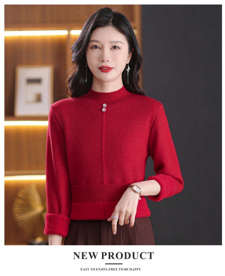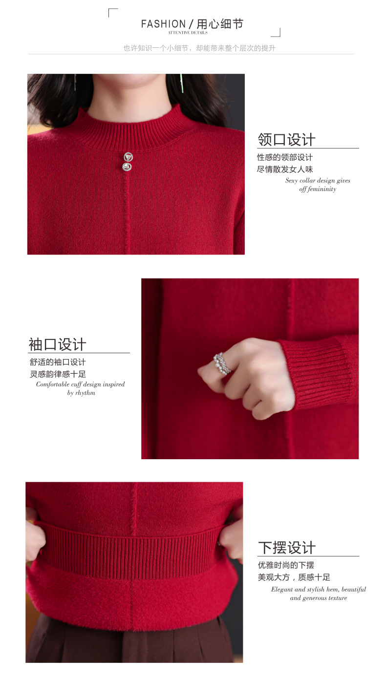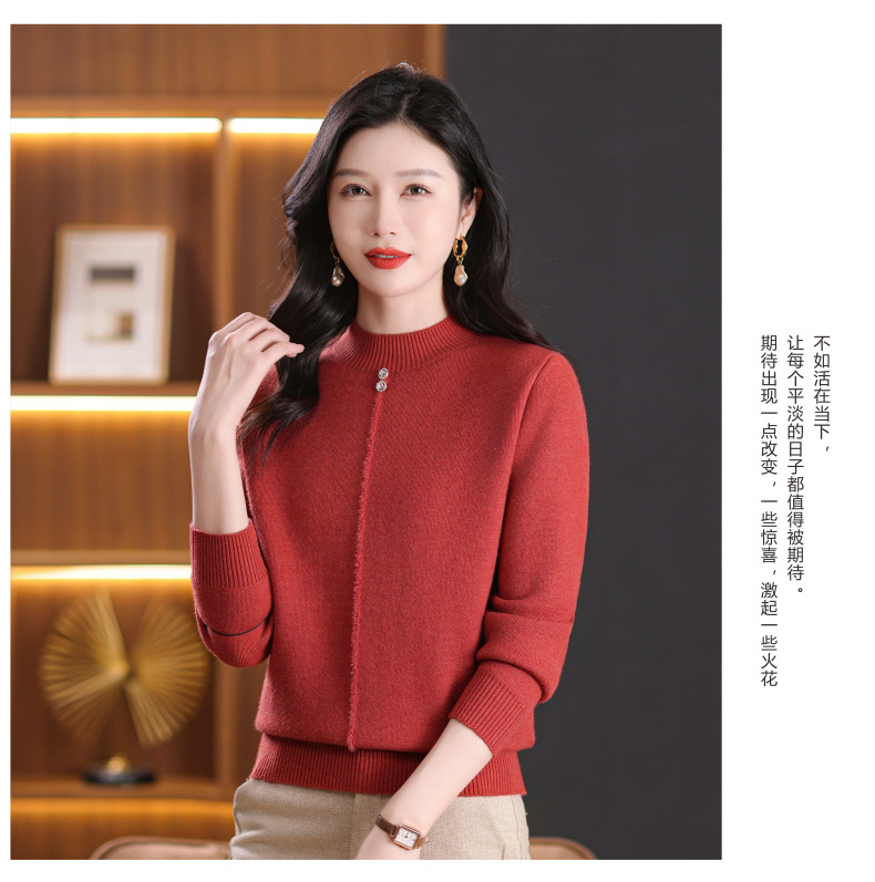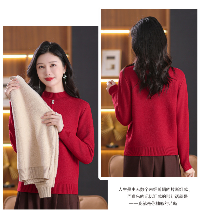 CC-101-8979秋季新款加绒厚款保暖毛衣针织打底衫休闲通勤洋气女上衣女