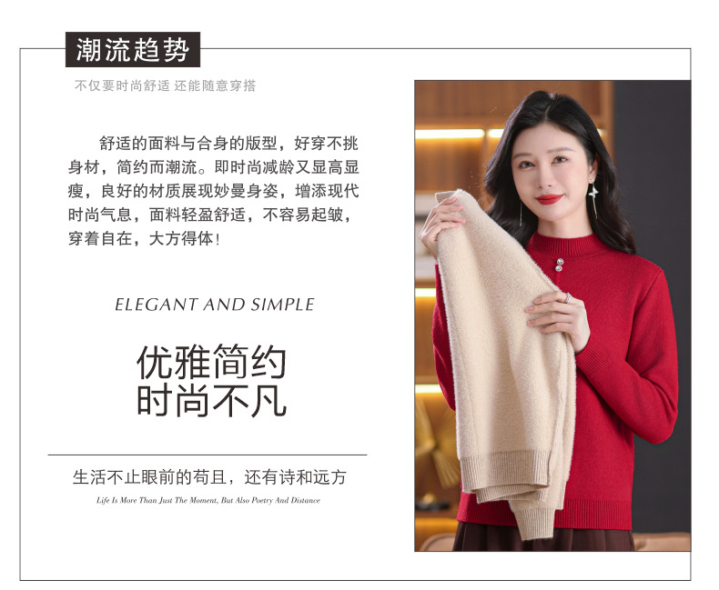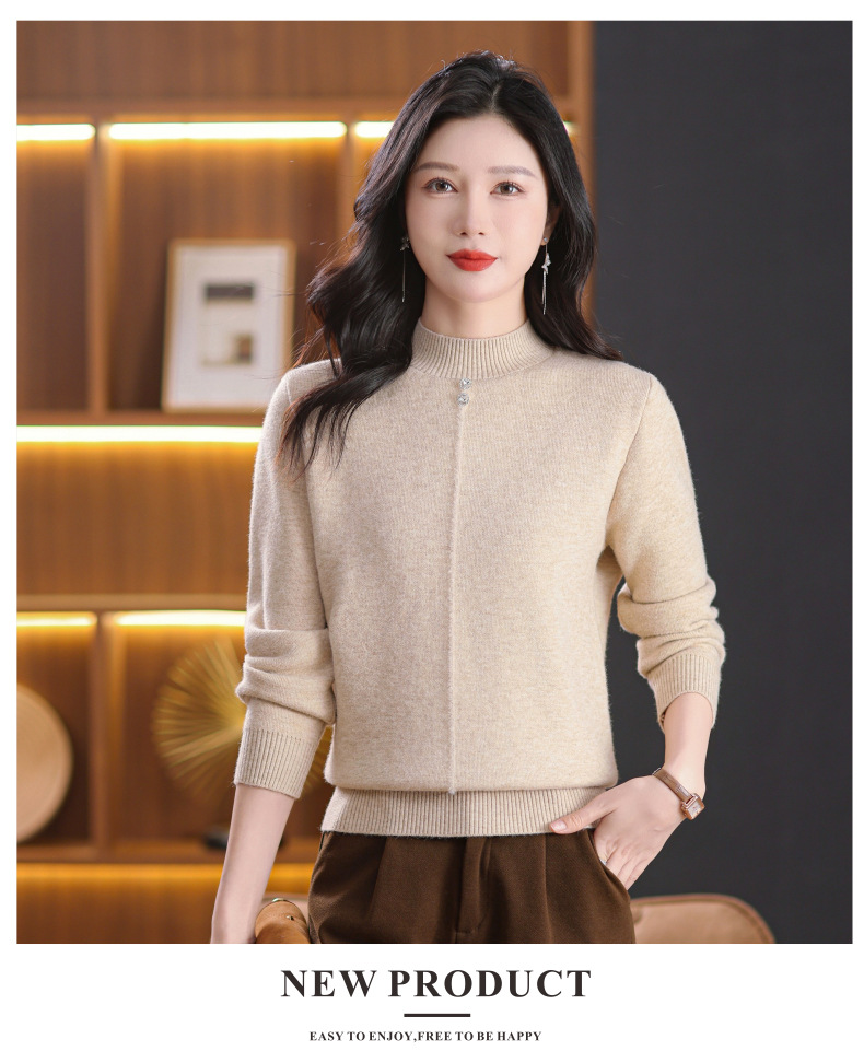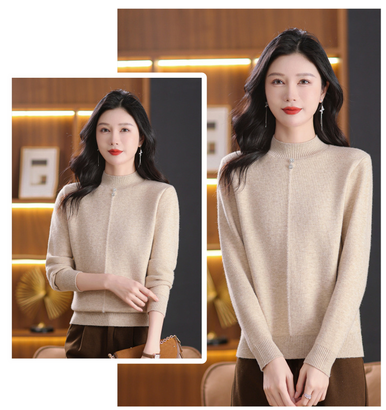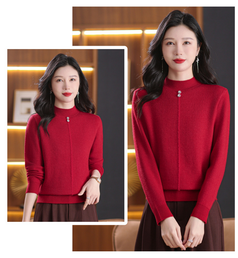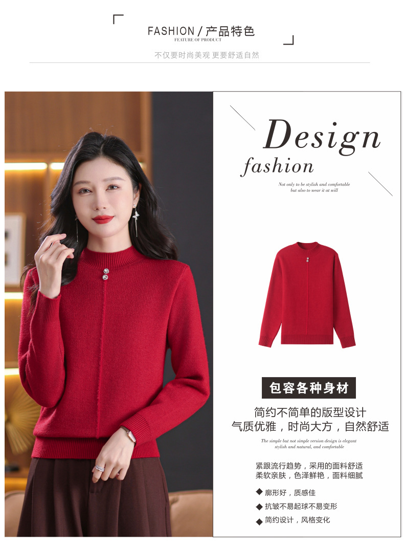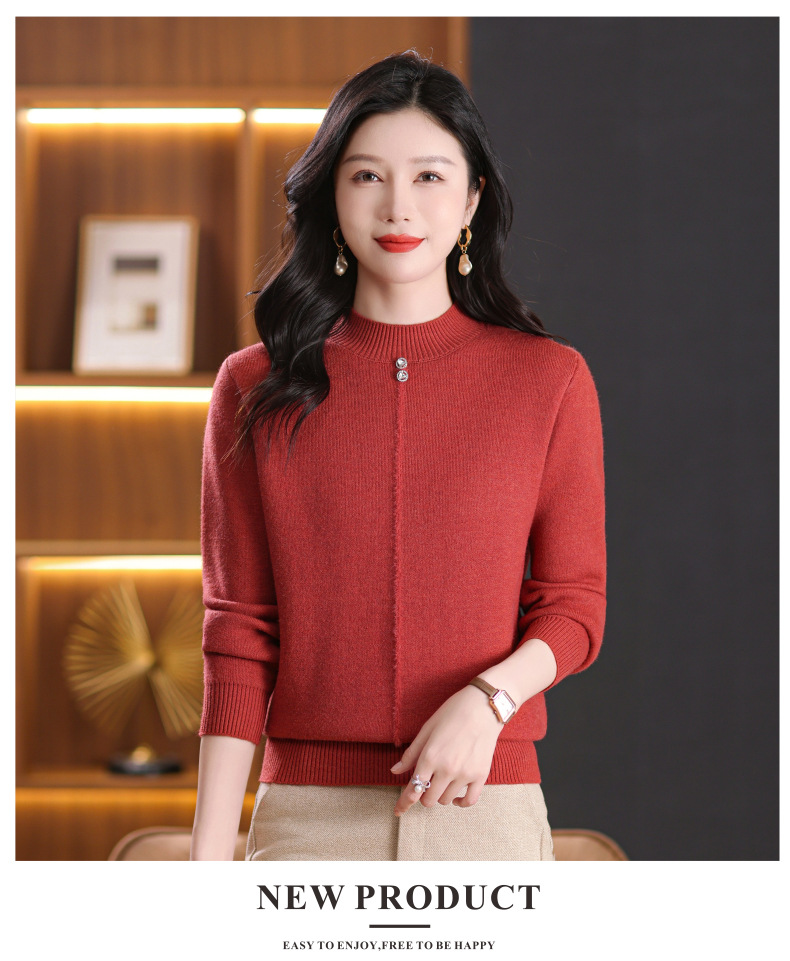 CC-101-8979秋季新款加绒厚款保暖毛衣针织打底衫休闲通勤洋气女上衣女
