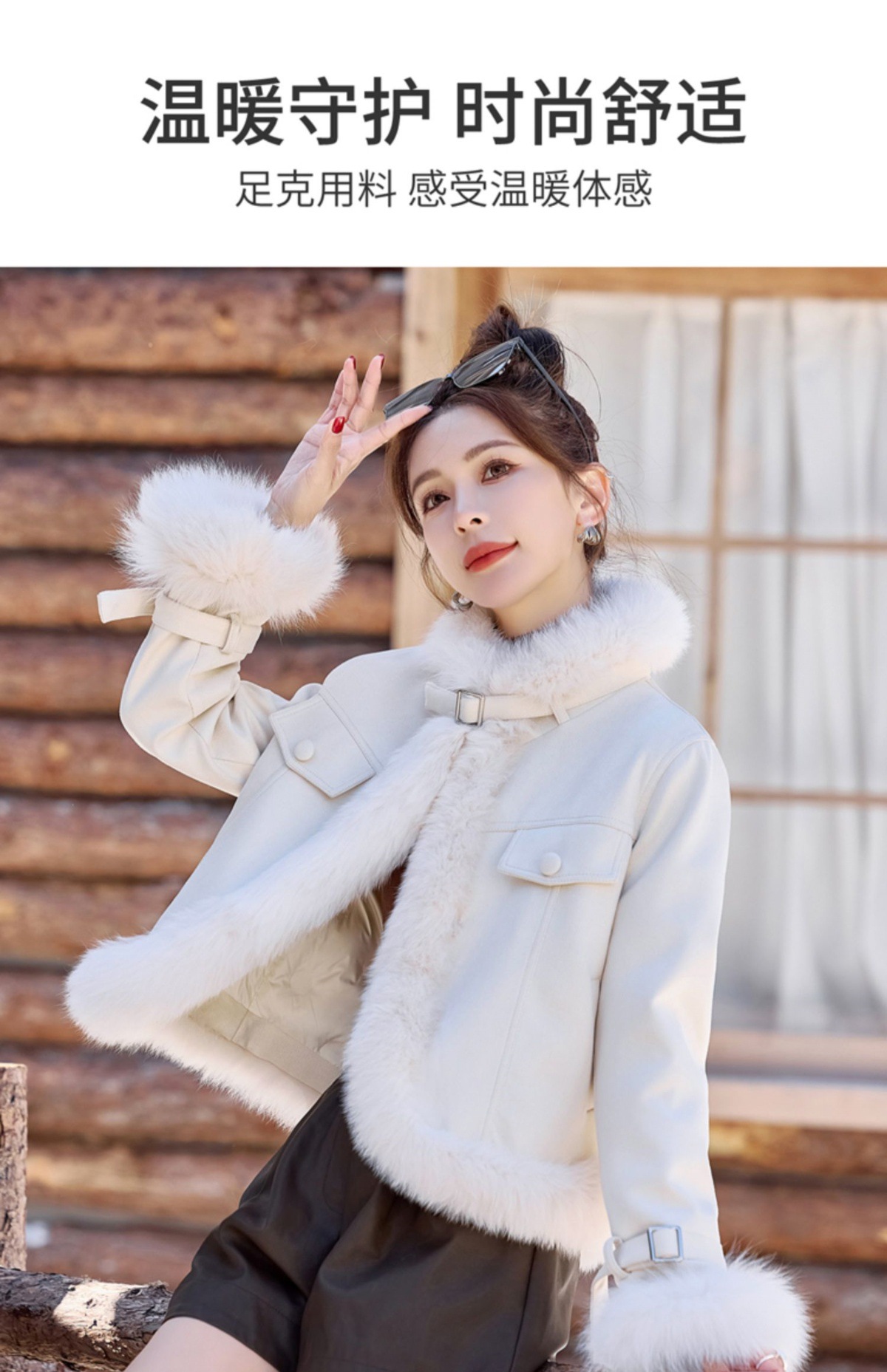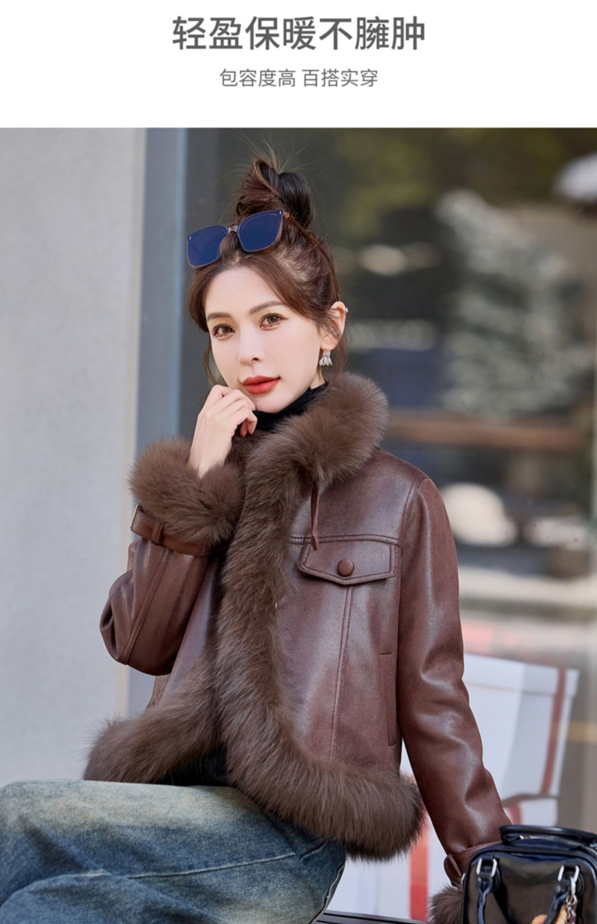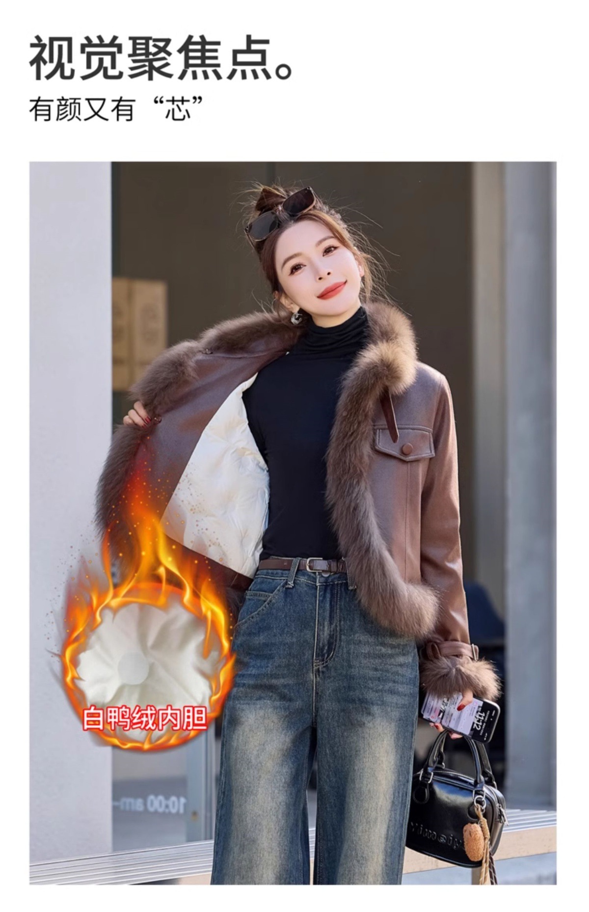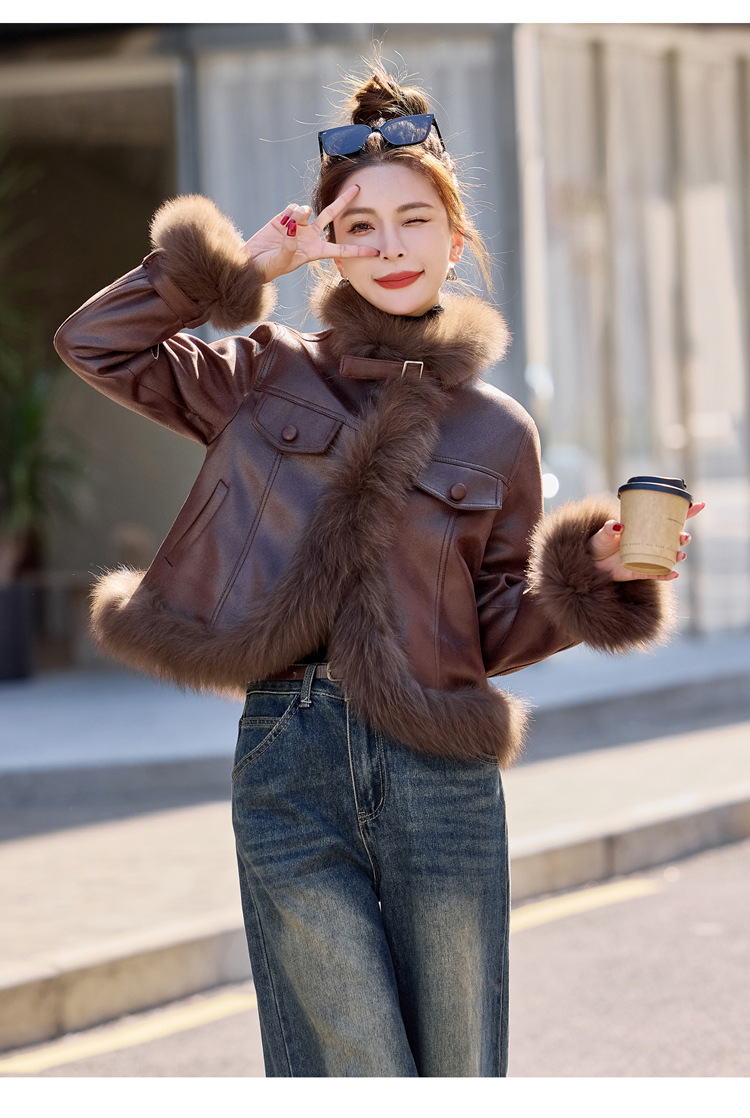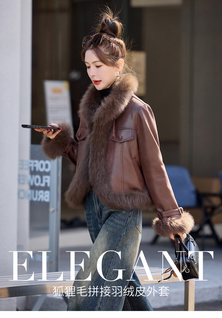 时尚洋气超好看狐狸毛,PU皮羽绒服白鸭绒显瘦外套YJLY6892