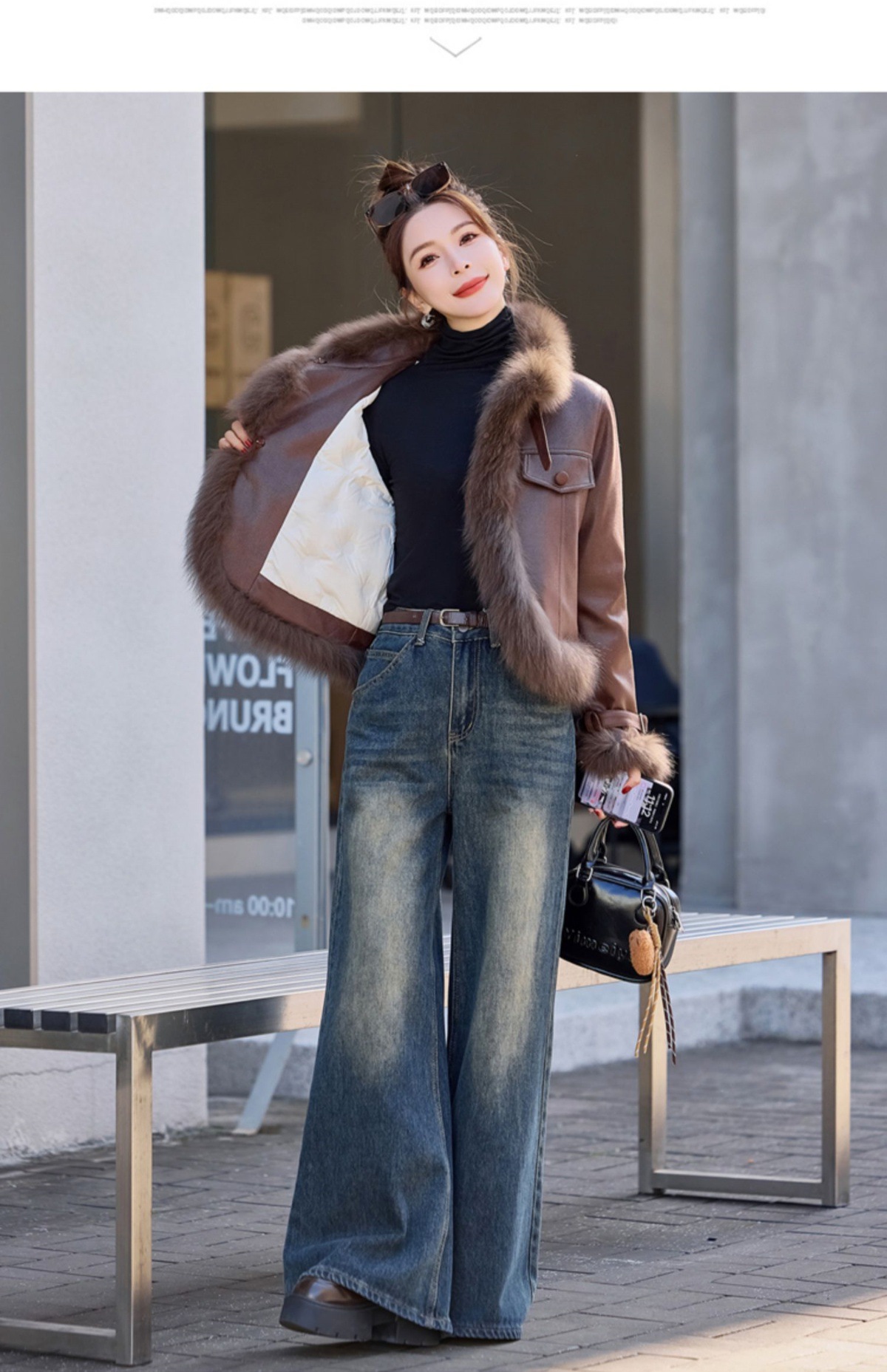 加绒牛仔直筒裤垂坠感,宽松显瘦阔腿裤洋气休闲长裤MYX-OZY-25322-L