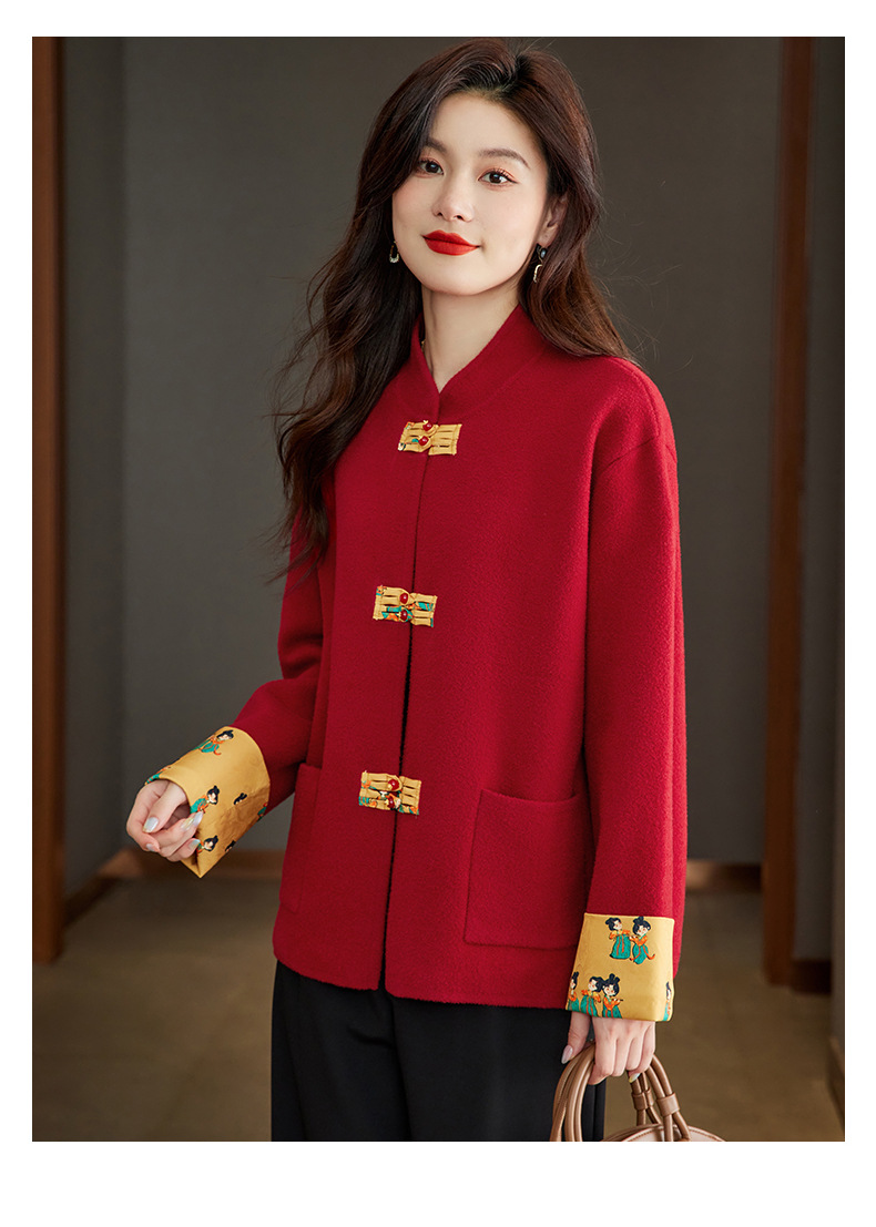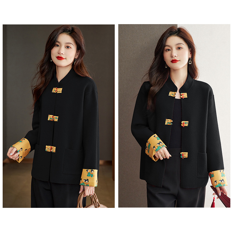 雀说毛呢新中式国风外套女新款时尚洋气外搭上衣AL101