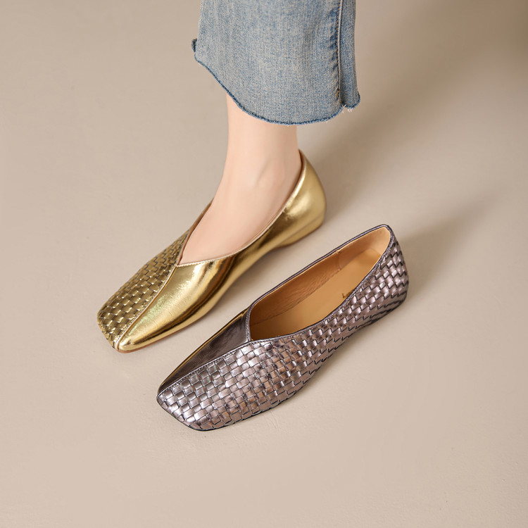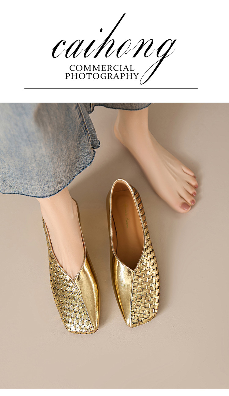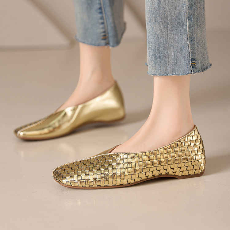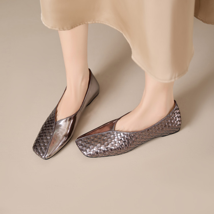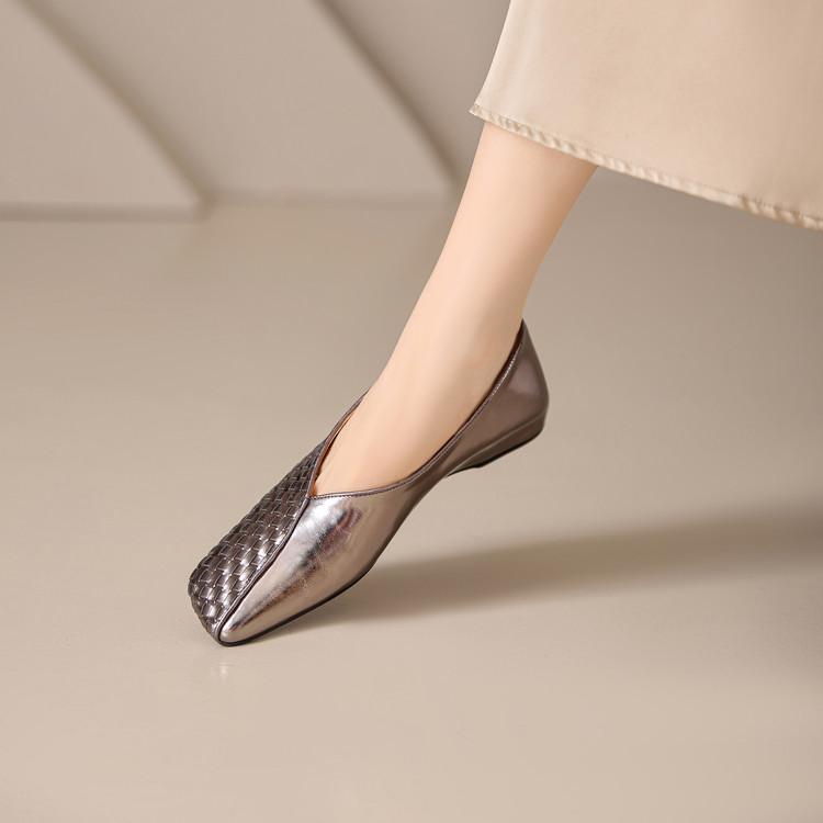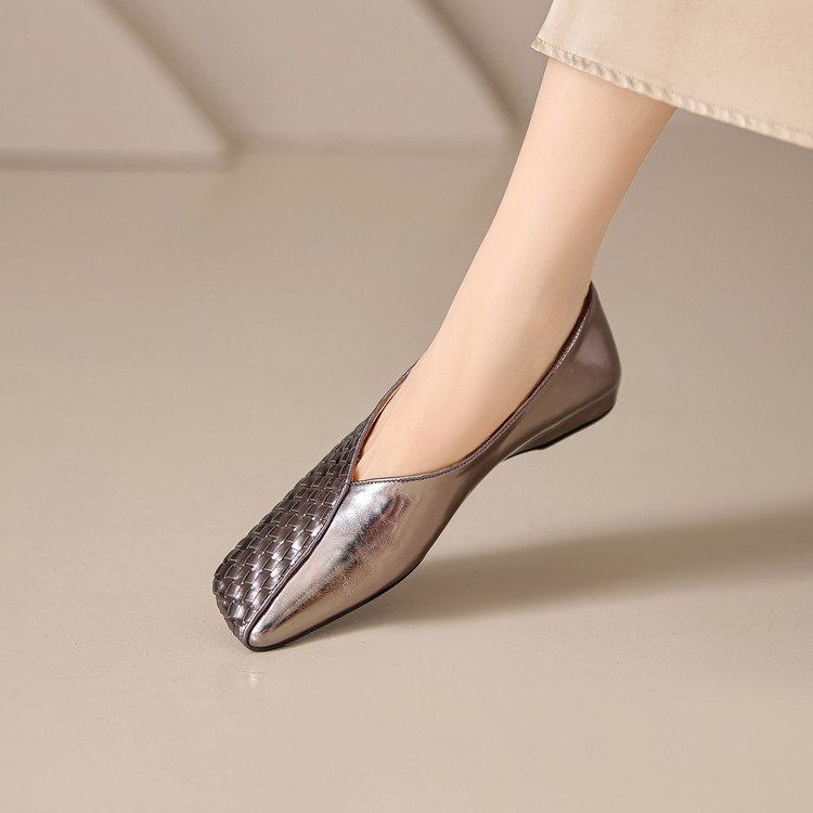 【预售5天】方头金属牛皮内增高浅口单鞋女秋季新款百搭气质舒适通勤小皮鞋MBJR&6947