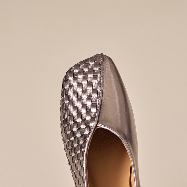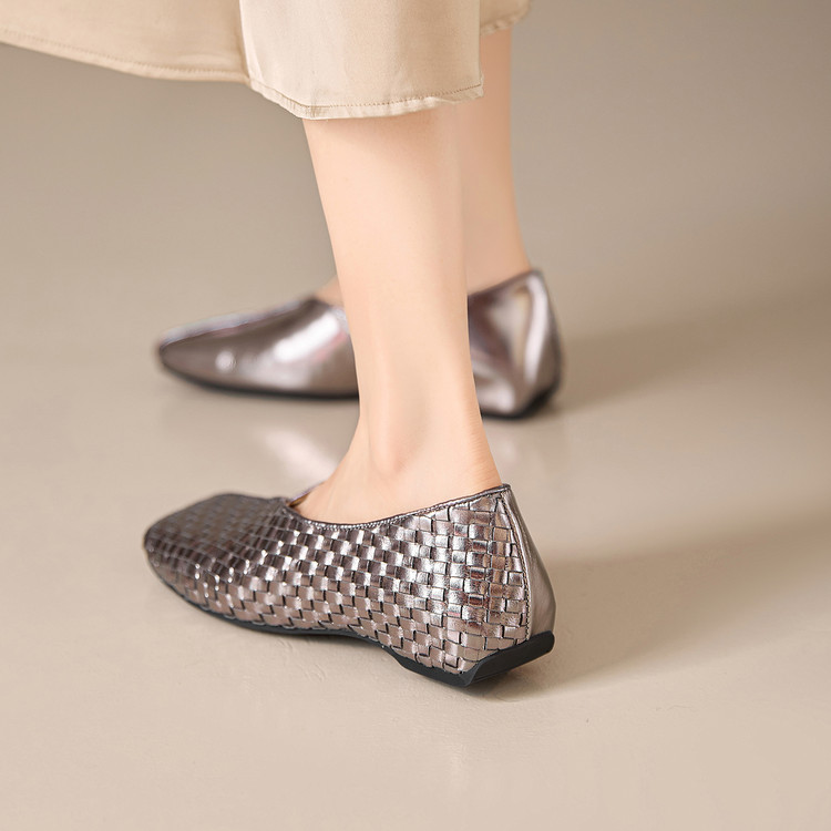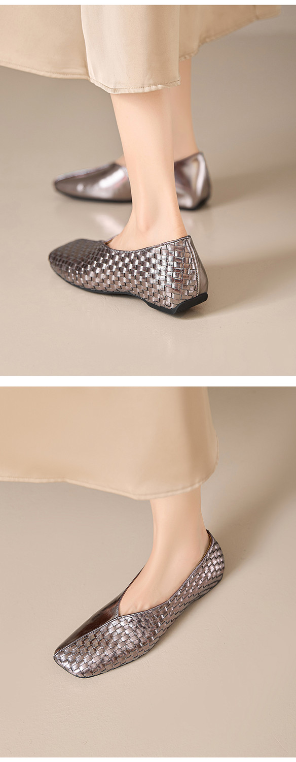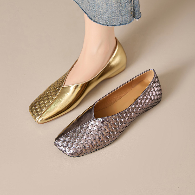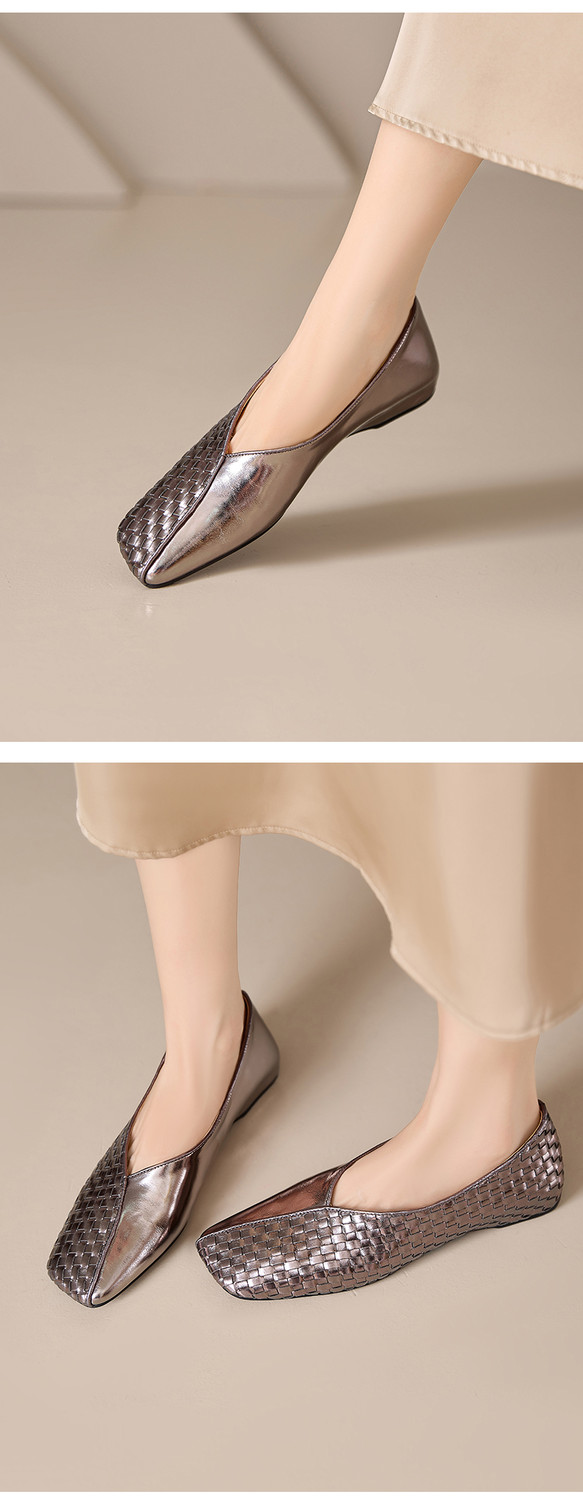【预售5天】方头金属牛皮内增高浅口单鞋女秋季新款百搭气质舒适通勤小皮鞋MBJR&6947