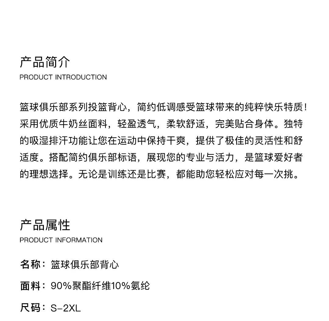 COURTMAN野球帝 篮球俱乐部宽肩背心字母印花男士运动上衣投篮服