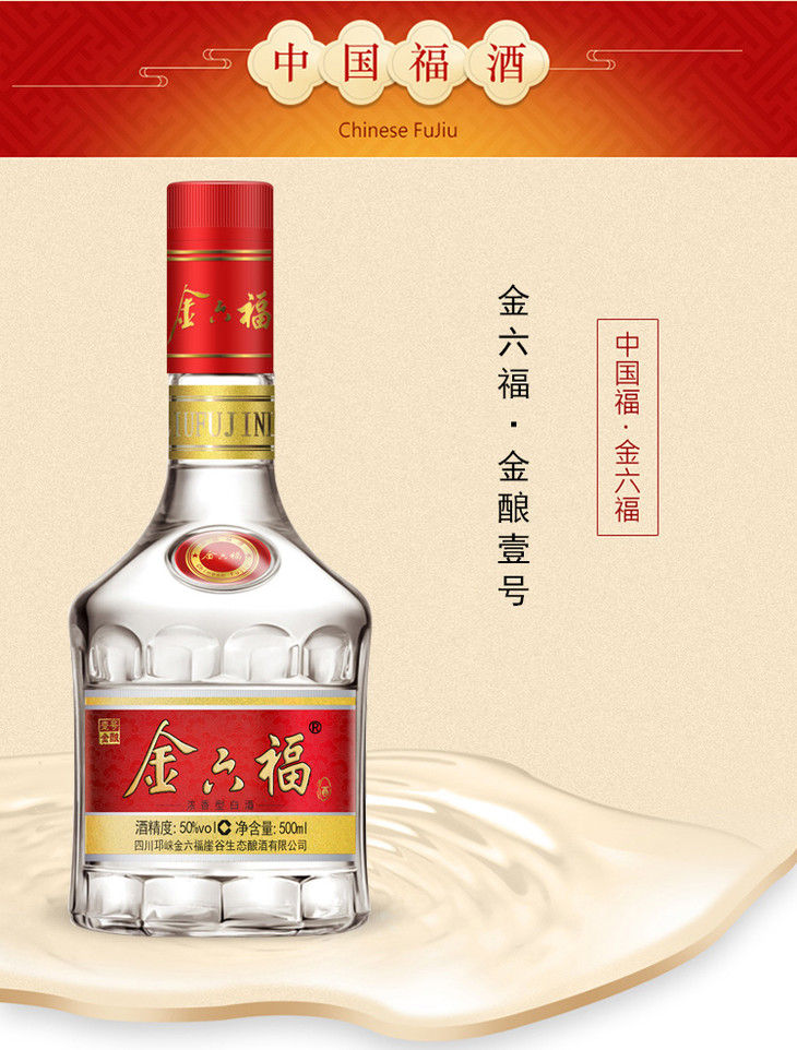 【推荐】金六福 壹号金酿 浓香型 50度 500ml *6整箱