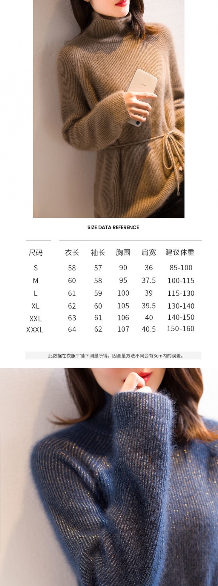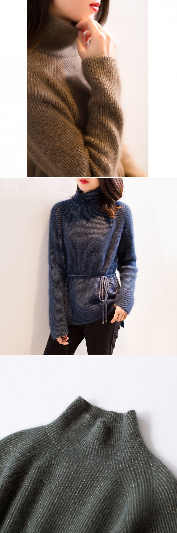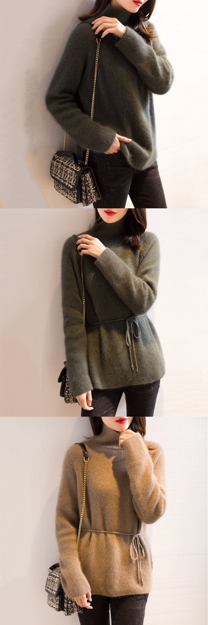 HT-2150秋冬季新款金丝高领毛衣宽松慵懒不规则系带针织衫
