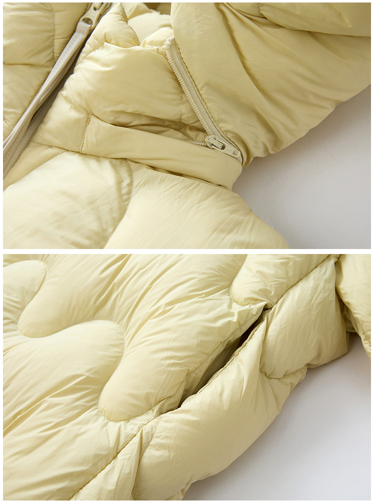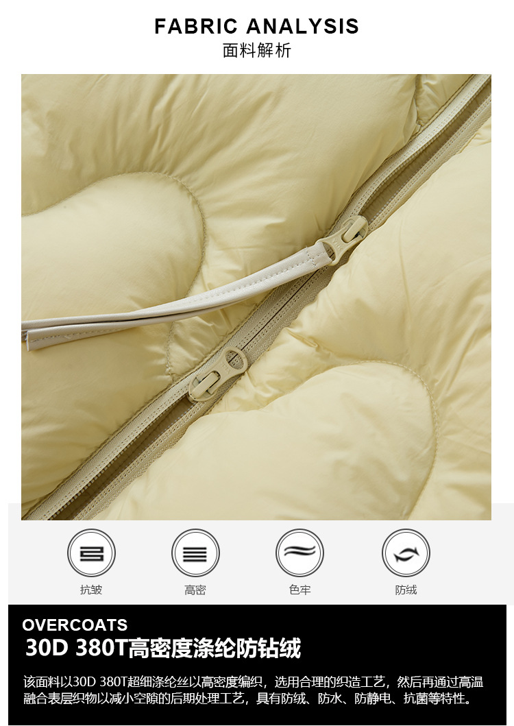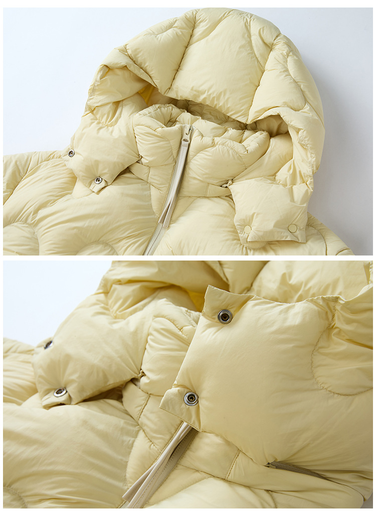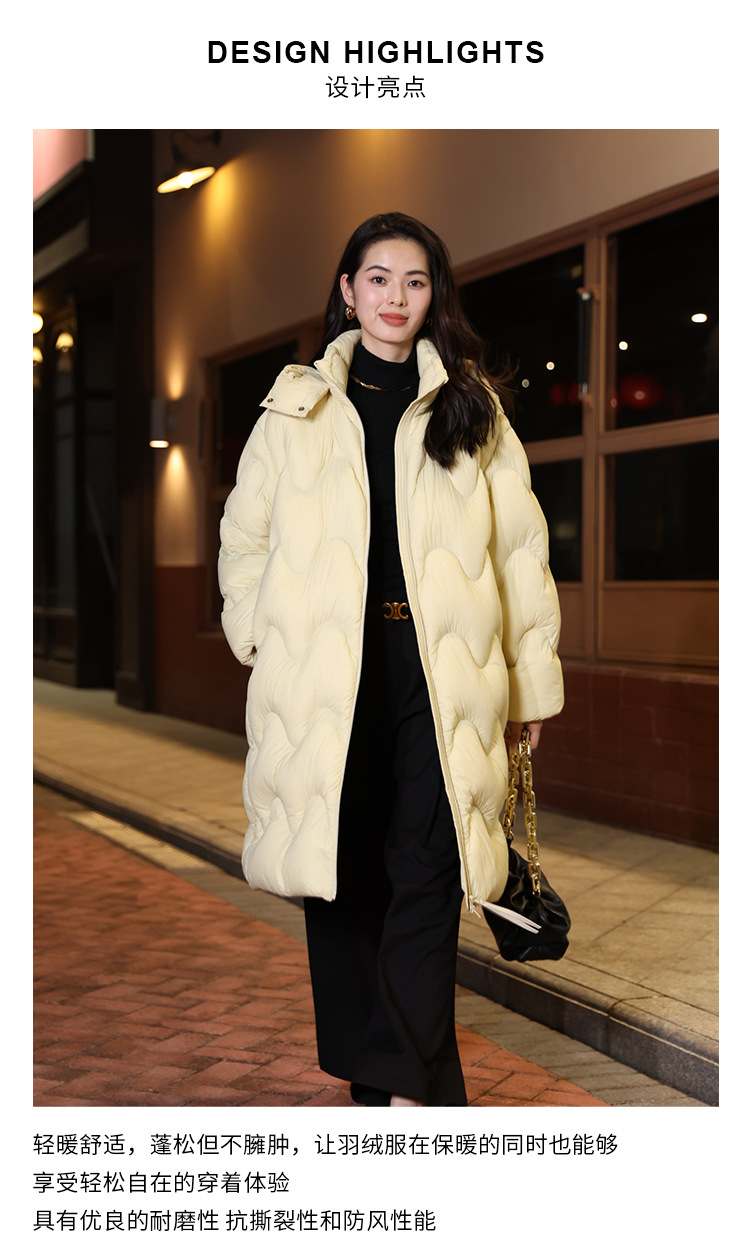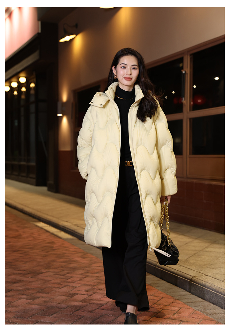 丁摩新品长款简约时尚波浪立体设计90白鸭绒连帽长袖加厚羽绒服女 ALW250188