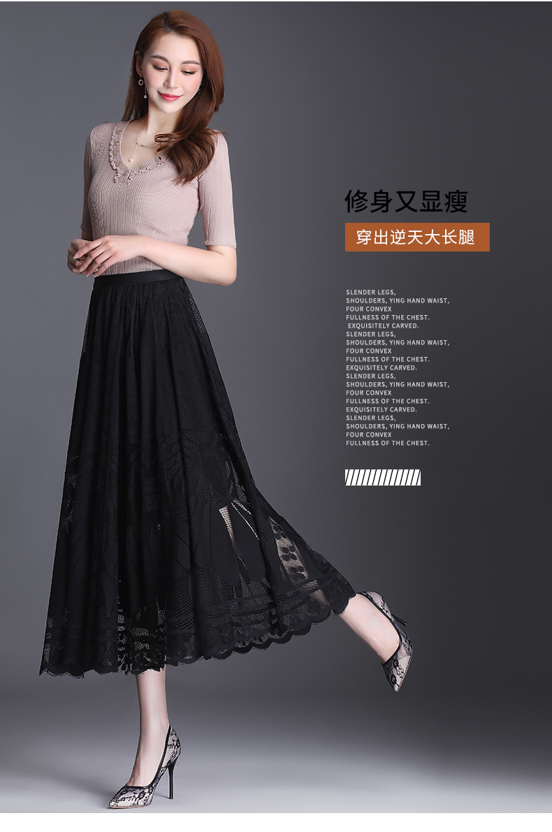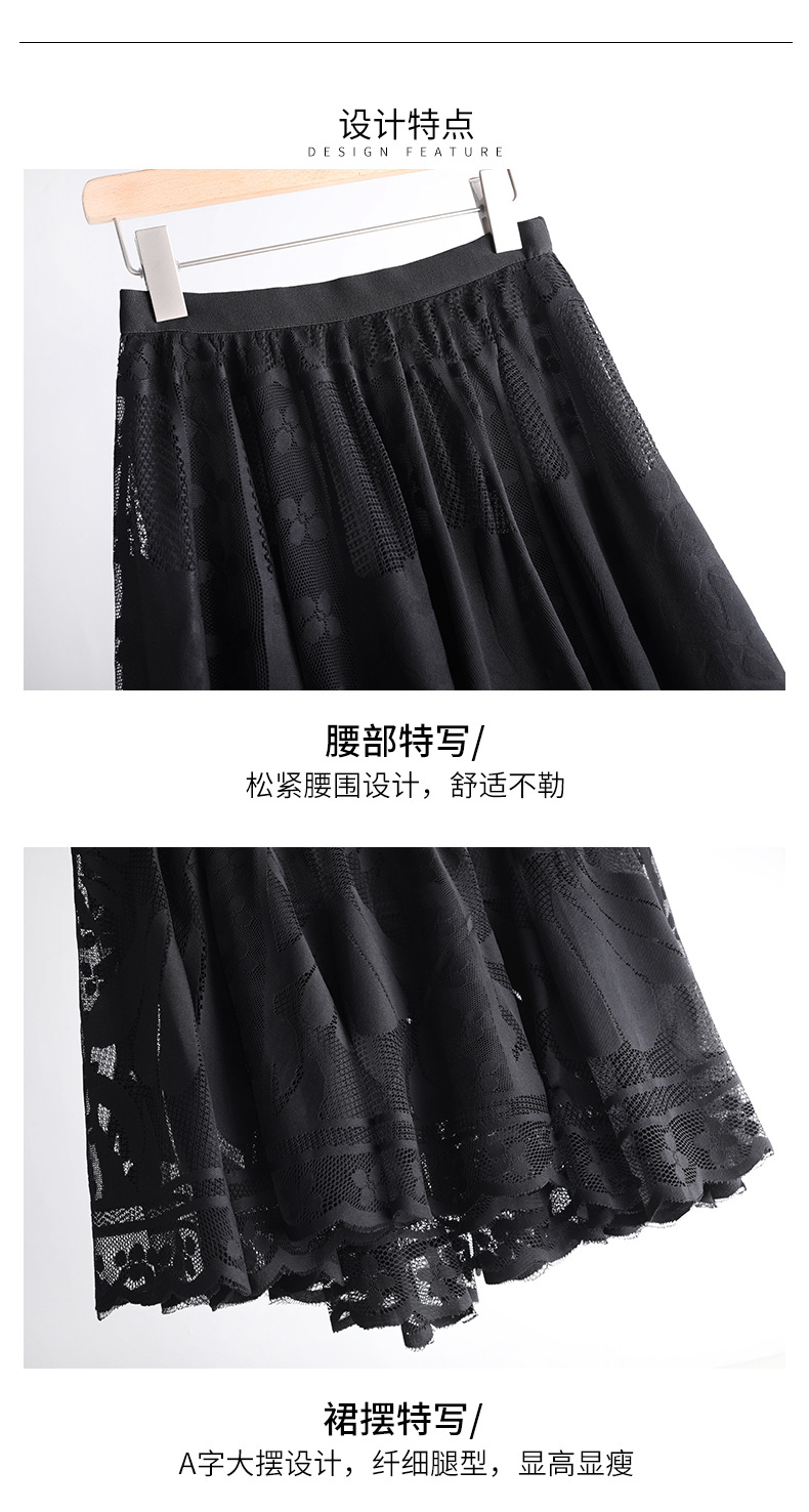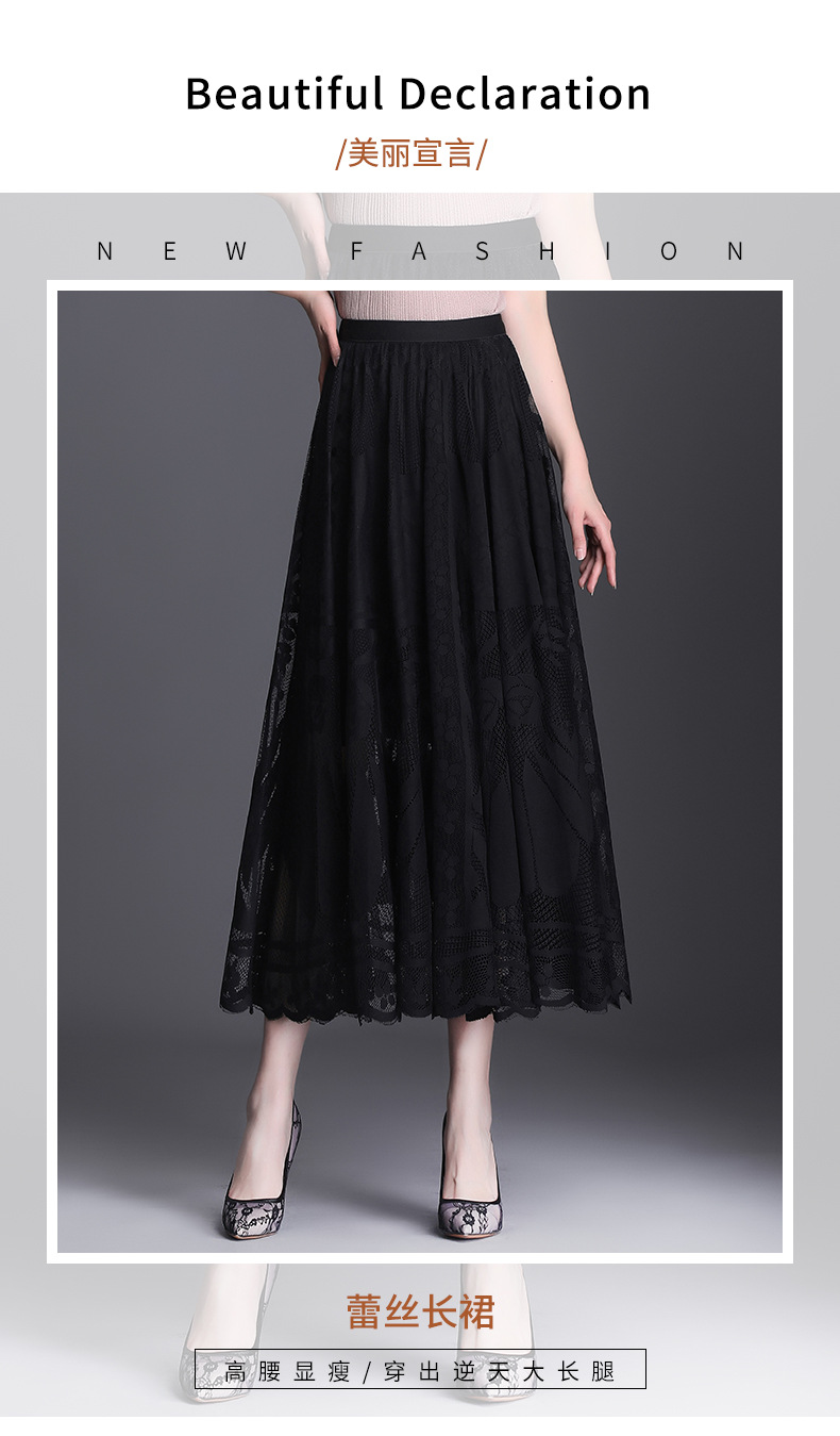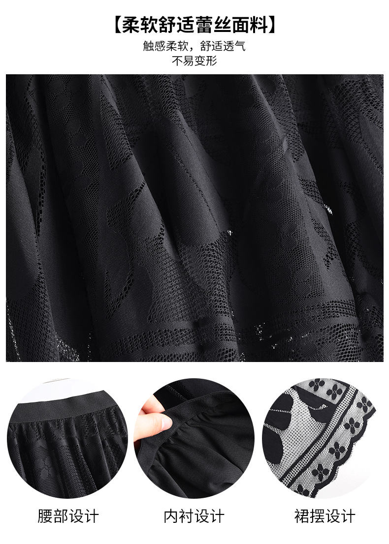 蕾丝长裙半身裙女2022春夏季a字裙高腰显瘦大摆裙遮胯百褶裙子 PXSJ5948