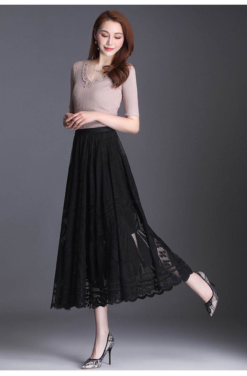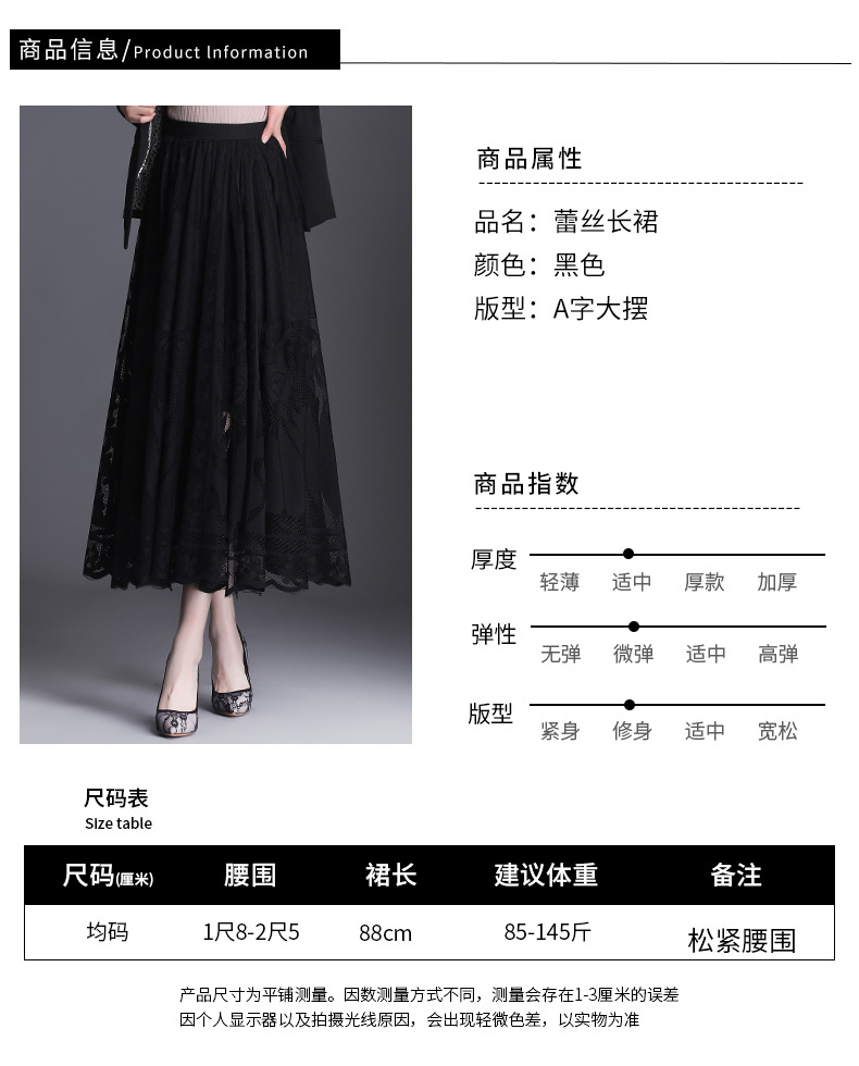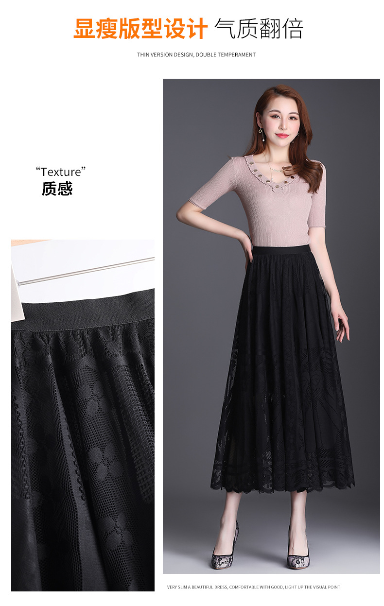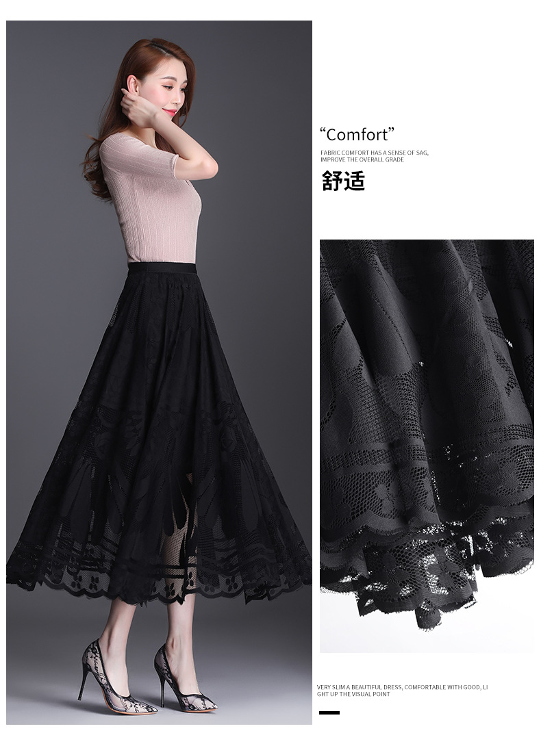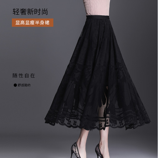 蕾丝长裙半身裙女2022春夏季a字裙高腰显瘦大摆裙遮胯百褶裙子 PXSJ5948