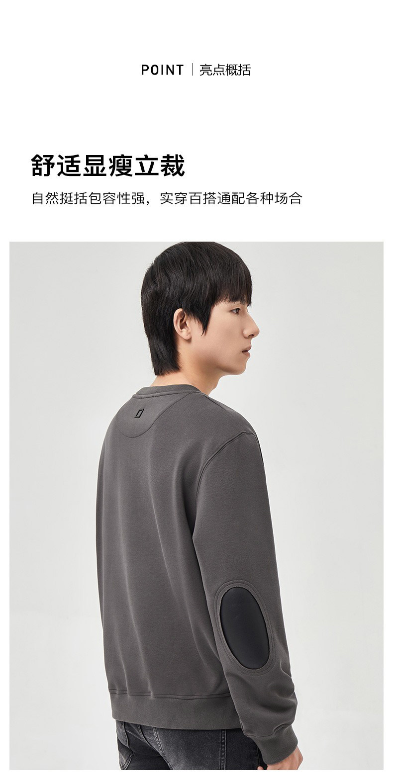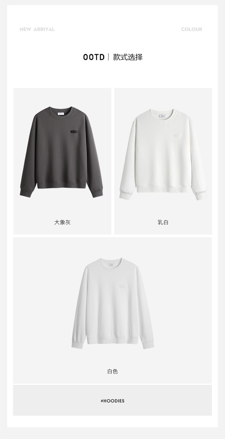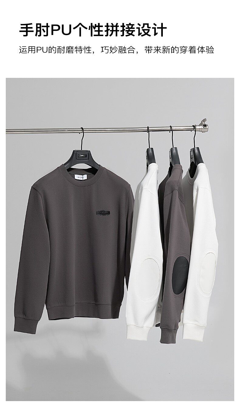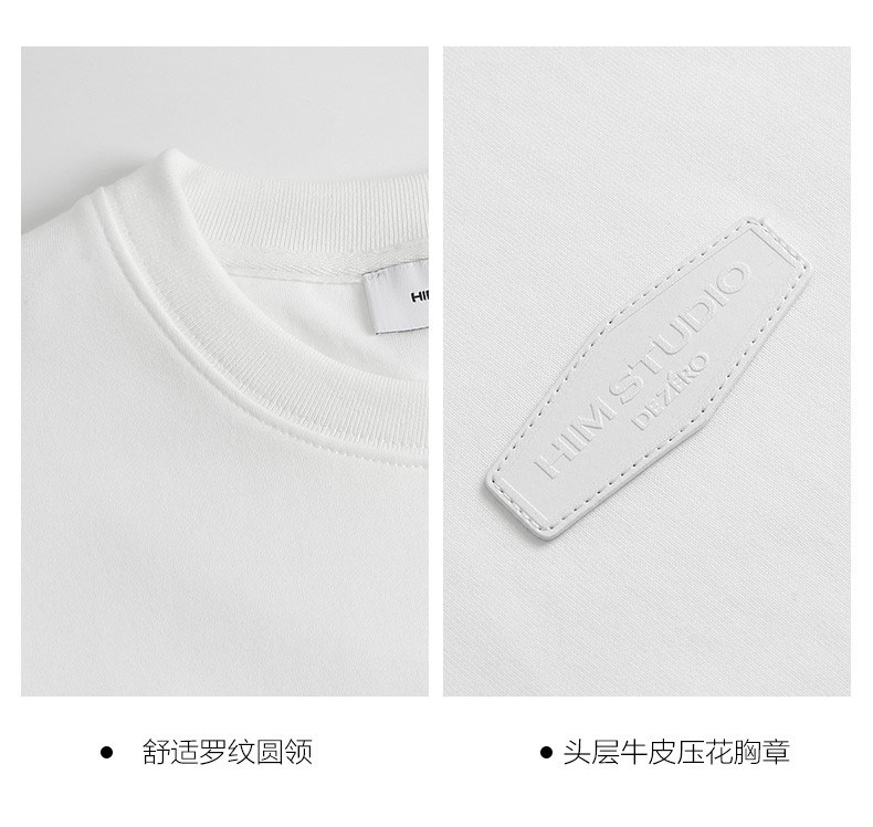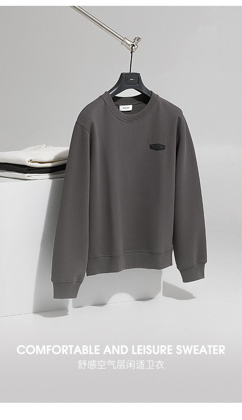 HIM漢崇 定制皮标压花卫衣男休闲双面针织圆领套头上衣 2025秋季