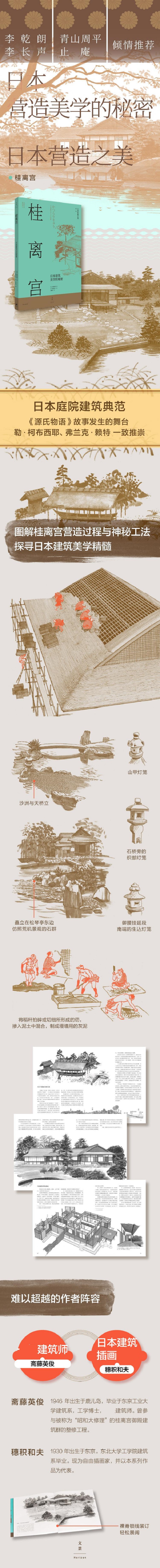 桂离宫御殿建筑群的大整修,从1976年开始一直到1982年为止,总共花费了六年的时间。当时,报纸等媒体将它称作 “昭和大修理”。这次的整修工程距离桂离宫动工的年代,约有三百五十年之久。在这段漫长的岁月里,虽然也曾经进行过几次小规模的翻修,但如此大动作的彻底整建还是头一遭,因而引来大众的瞩目。 当时,我以古迹修复专家的身份参与了这项工程,并且实际负责工程的设计管理与技术指导等工作。除此之外,维修工程进行期间,也同步展开调查工作,目的是为了了解相关的施工技法、材料构件的年代,以及改造过的痕迹。因为如果没有将建筑物解体是研究不出这些资料的。这项调查就学术角度来说,可以算是意义重大,但同时判断于维修时的补强、尺寸的调整、花样的变更、材料的取代等,这样的工作也是必要的。 调查工作不仅止于判断柱子或桁上的卡榫是否是最初的产物,就连轻微的风蚀痕迹或是小小的刮痕,乃至于一个钉子所留下的洞,都必须滴水不漏地观察,反复推敲它所代表的意义。每天的工作,可以说都是不断针对拆解后的数千个构件,一一进行仔细的调查记录。在这本书中,有关御殿的营造过程与技法的解说,很多来自这些调查工作的结果。 像桂离宫这样的建筑物,由于它的材料构件分得很细,细部又格外错综复杂,想要将它画成图像实在不是很容易的事。可是,穗积和夫先生却能把我提出的无理要求,利用适当的构图方式,转化成人人易懂的插画。另外,负责编辑的平山礼子小姐对于我老是赶不上进度的状况,也总是给予包容甚至是鼓励,同时她也在文章和插图的安排及内容方面,提供了许多宝贵的建议。因此,本书的诞生必须归功于上述两位专业的协助,本人谨在此致上感谢之意。