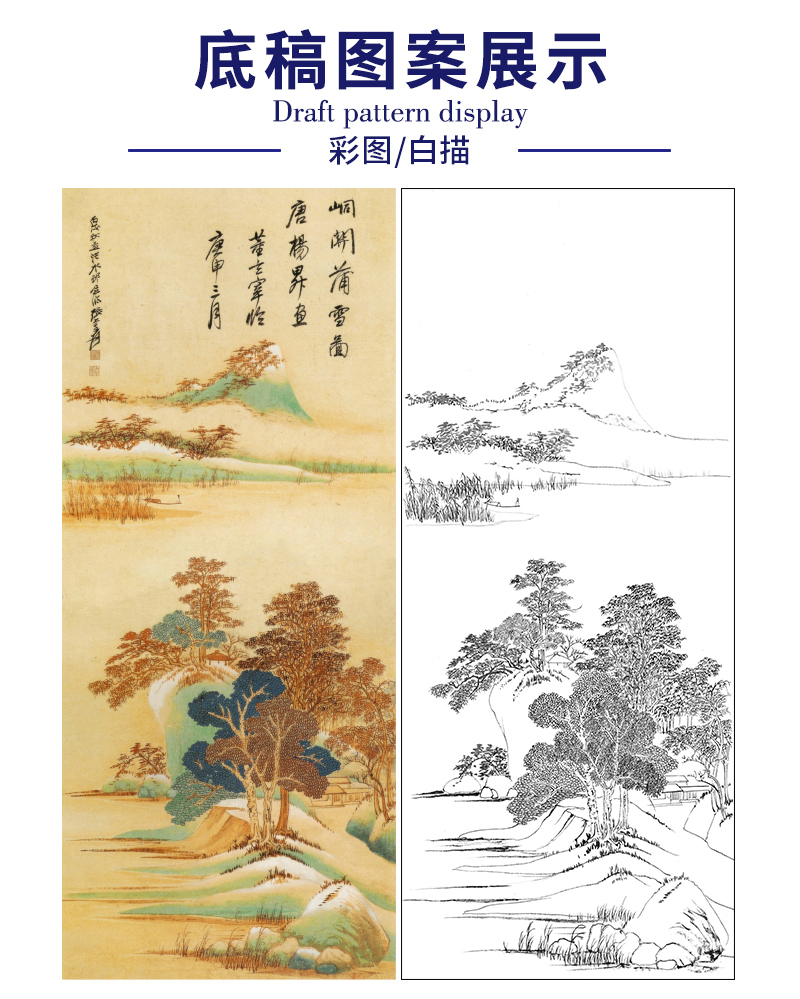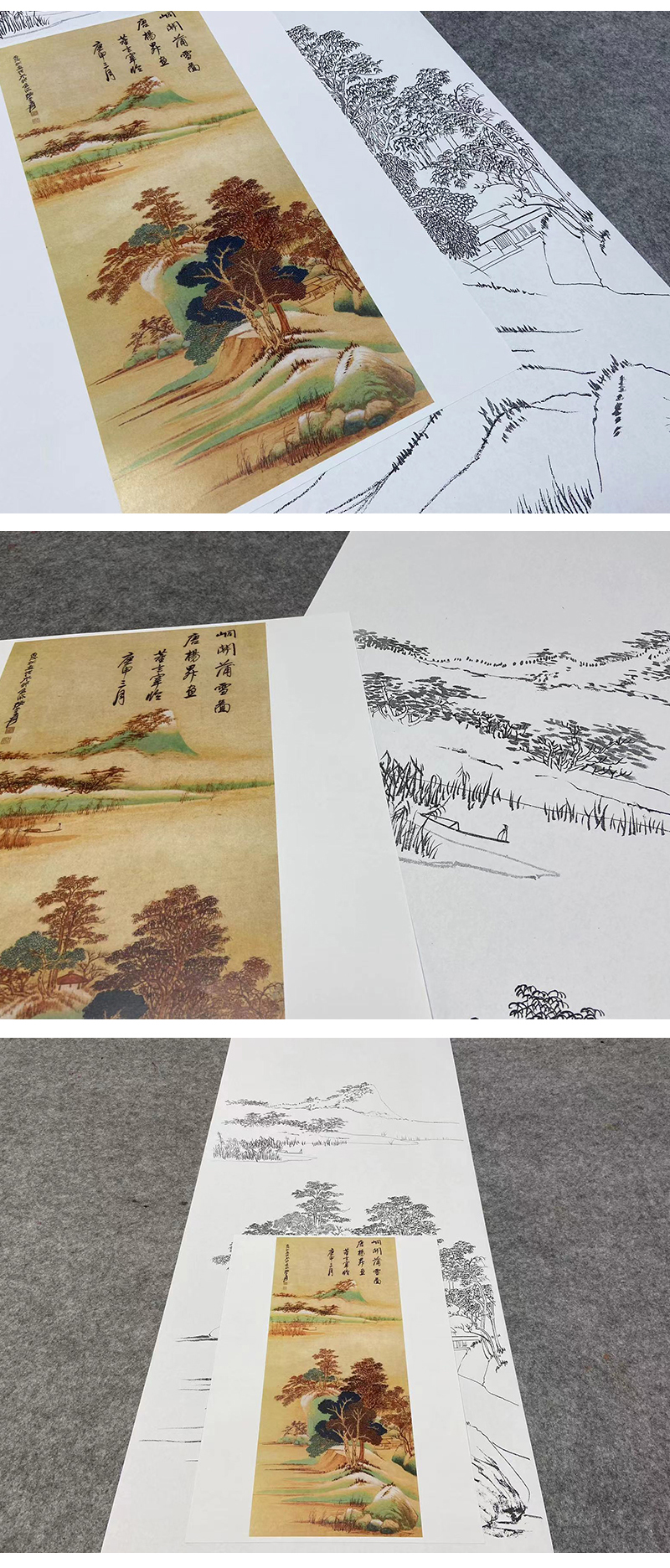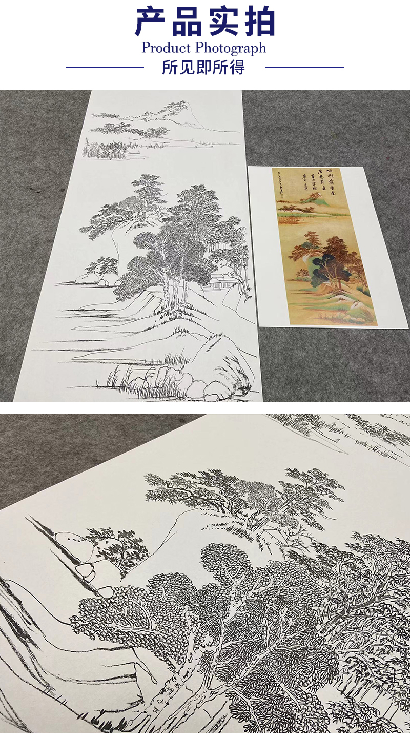 张大千竖幅工笔山水白描底稿《仿董其昌峒关蒲雪图》临摹勾线高清打印稿QD12