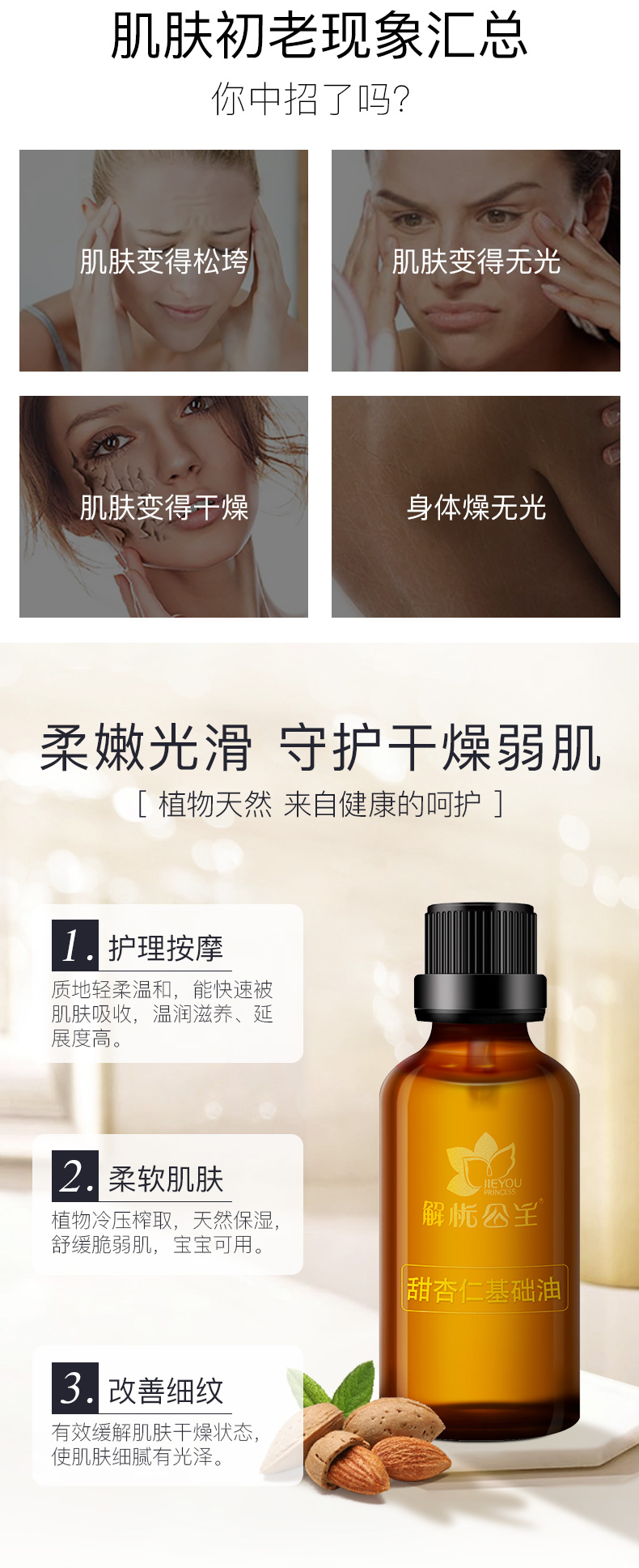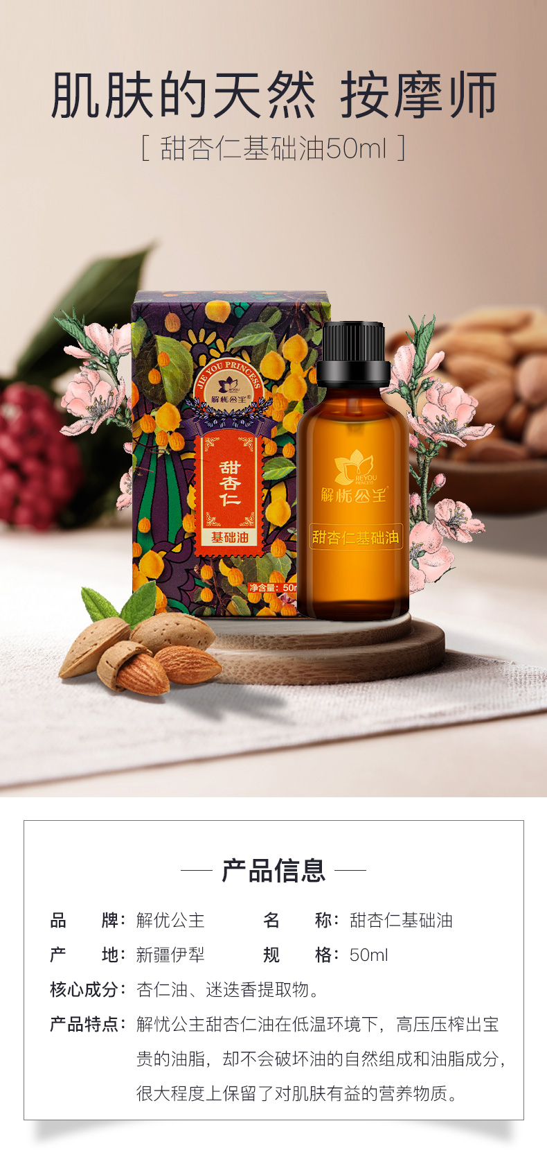 解忧公主甜杏仁基础油50ml基底油 软化温和滋润任意搭配基底精油