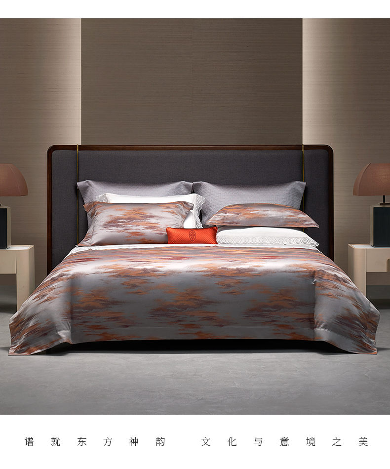 whinny/惠谊 意大利进口长绒棉全棉贡缎色织提花四件套 初霞