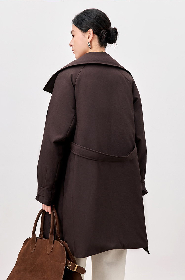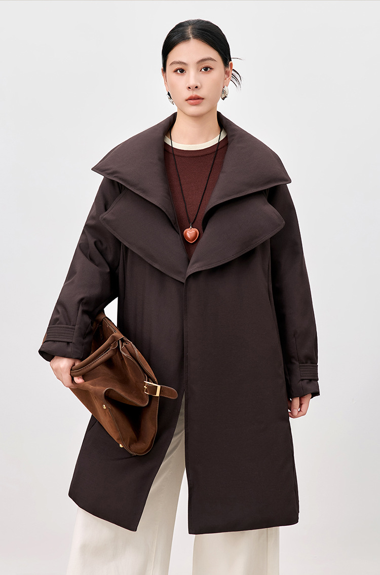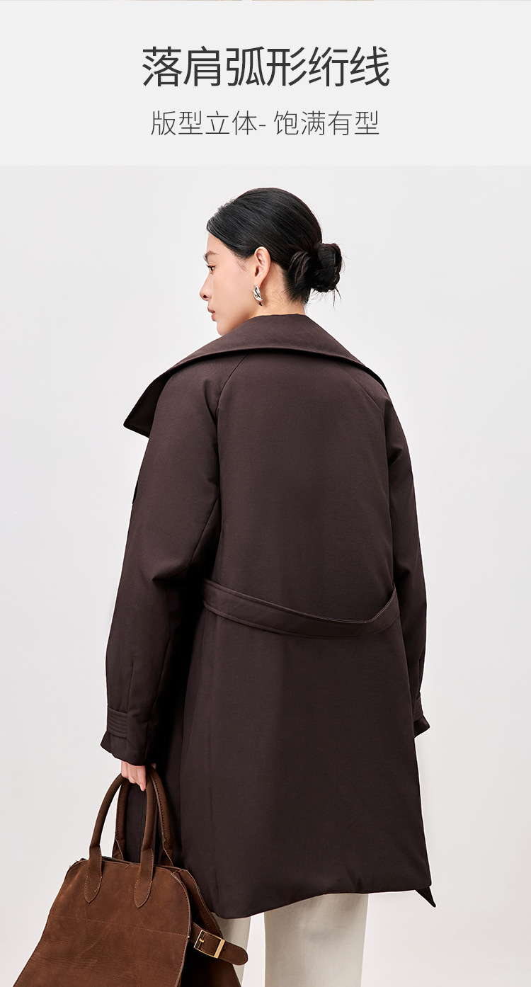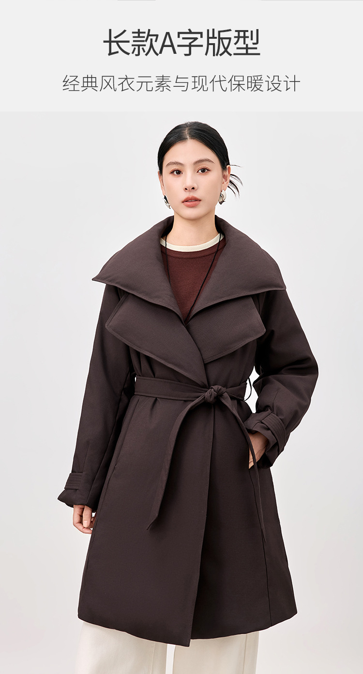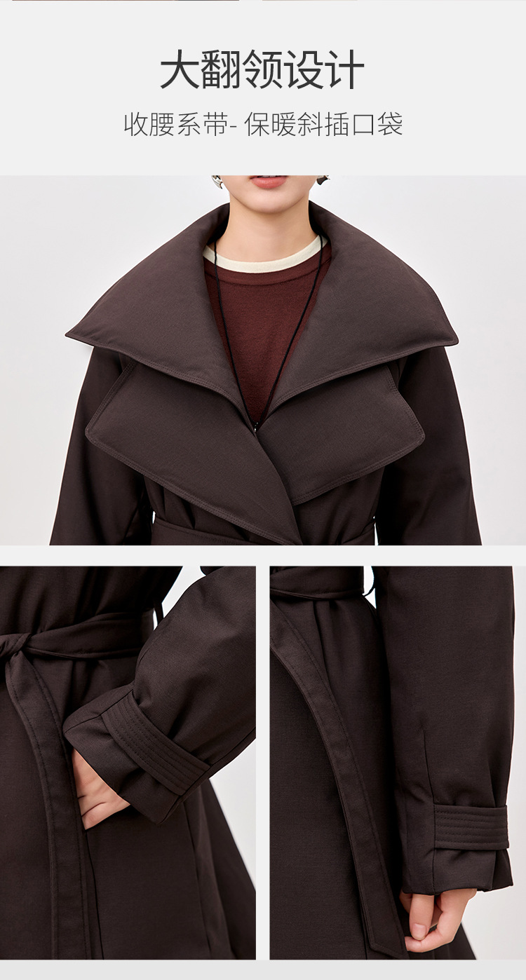 QS25冬季新款长款过膝鹅绒服女款加厚保暖外套设计感开领95鹅绒2119
