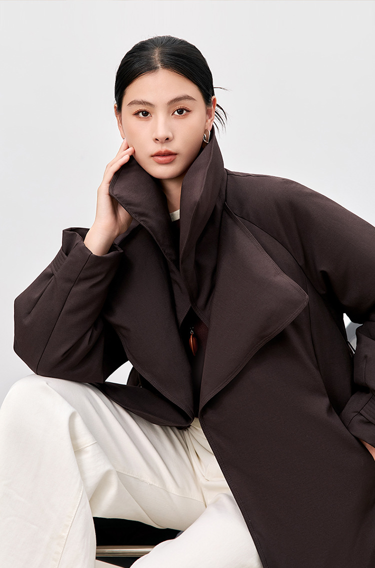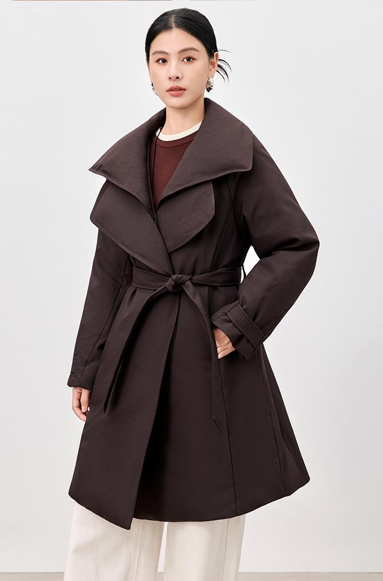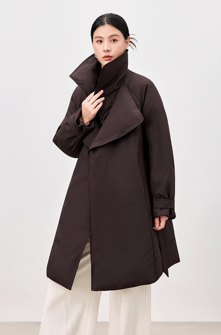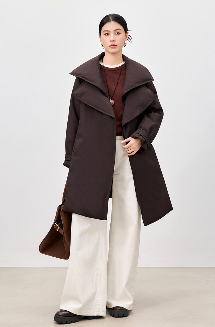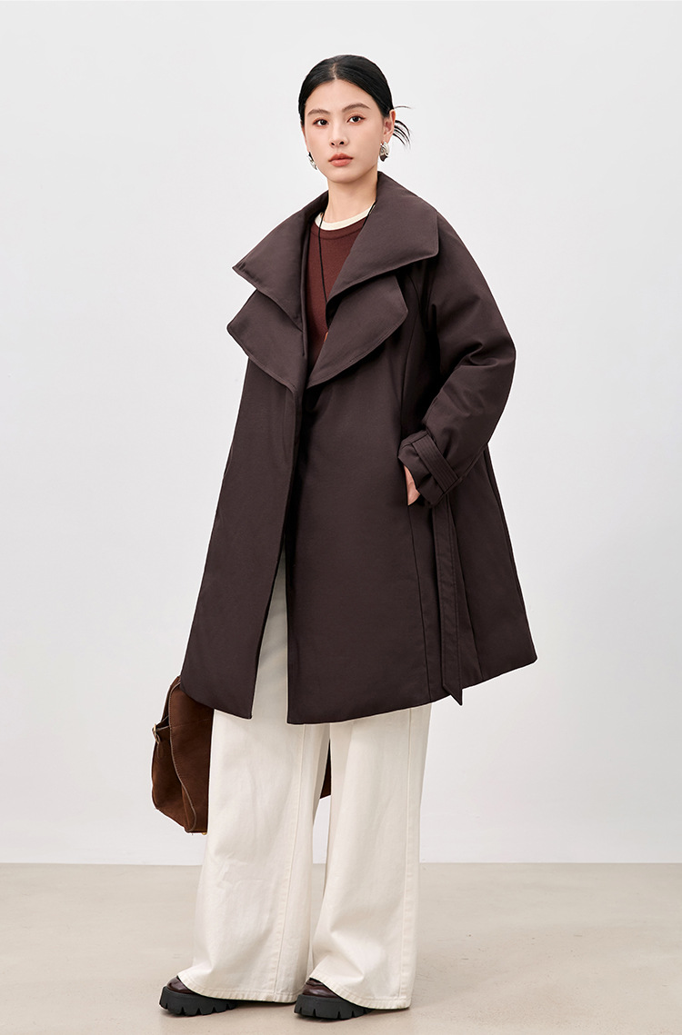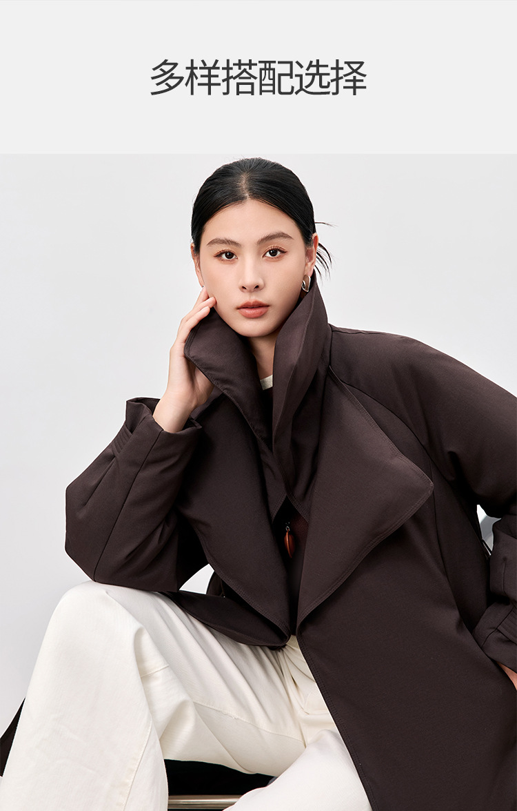 QS25冬季新款长款过膝鹅绒服女款加厚保暖外套设计感开领95鹅绒2119
