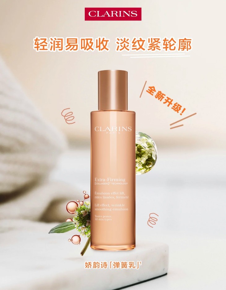 👑娇韵诗弹簧紧緻乳液100ml(2025) ❤️3D收紧肌源弹簧,1步抗松垮,淡纹紧轮廓 💧升级配方矩阵【植萃+胜肽) 🤩全新【山核桃树精萃】减少胶原降解流失、根源抗松垮 💁全新【仿生胶原多肽】促生双胶原、速淡纹 🌸经典【粗糙帽果精粹】束紧肌底结构,紧轮廓 💧轻润乳液质地,混油挚爱,一抹吸收,控油细腻