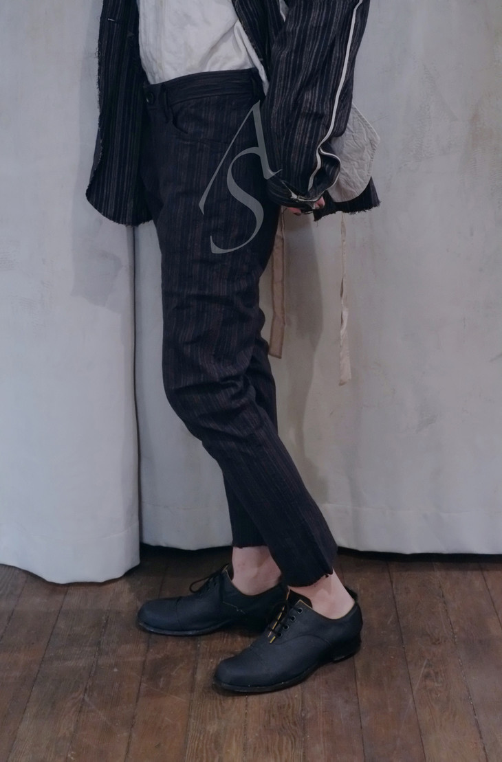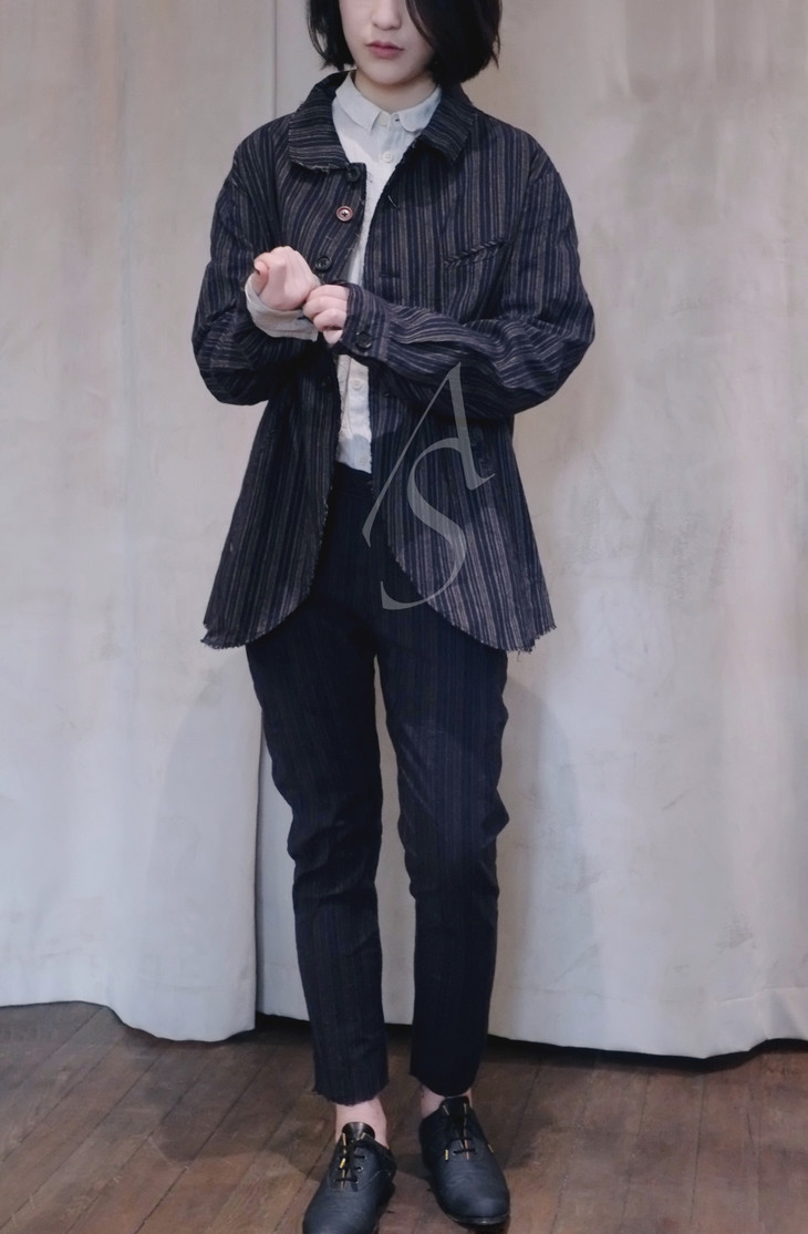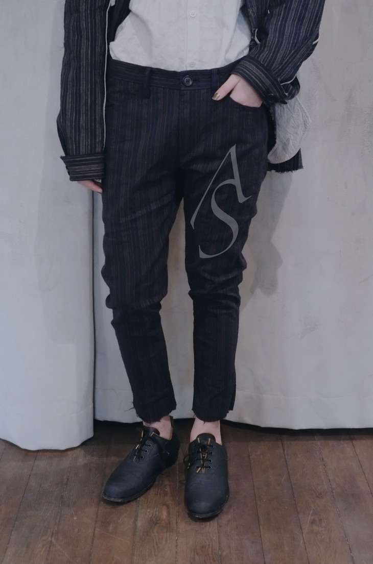 裤型比较修身,面料跟同款西装一样,裤管处同样有毛边,很好搭配。
