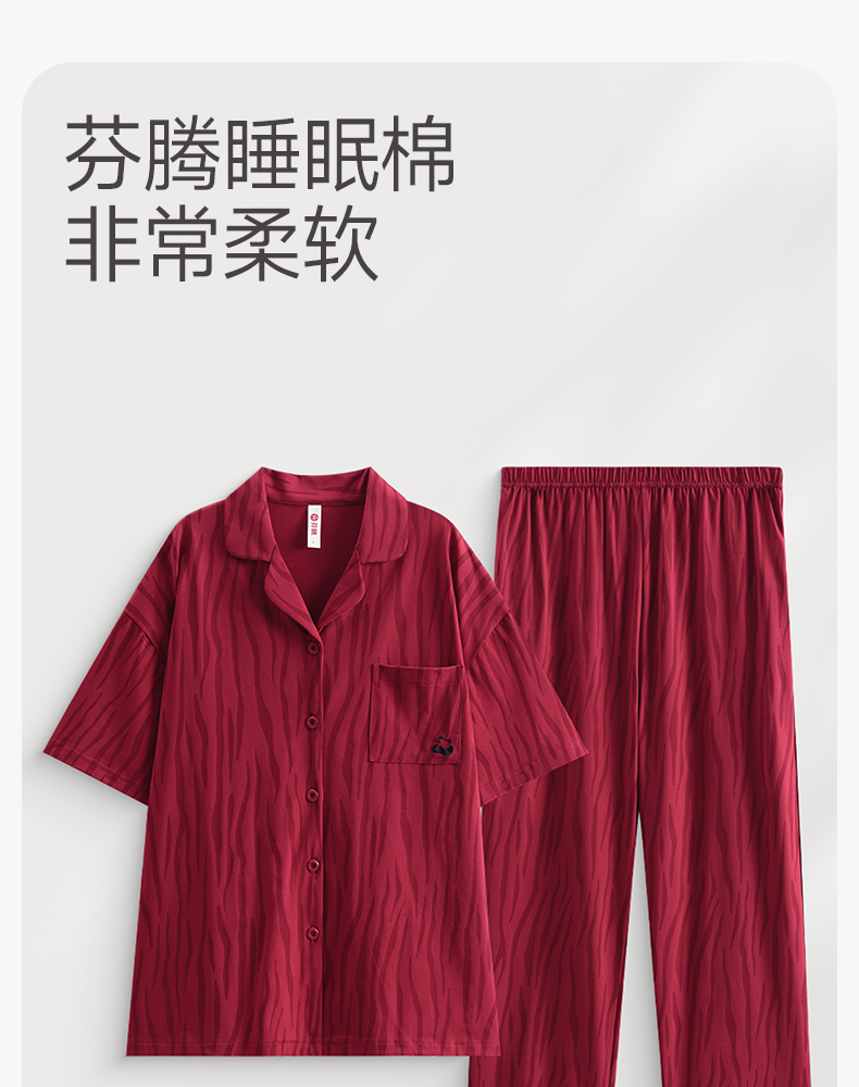 芬腾情侣短袖睡衣夏季纯棉套装女士男款蛇年本命年红色结婚家居服