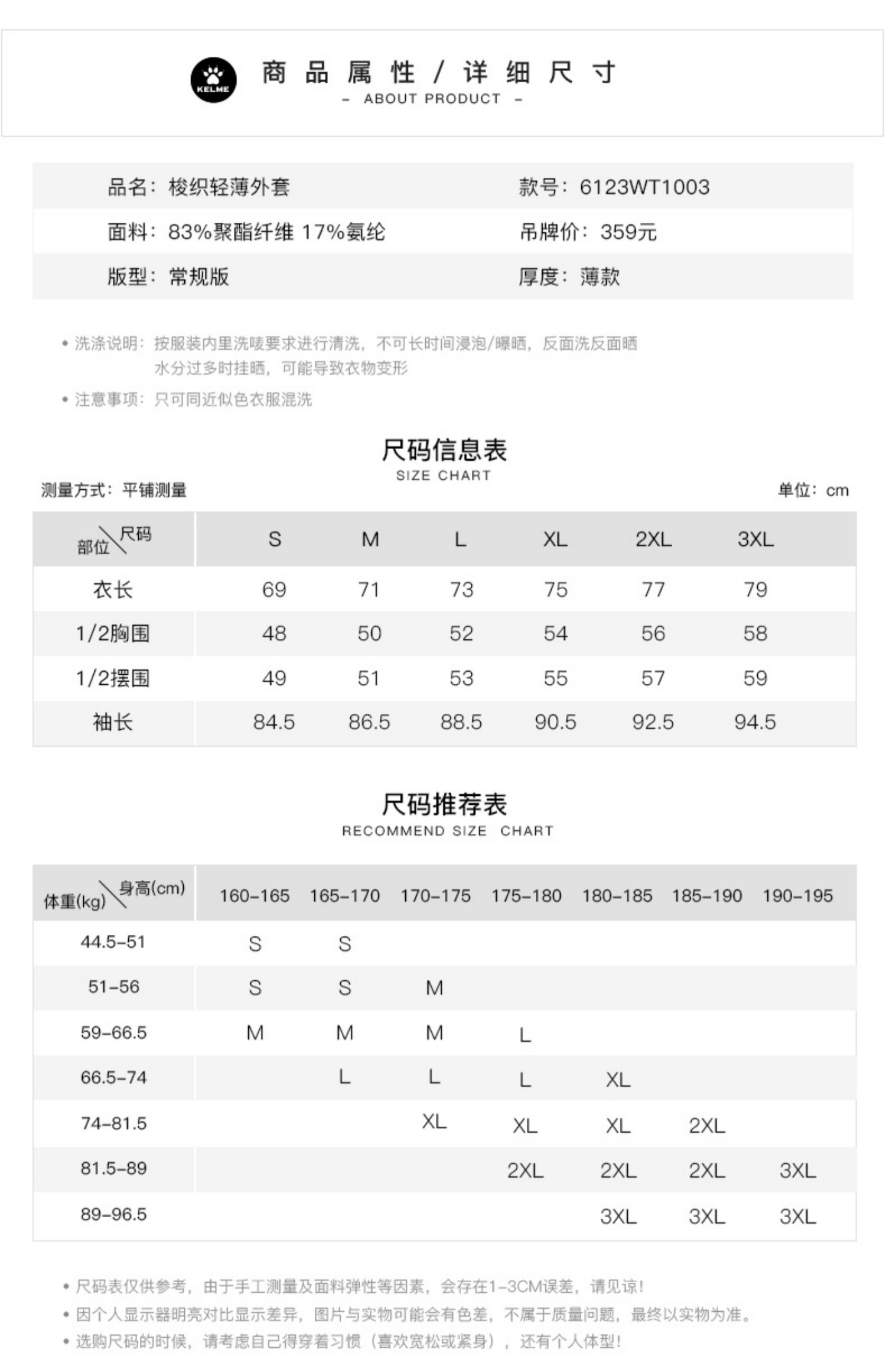 卡尔美运动休闲开衫外套新款夏季梭织薄款拼接健身跑步上衣
