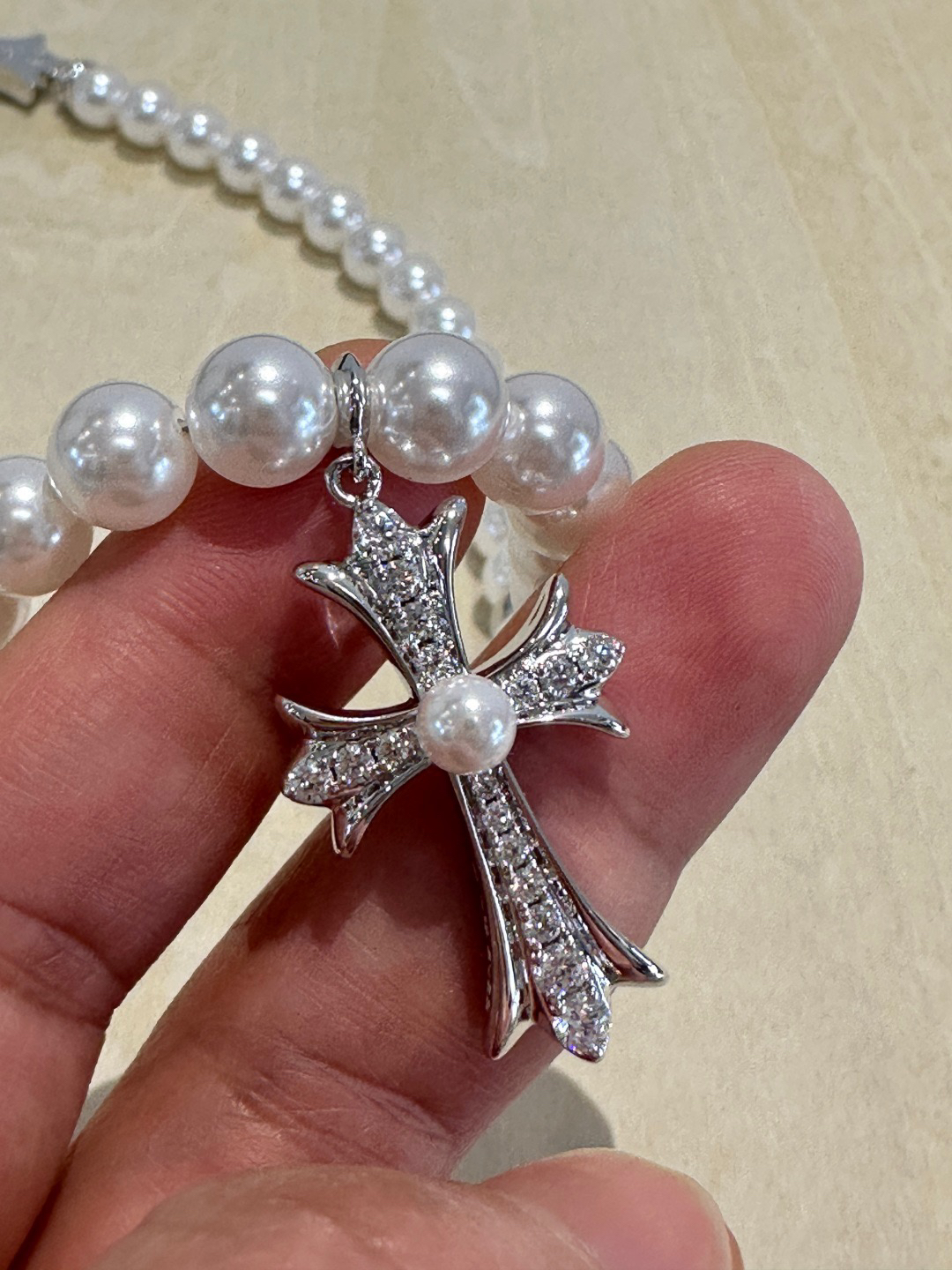 珍珠搭配满钻十字架完美呈现两大品牌的优势,特别在于将以往十字花中间的钻换成了珍珠,时尚的同时又不失中国女性的知性优雅