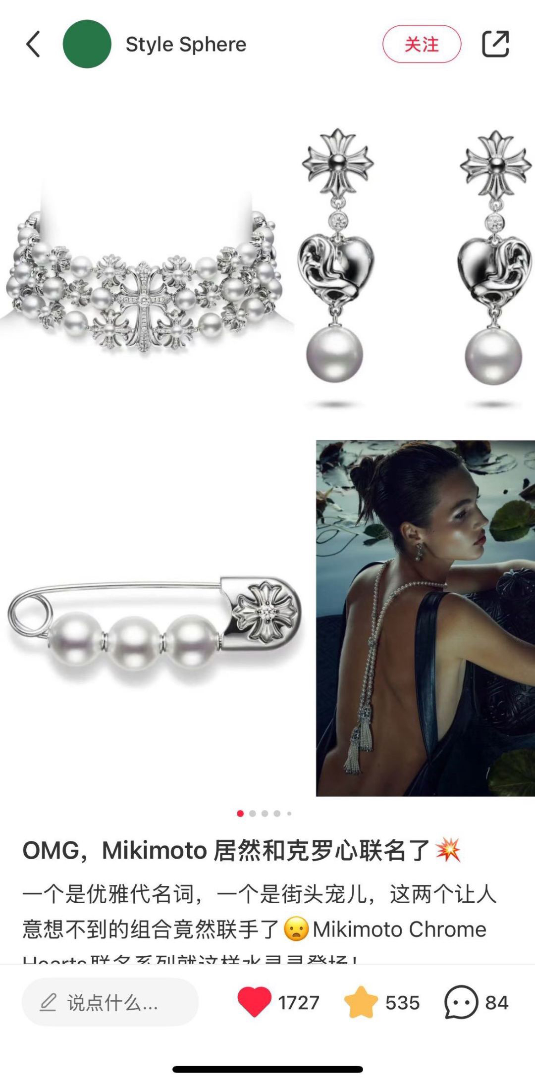 一场东西方美学的世纪对话,从没想过Chrome Heart的锋锐铆钉会与Mikimoto的柔光珍珠相遇。本期上架联名款的其中五款,献给不甘被定义的你