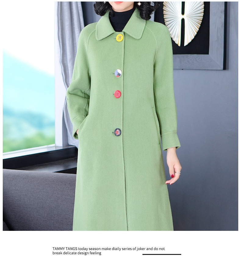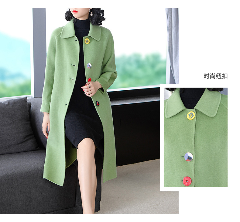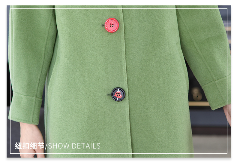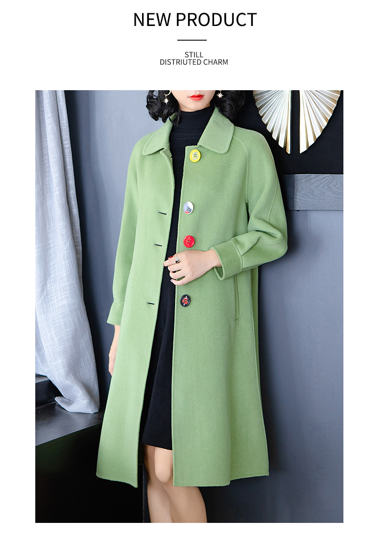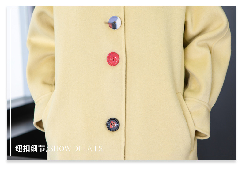NYT-19525冬季新款胖mm时尚彩色扣子宽松中长款小个子双面呢羊毛大衣