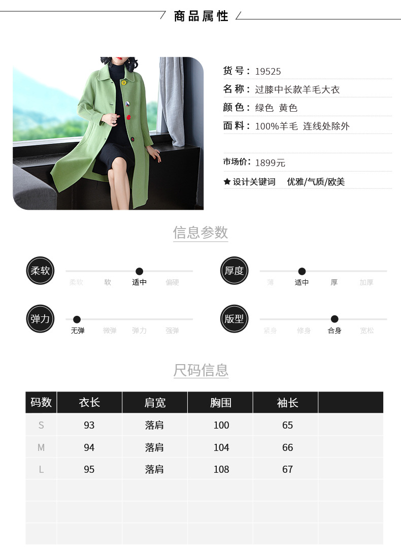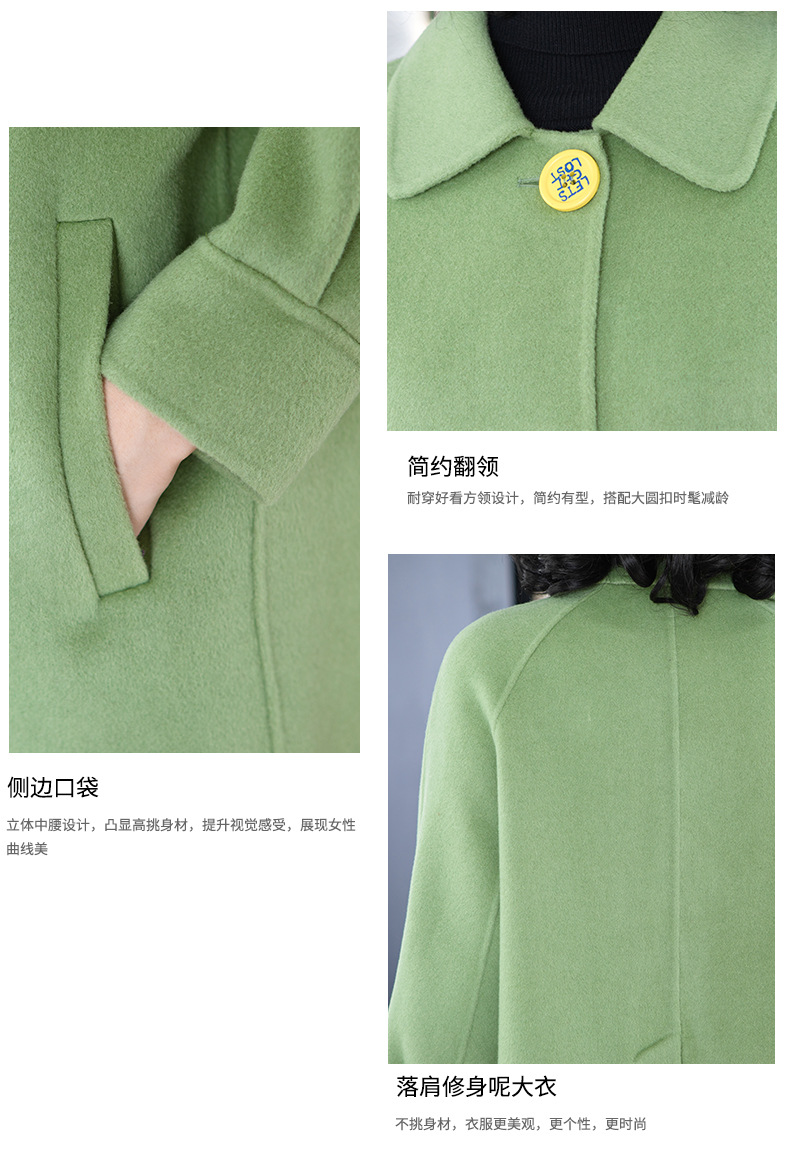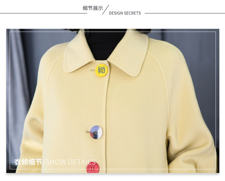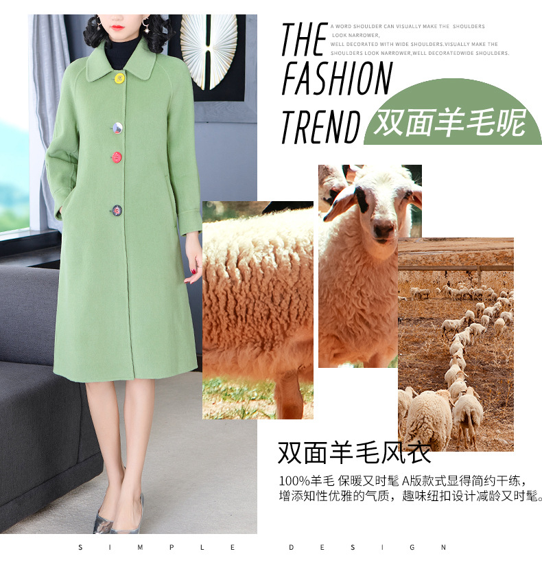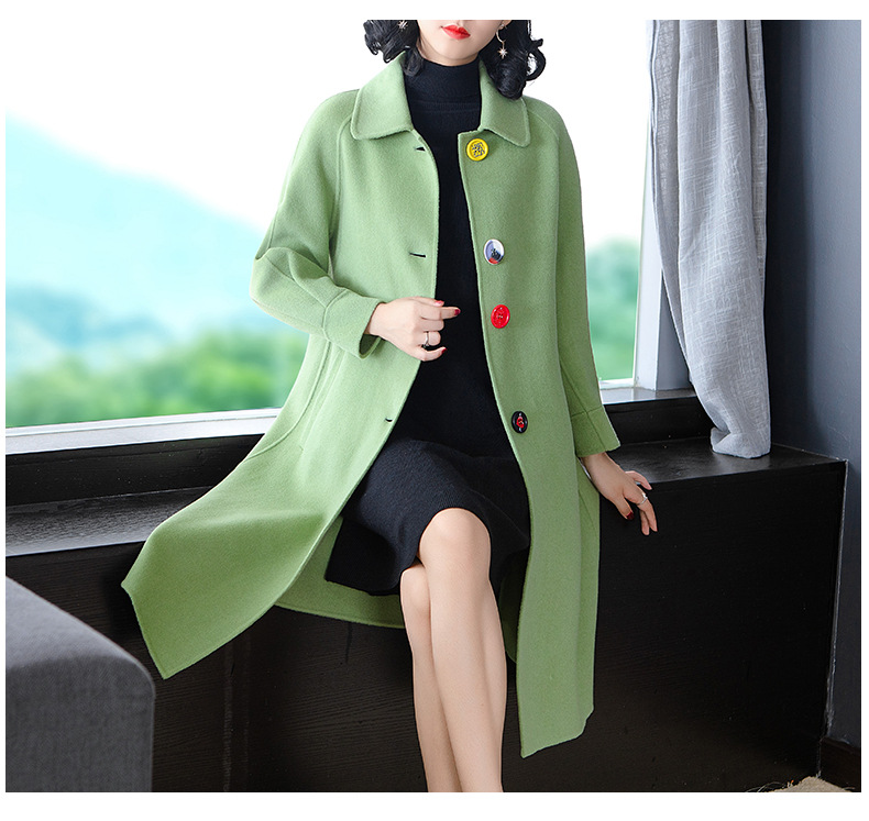 NYT-19525冬季新款胖mm时尚彩色扣子宽松中长款小个子双面呢羊毛大衣