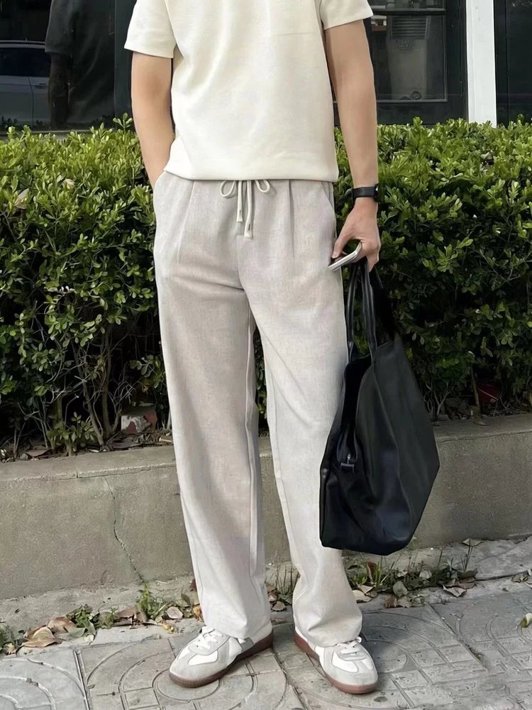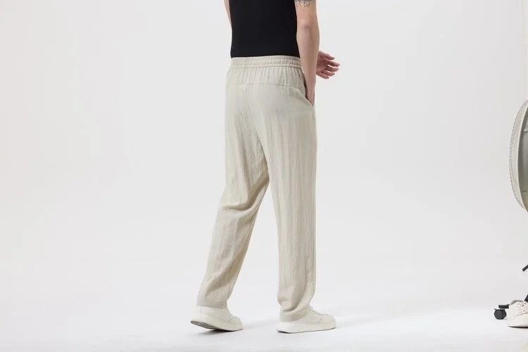 但罗蒙这条亚麻天丝休闲裤,直接把面料玩出了花!