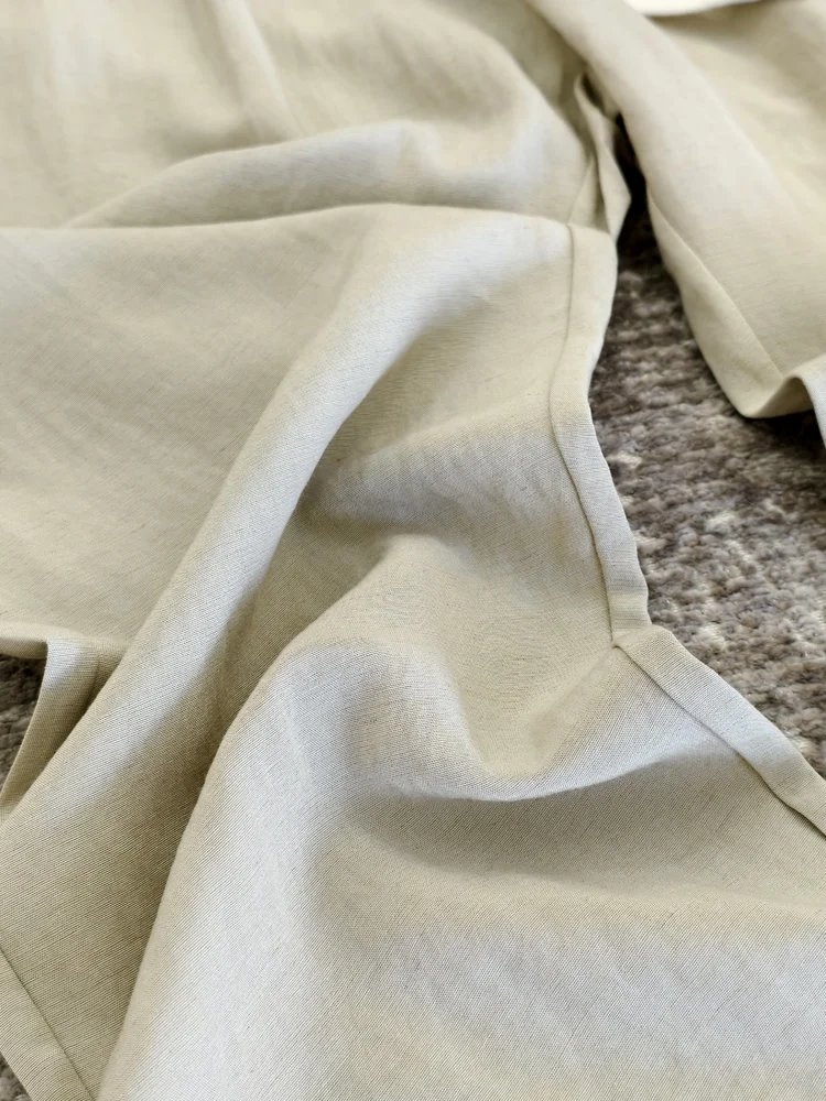 解决纯亚麻易皱、硬挺的问题,上身顺滑亲肤