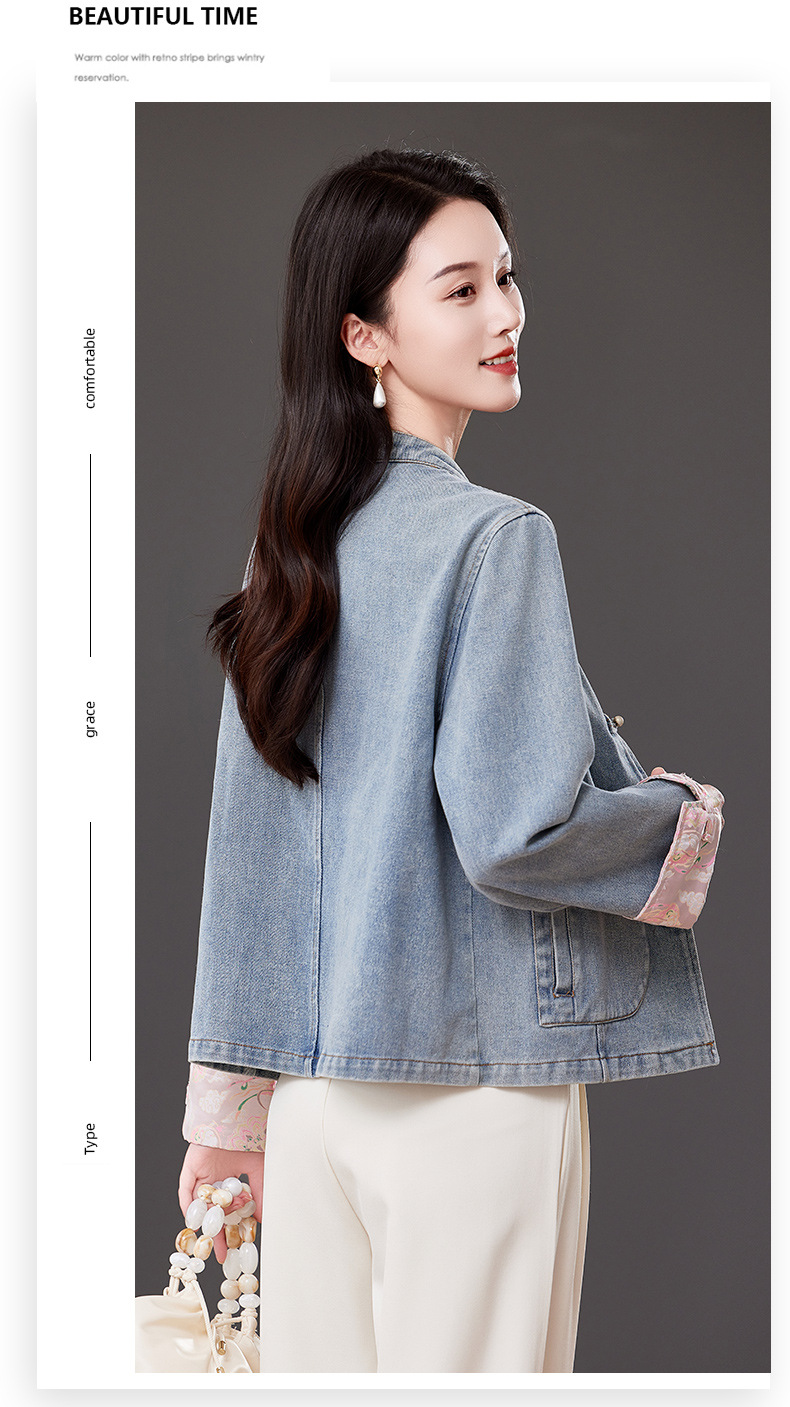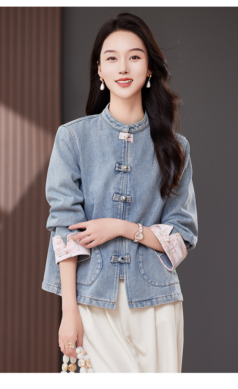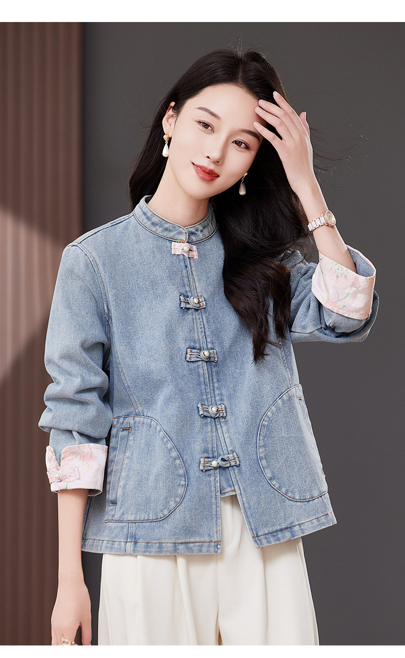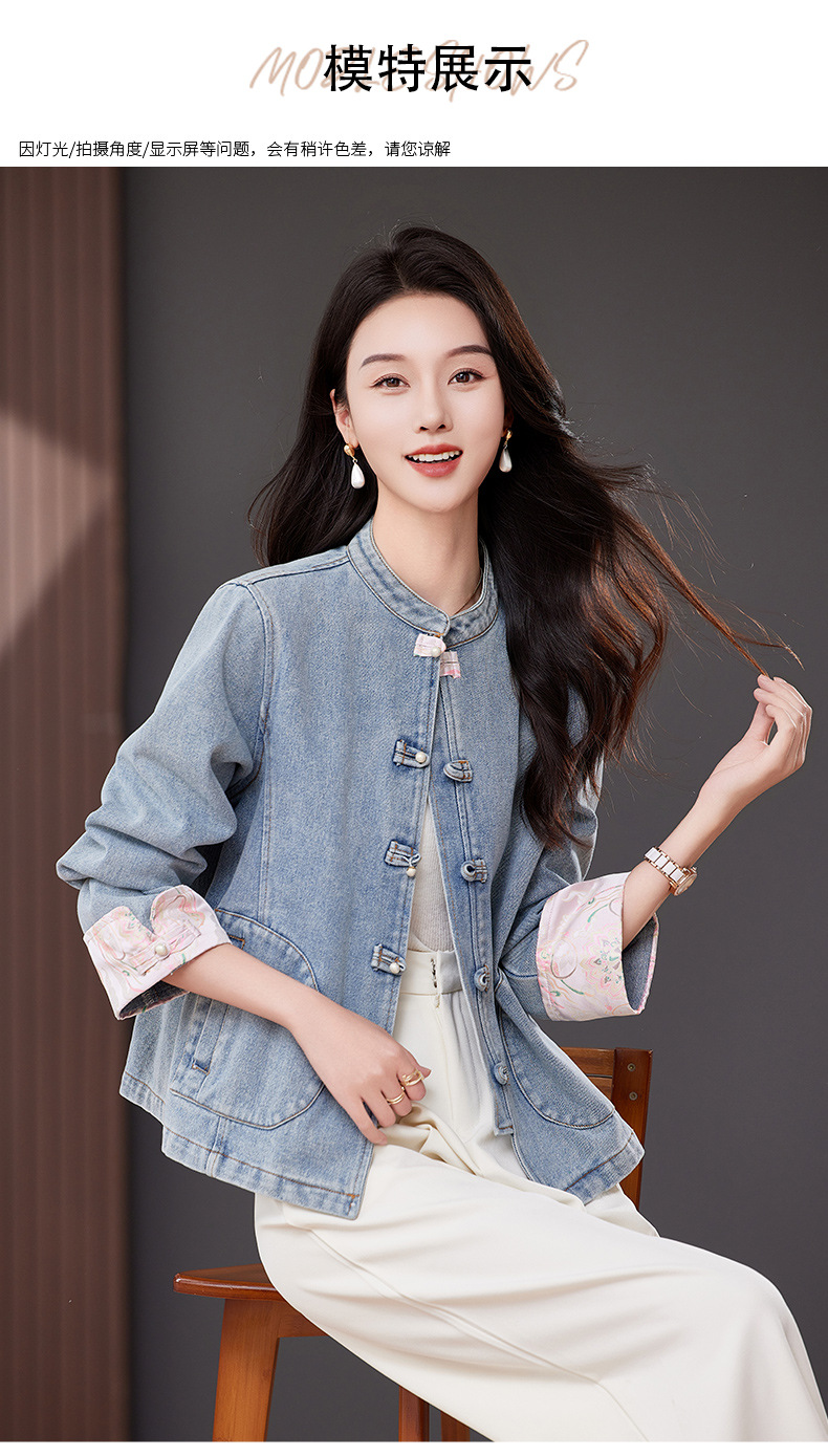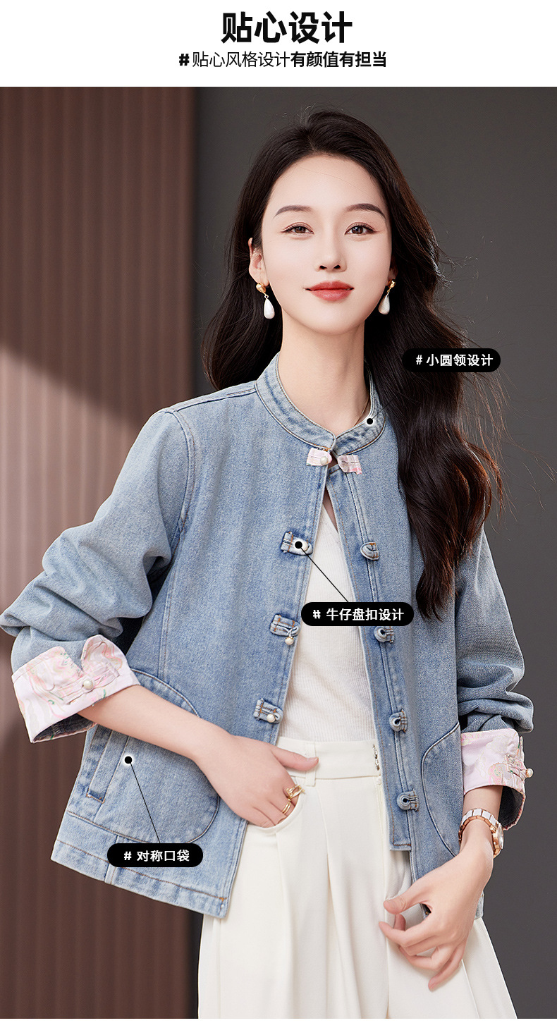 雀说新中式国风牛仔短外套新款气质复古百搭减龄唐装上衣AL2519 商品图4