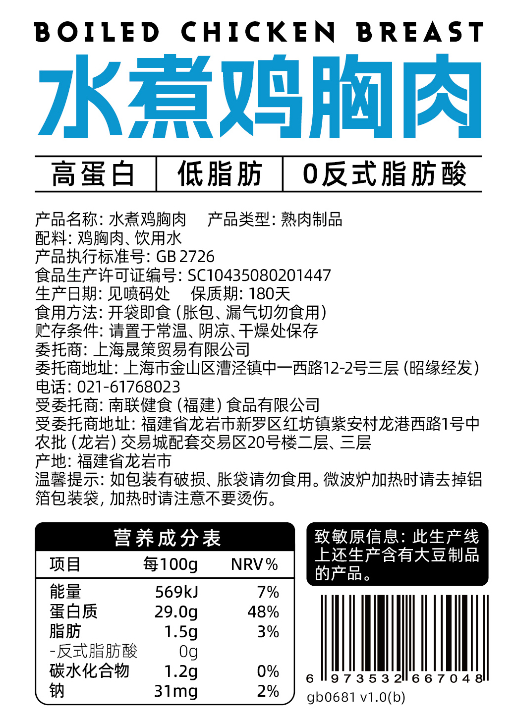 控糖控碳佳选【碳水NRV≈0%】哥本新品·水煮鸡胸肉 国标2倍高蛋白!低脂!低碳!鲜嫩鸡小胸肉原肉整切